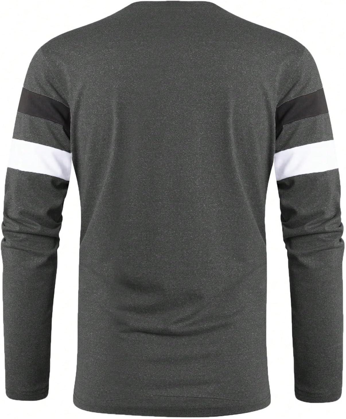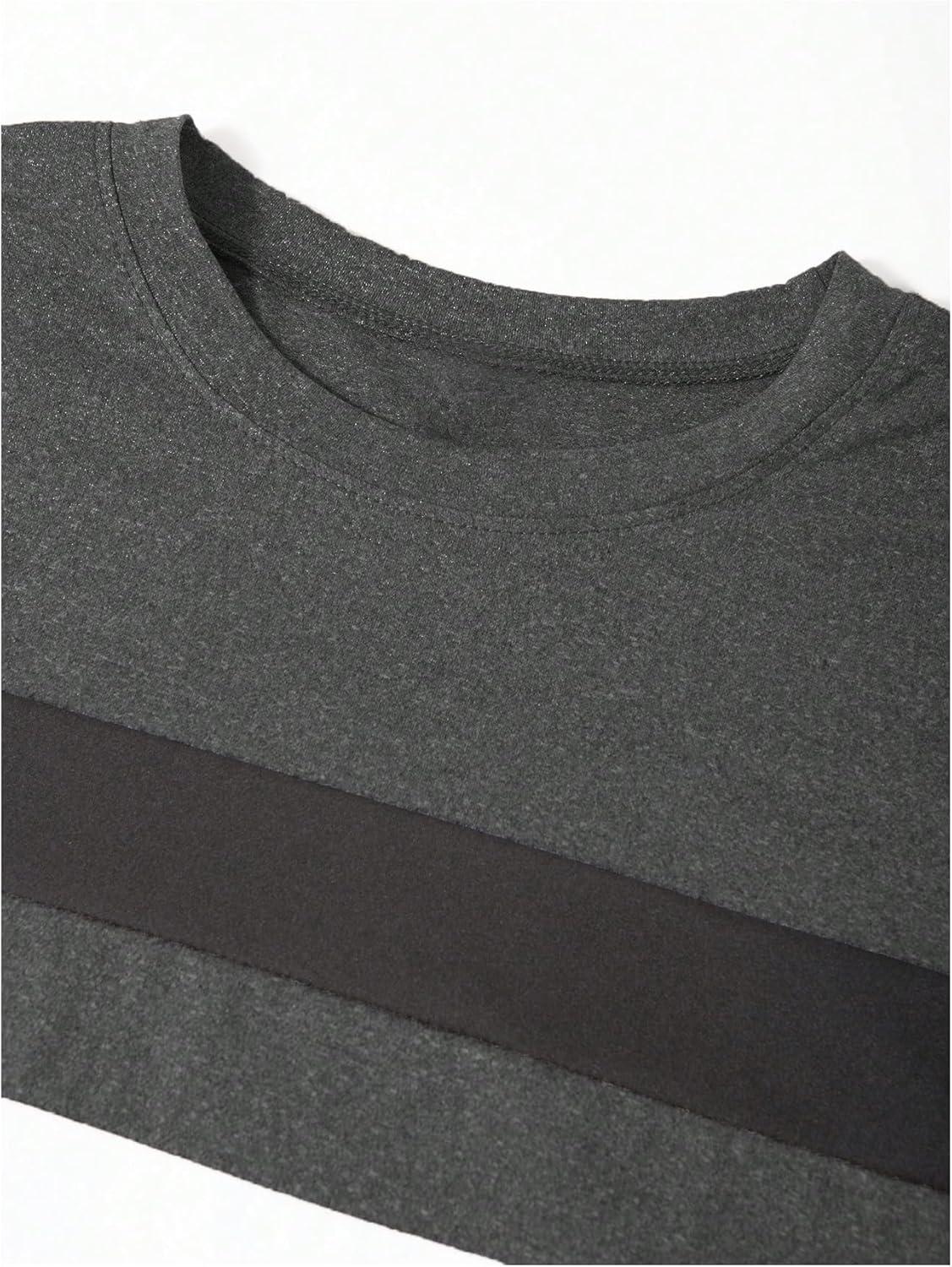 SOLY HUX Men’s Color Block Striped T Shirt Long Sleeve Crew Neck Tee Tops Casual Fall Clothes(Dark Grey Striped)