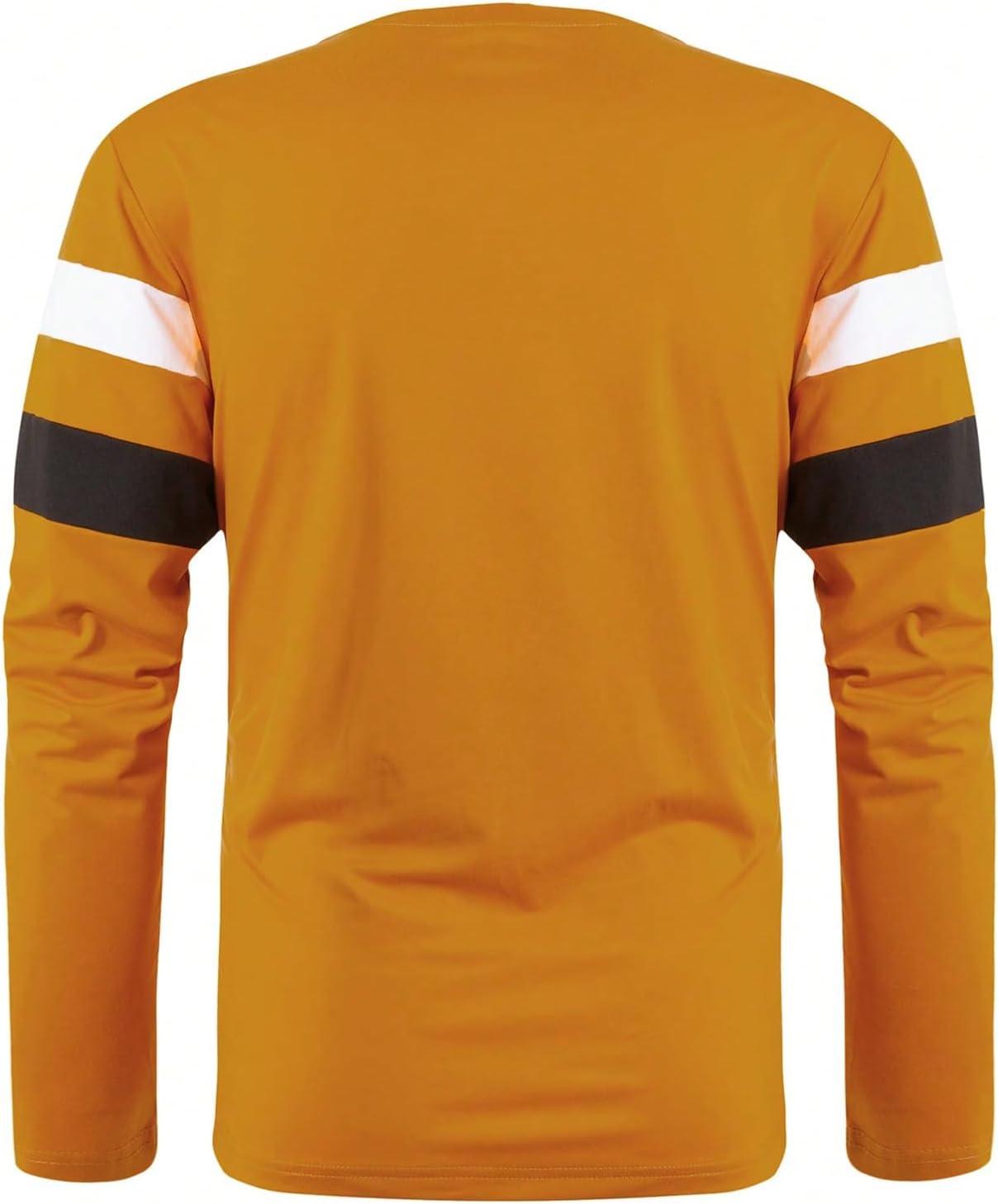SOLY HUX Men’s Color Block Striped T Shirt Long Sleeve Crew Neck Tee Tops Casual Fall Clothes(Yellow Striped)
