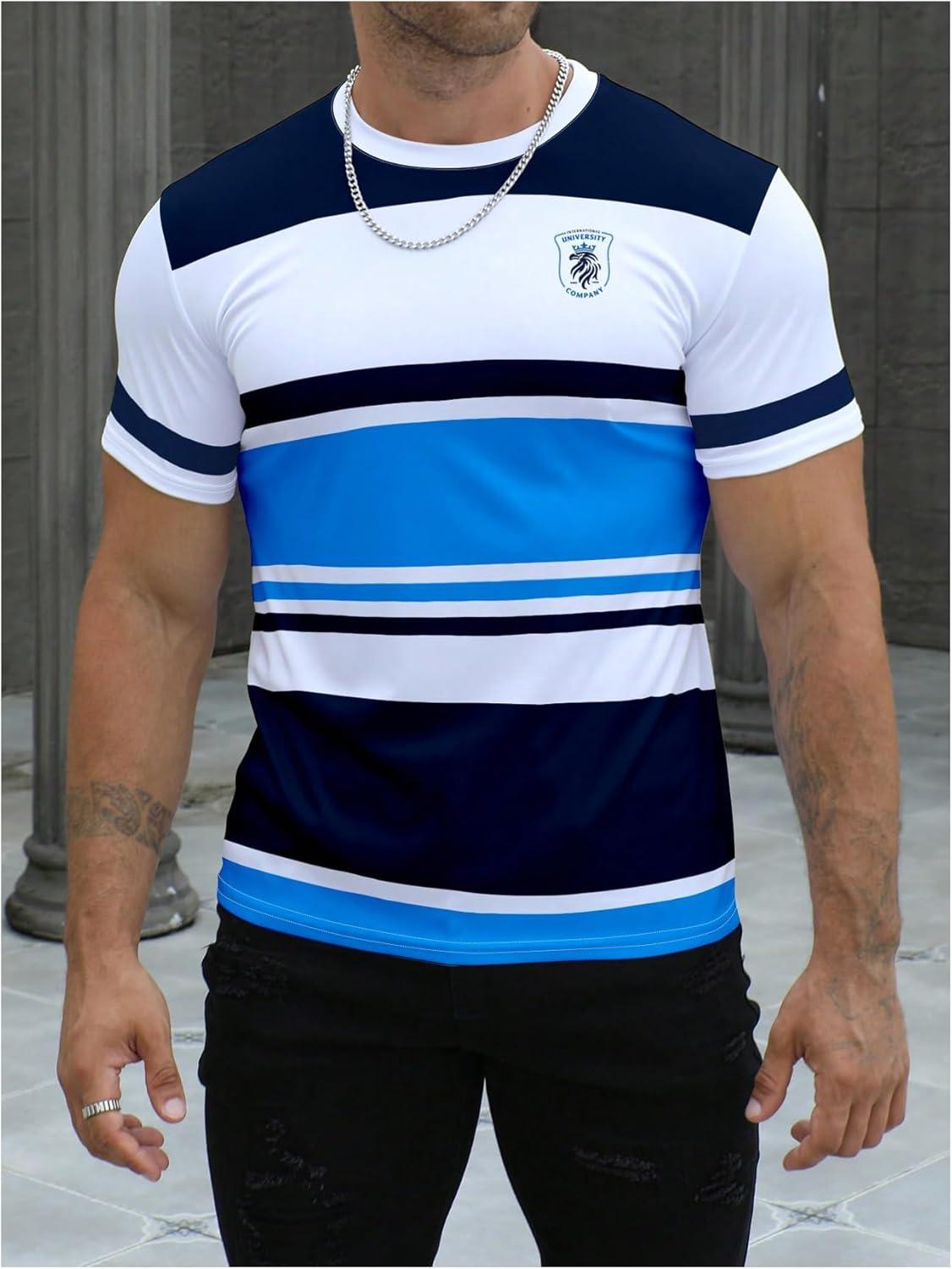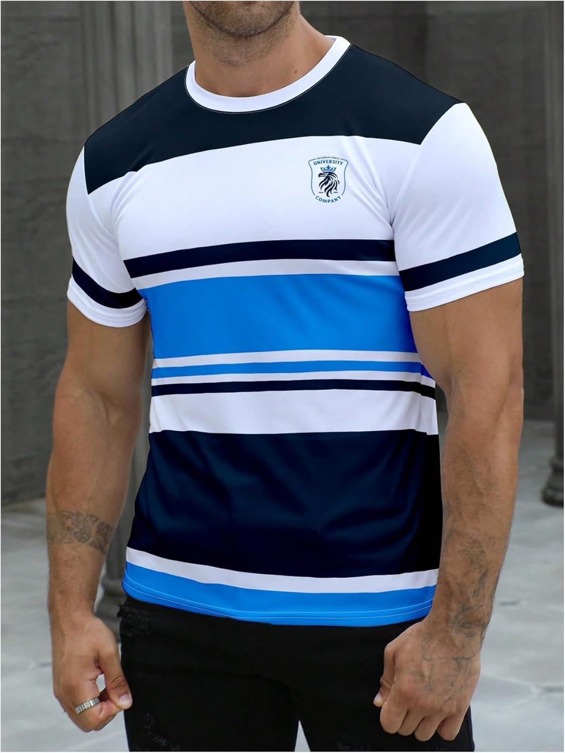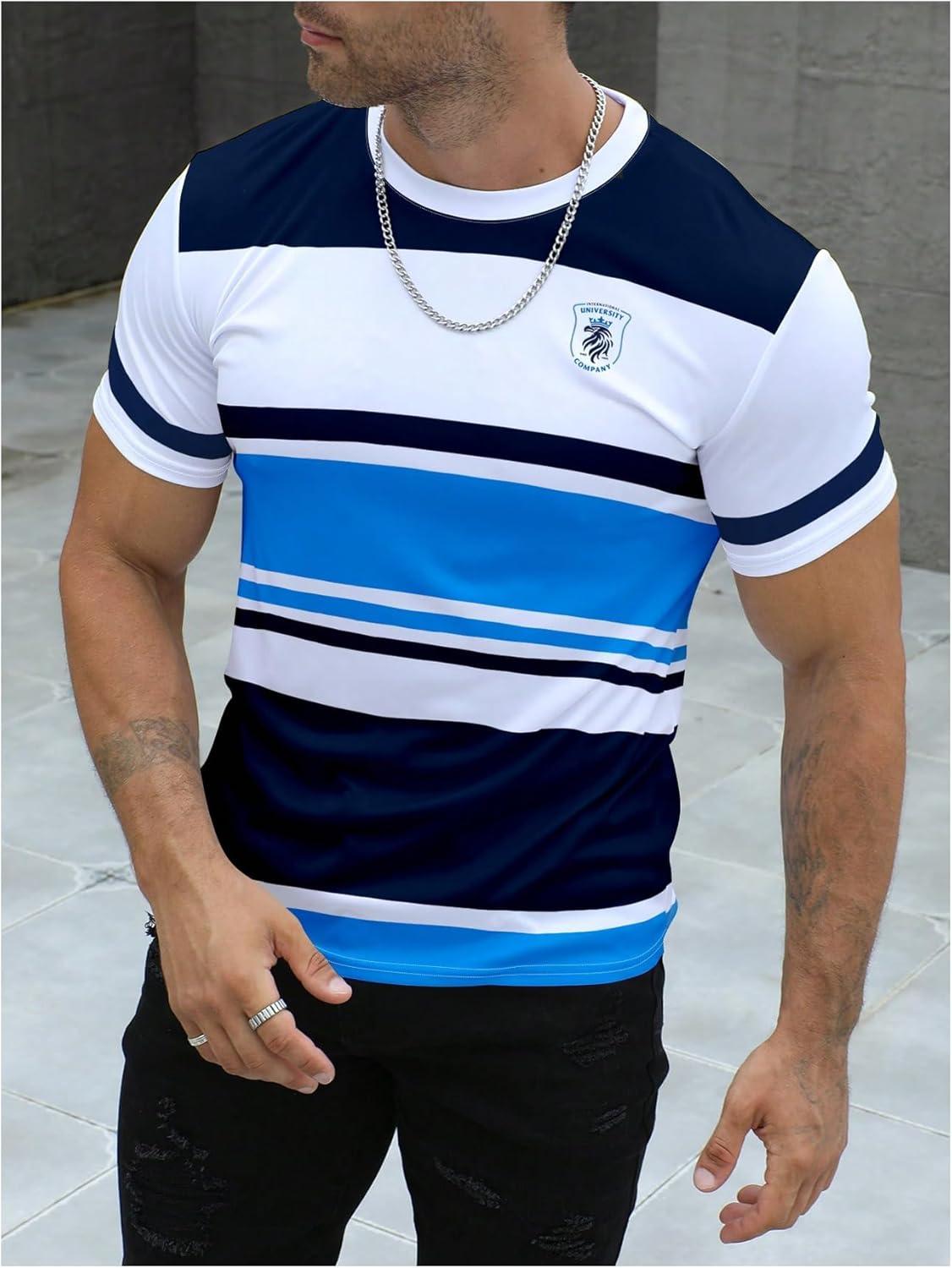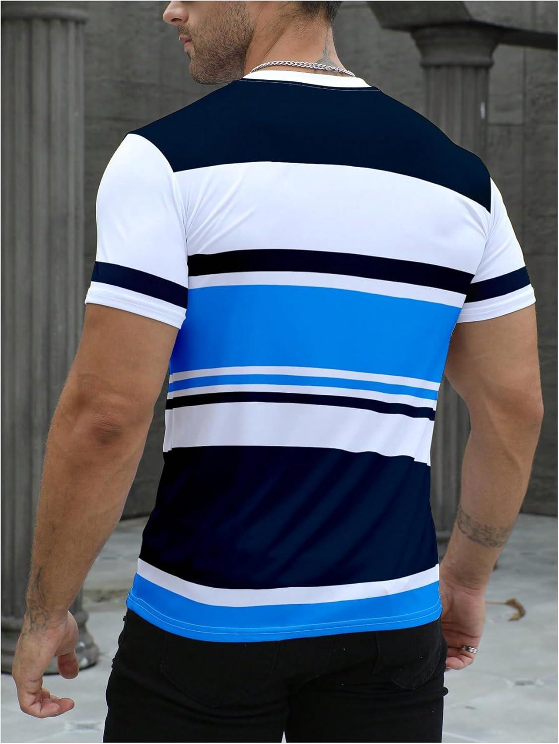 SOLY HUX Men’s Color Block Striped T Shirt Short Sleeve Round Neck Summer Tops Casual Tee(Multicoloured Print)