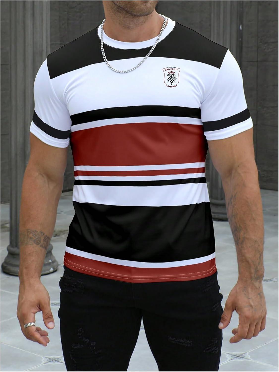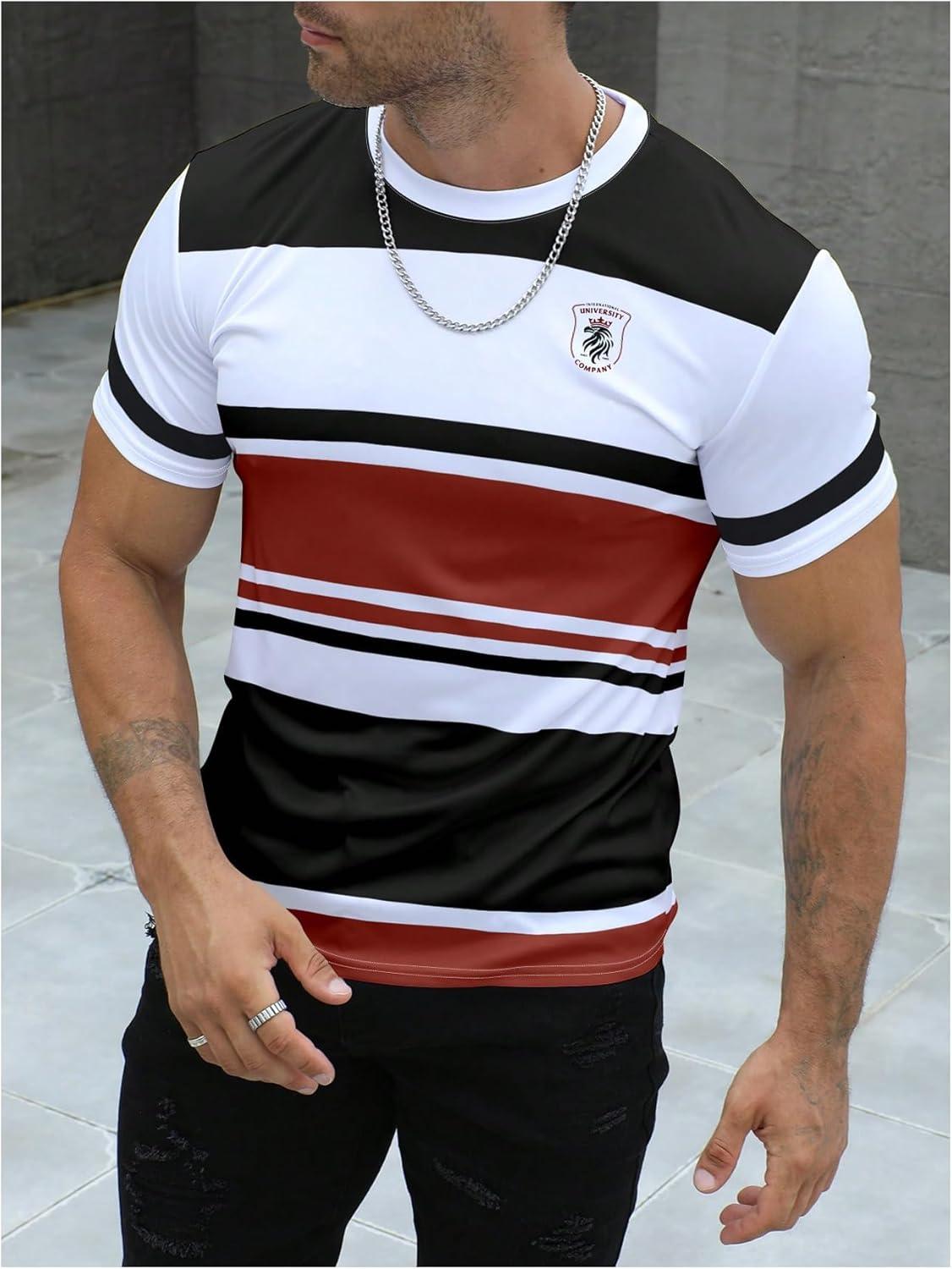 SOLY HUX Men’s Color Block Striped T Shirt Short Sleeve Round Neck Summer Tops Casual Tee(Multicoloured Print)