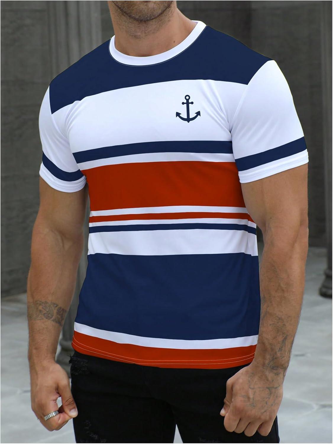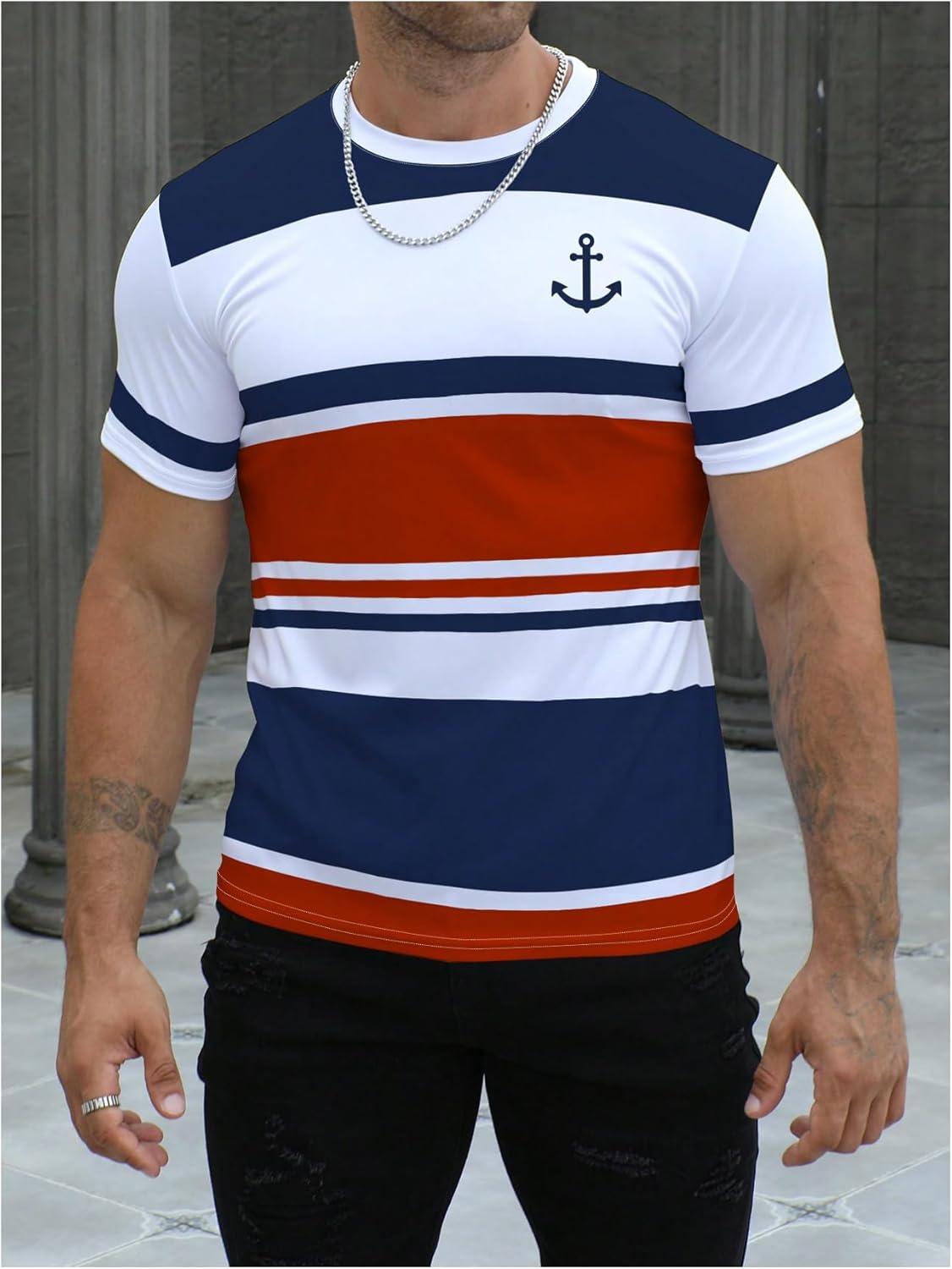 SOLY HUX Men’s Color Block Striped T Shirt Short Sleeve Round Neck Summer Tops Casual Tee(Multicoloured)