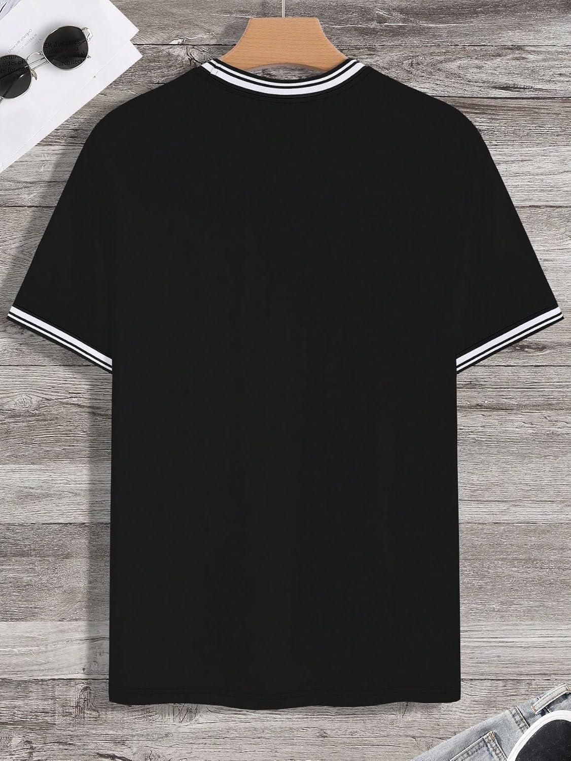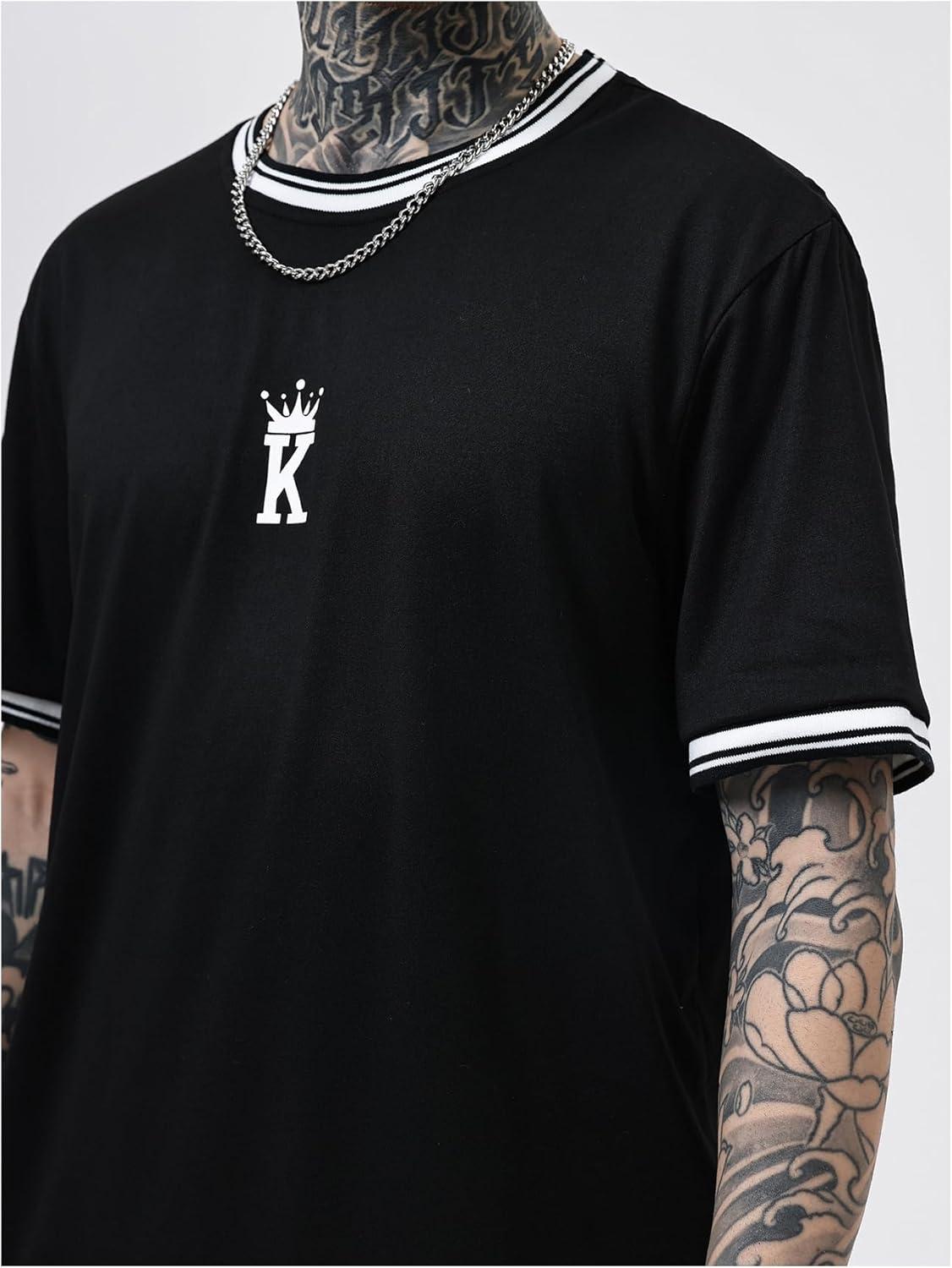 SOLY HUX Men’s Crown Letter Print Striped Trim Tee Tops Short Sleeve Crew Neck Summer T Shirt(Black Letter Crown)