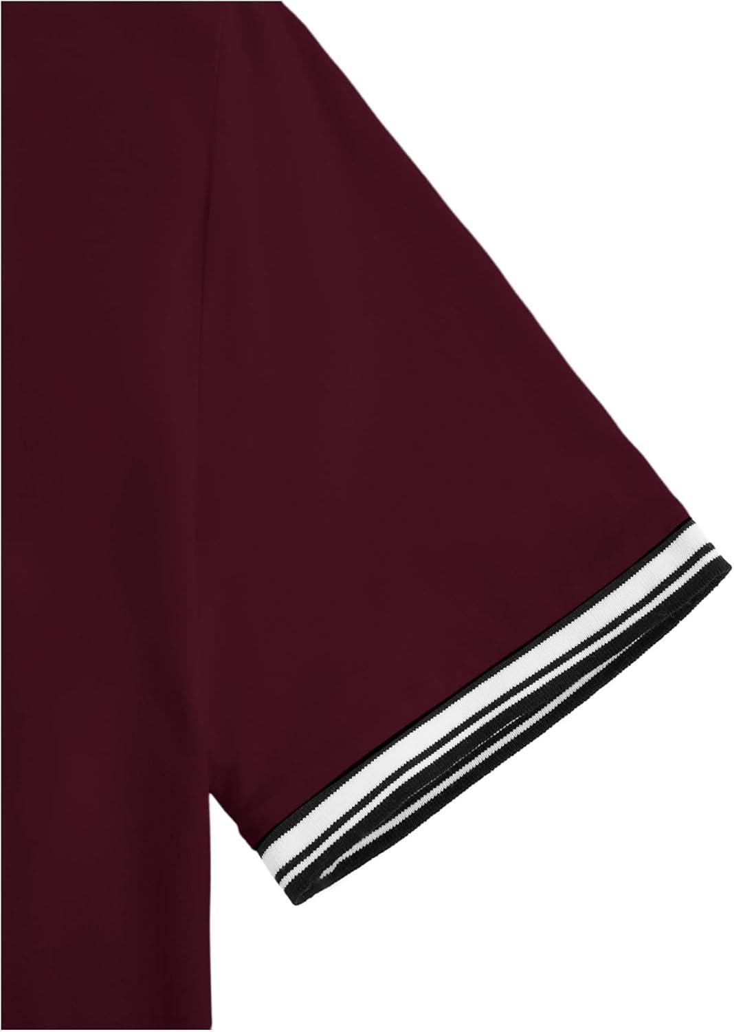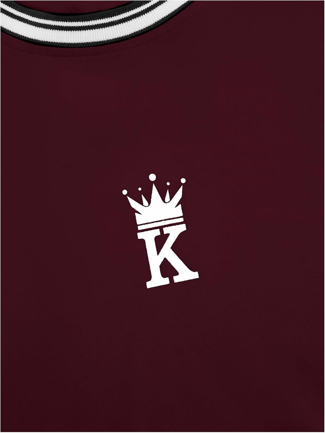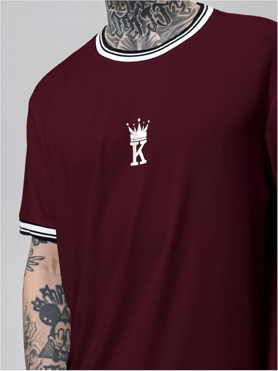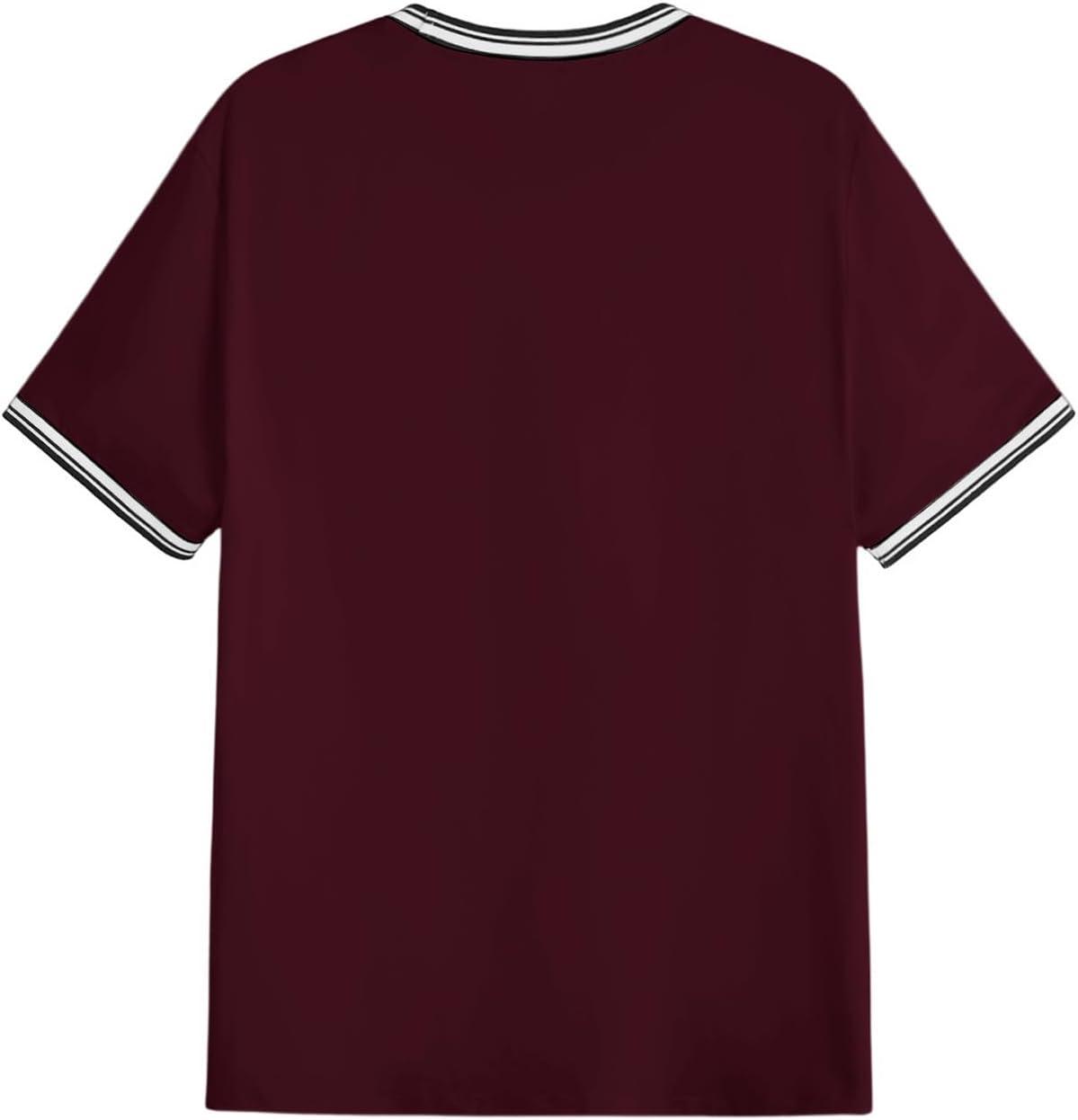 SOLY HUX Men’s Crown Letter Print Striped Trim Tee Tops Short Sleeve Crew Neck Summer T Shirt(Burgundy Graphic)