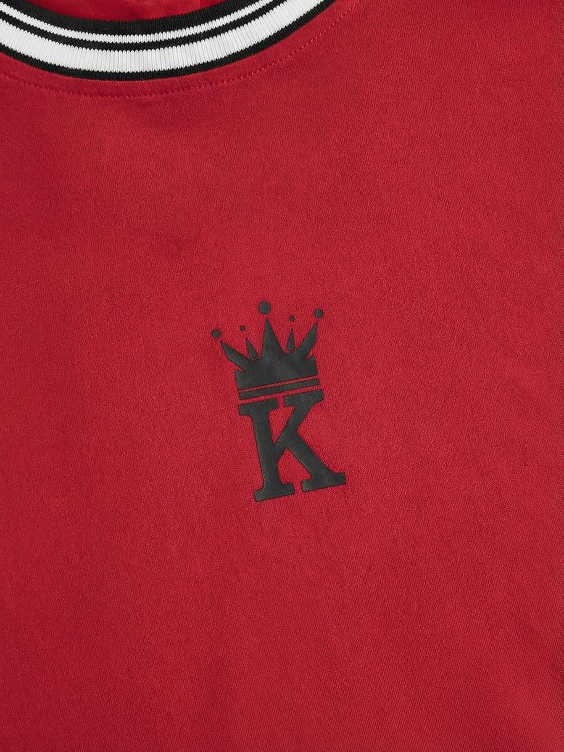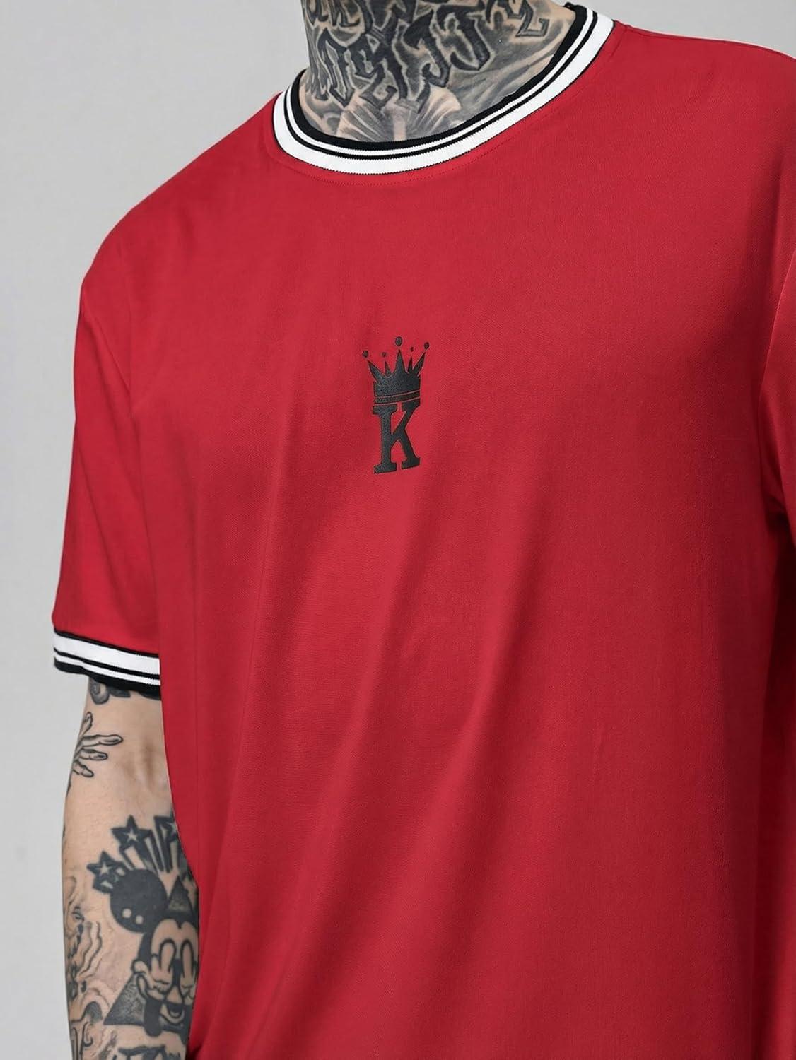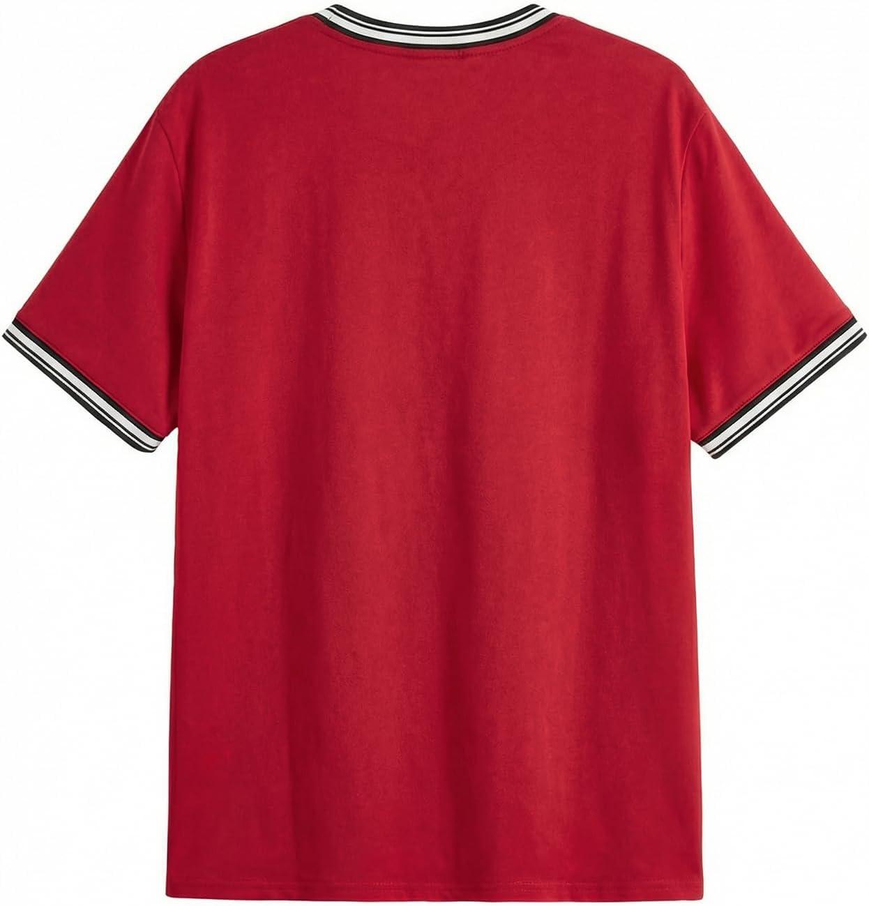 SOLY HUX Men’s Crown Letter Print Striped Trim Tee Tops Short Sleeve Crew Neck Summer T Shirt(Red Black Graphic)