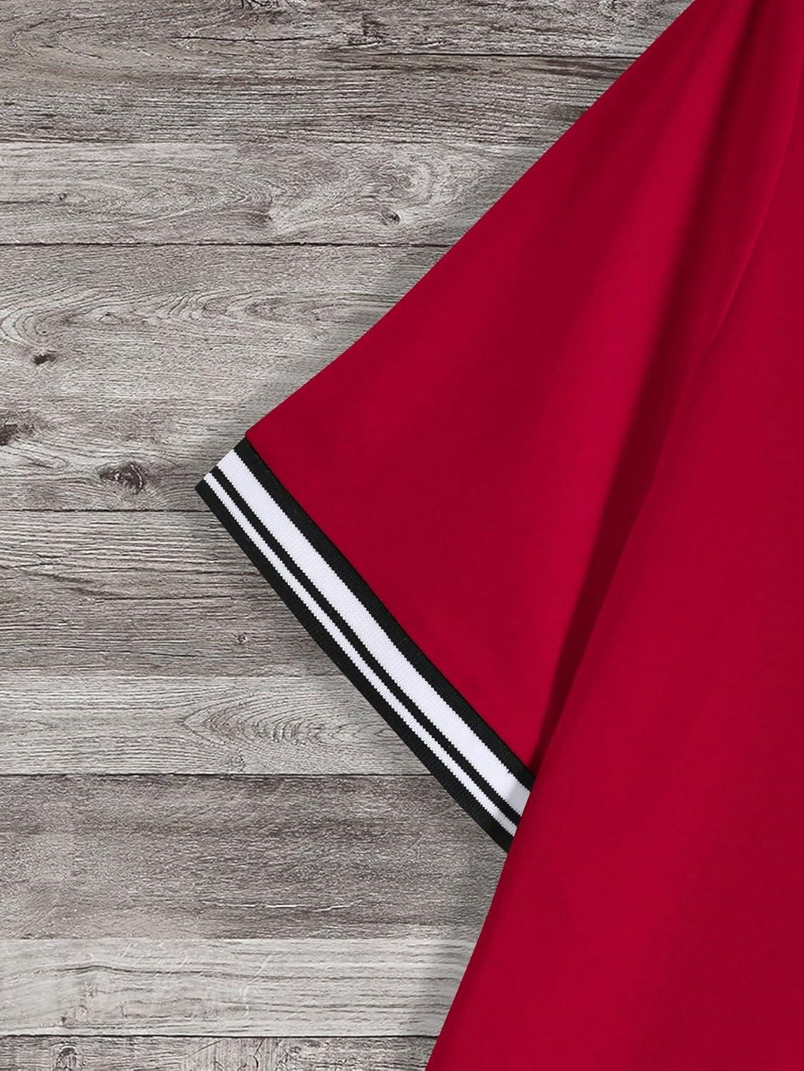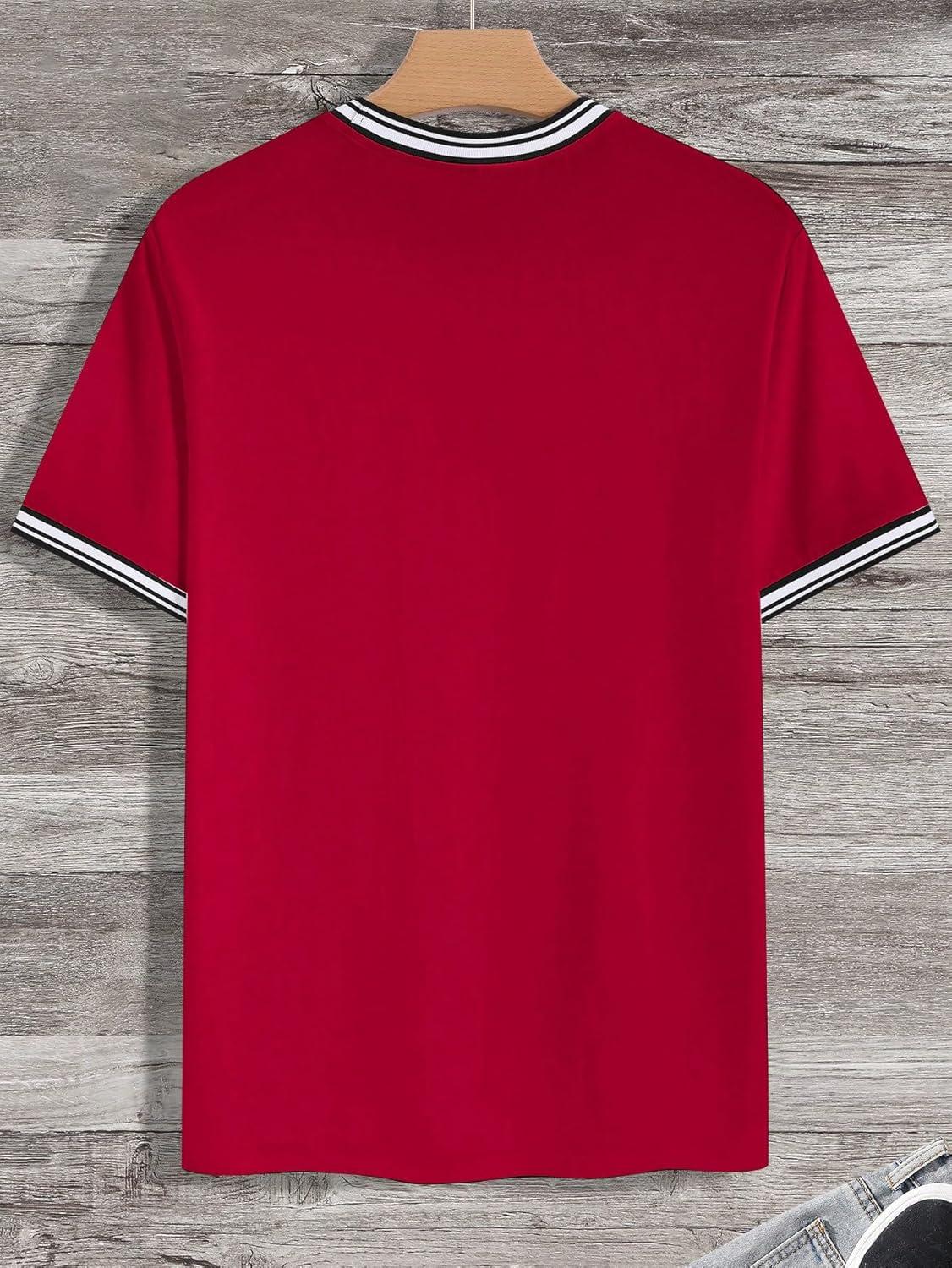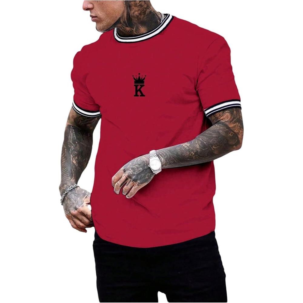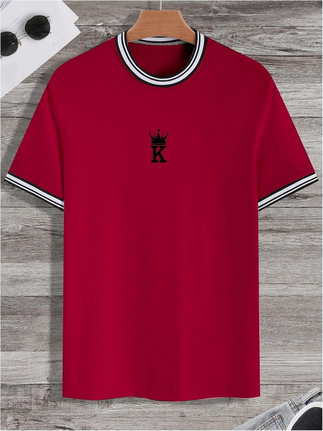 SOLY HUX Men’s Crown Letter Print Striped Trim Tee Tops Short Sleeve Crew Neck Summer T Shirt(Red Crown)