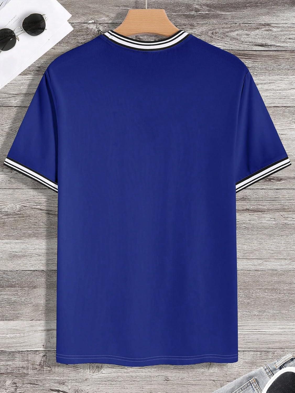 SOLY HUX Men’s Crown Letter Print Striped Trim Tee Tops Short Sleeve Crew Neck Summer T Shirt(Royal Blue Graphic)