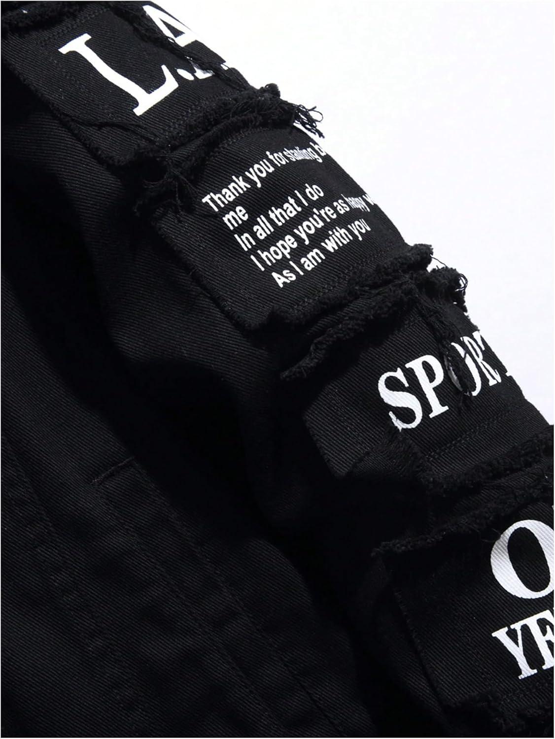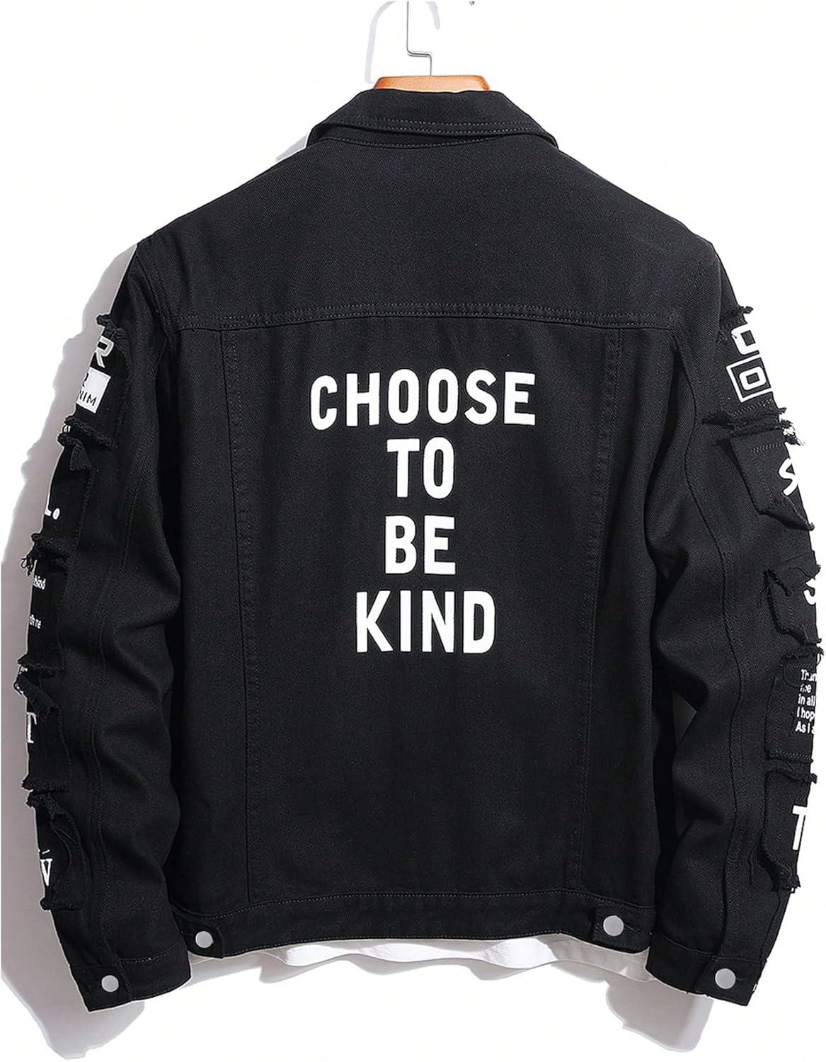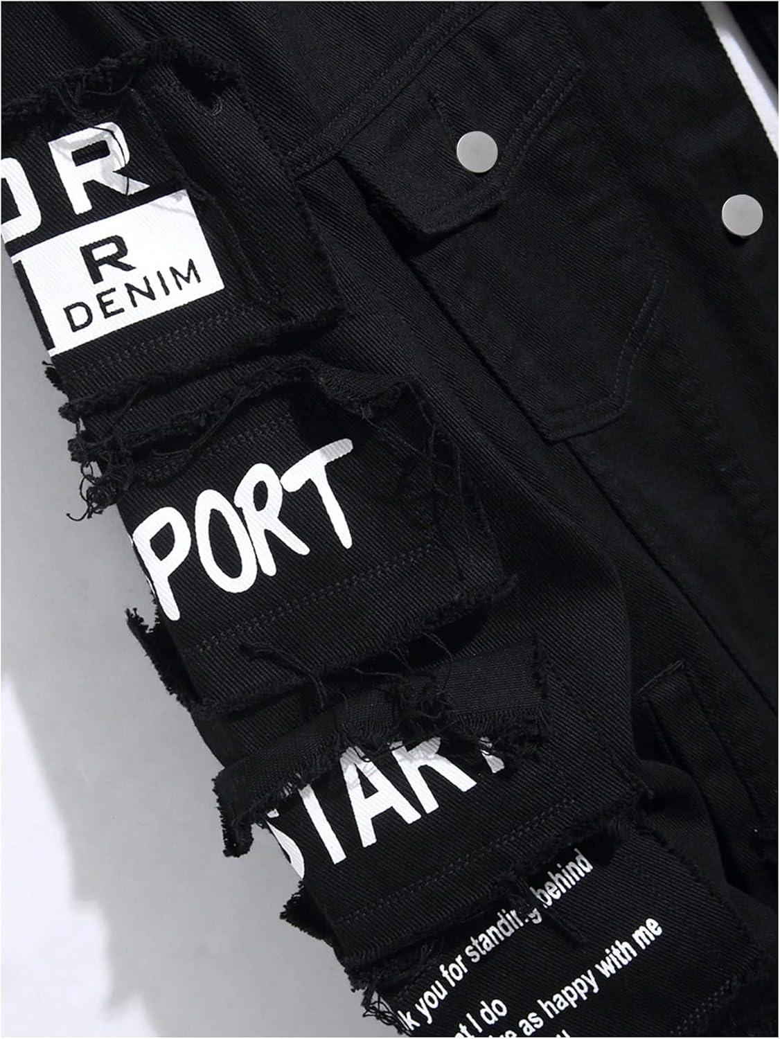 SOLY HUX Men’s Denim Jacket Letter Graphic Button Down Flap Pocket Long Sleeve Streetwear Jacket(Black Letter)