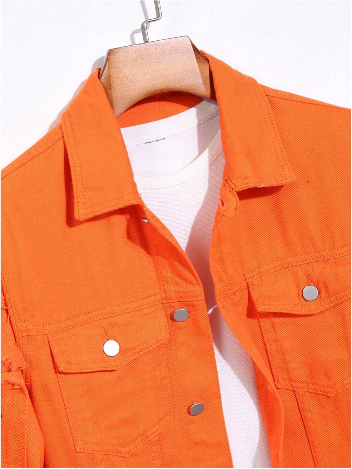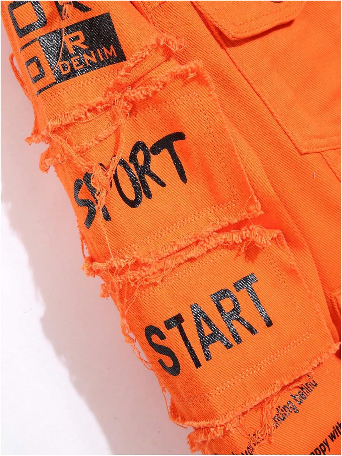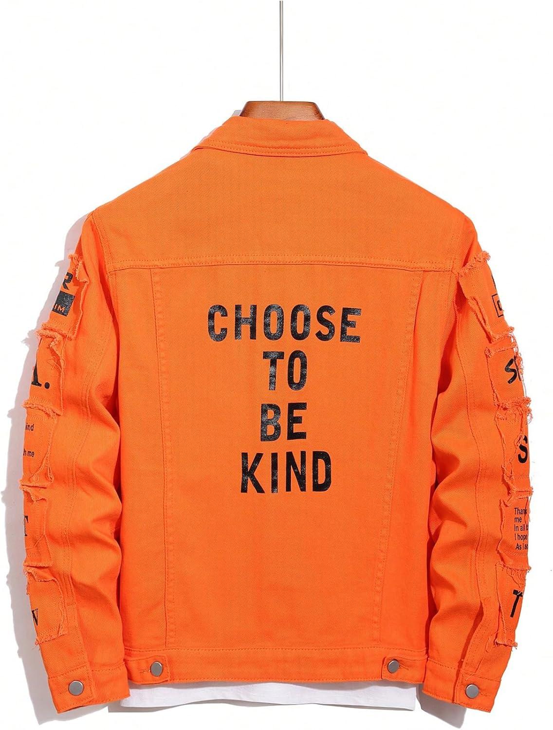 SOLY HUX Men’s Denim Jacket Letter Graphic Button Down Flap Pocket Long Sleeve Streetwear Jacket(Orange Letter)