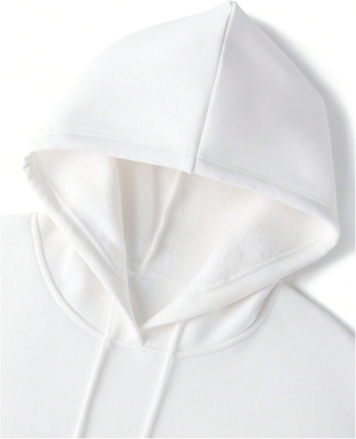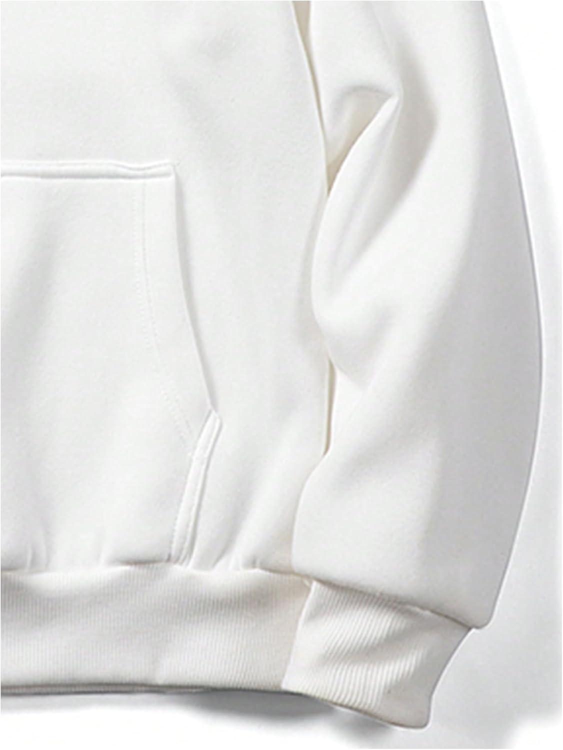 SOLY HUX Men’s Drawstring Loose Hoodie Vintage Drop Shoulder Sweatshirt with Pockets Streetwear(Pure White)