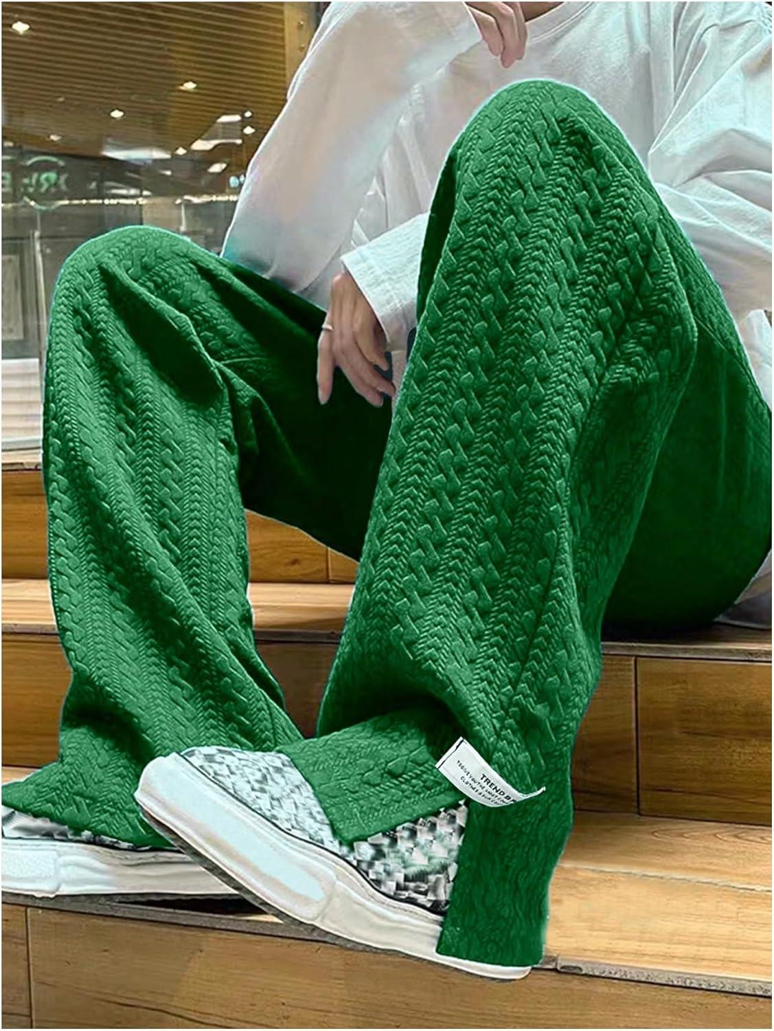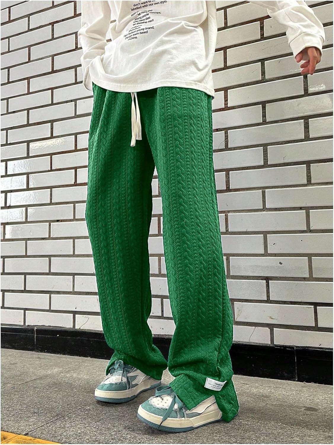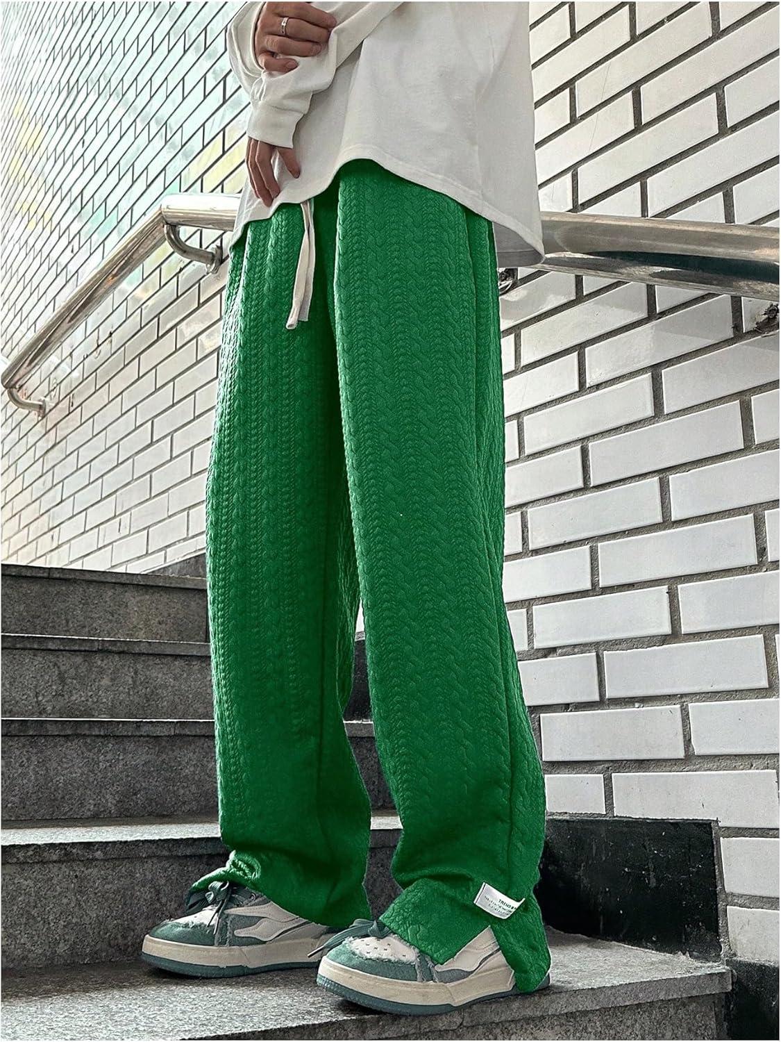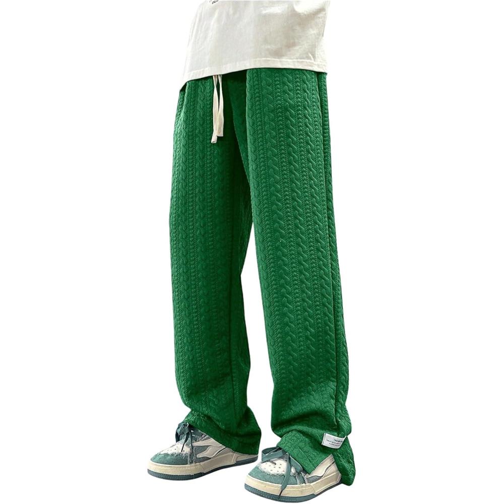 SOLY HUX Men’s Drawstring Waist Sweatpants Split Side Textured Baggy Straight Leg Pants with Pockets(Plain Green)