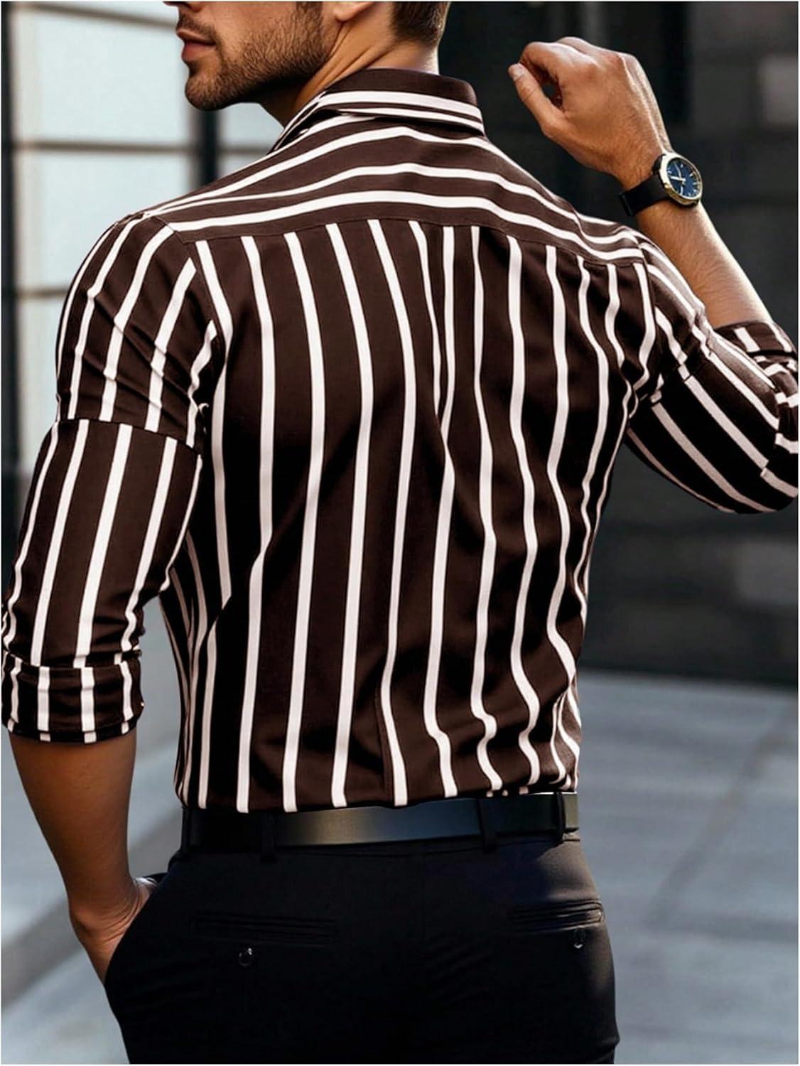 SOLY HUX Men’s Dress Shirts Long Sleeve Button Down Shirt Striped Business Casual Formal Shirt Mens Clothes(Brown Striped)
