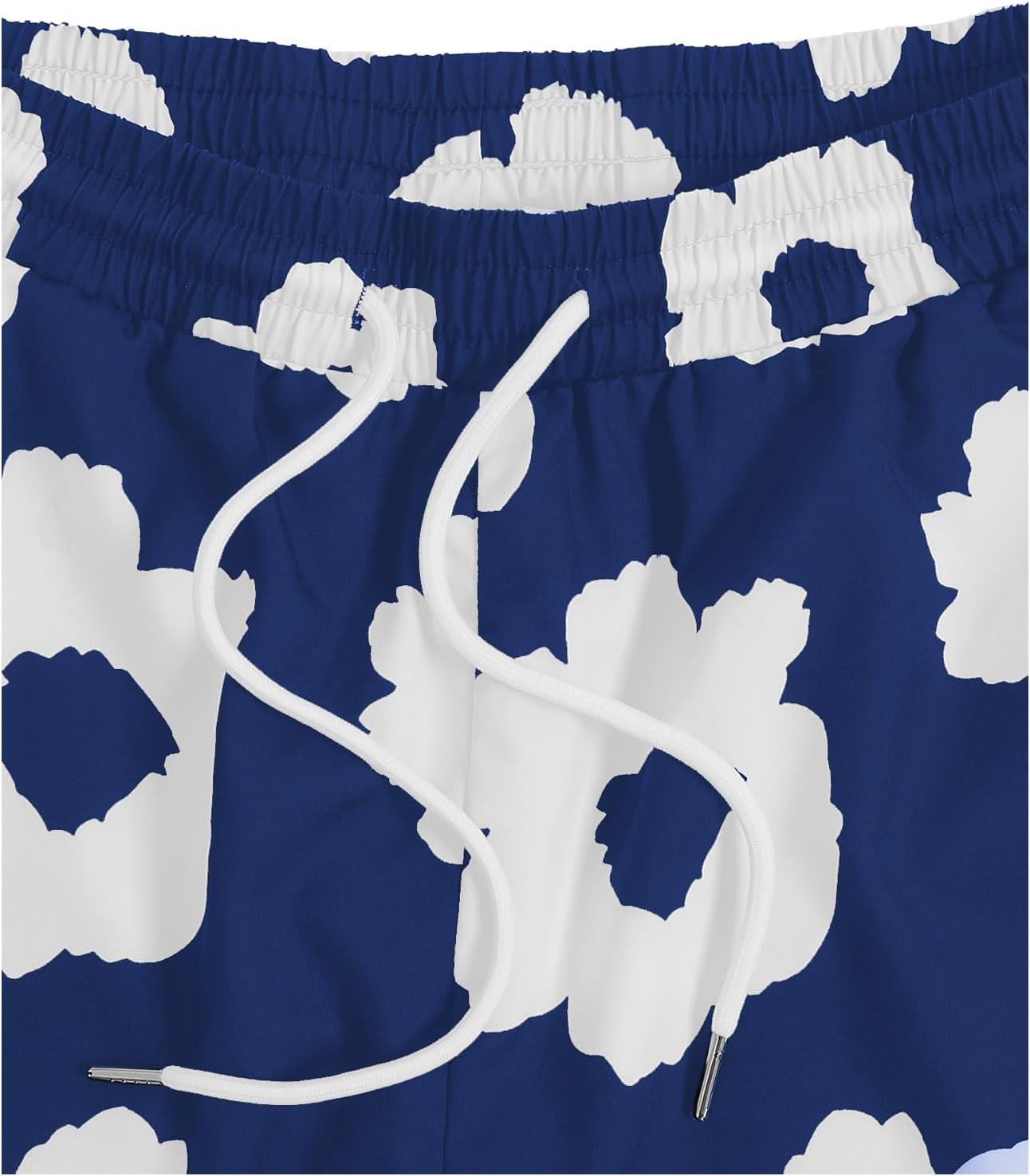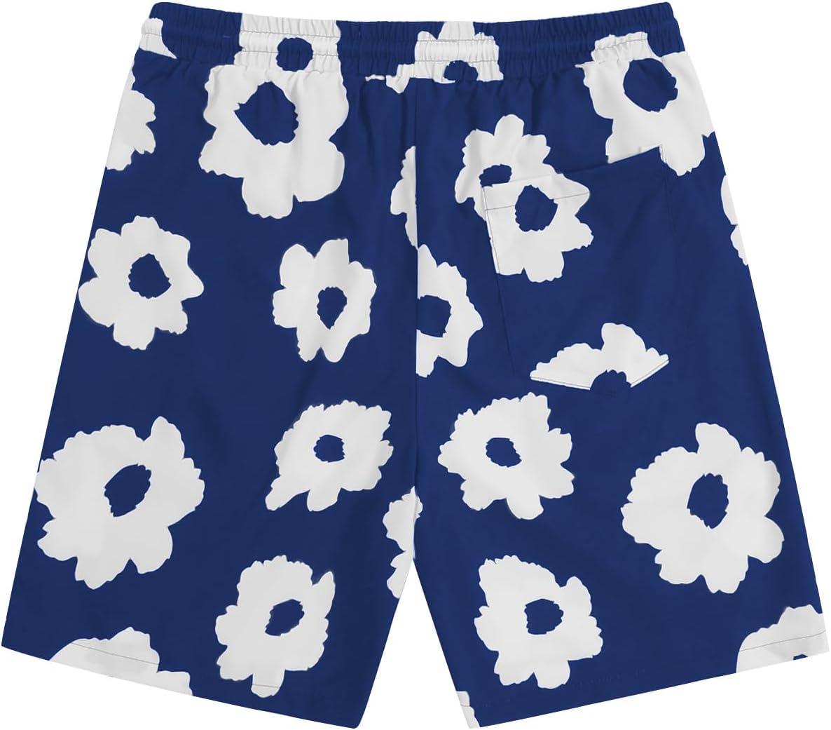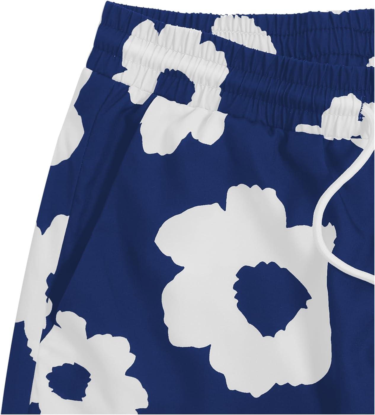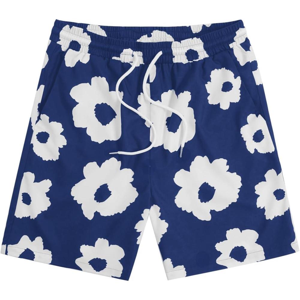 SOLY HUX Men’s Floral Graphic Print Drawstring High Waist Shorts Casual Shorts with Pockets(Dark Blue Floral Print)