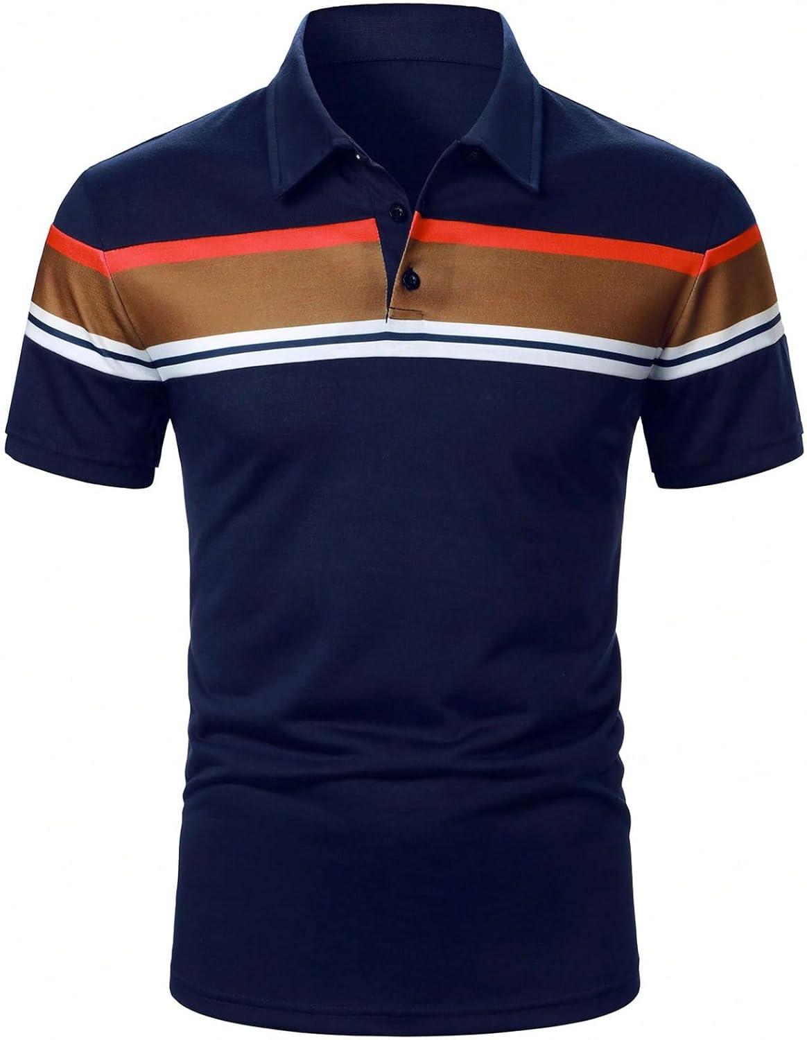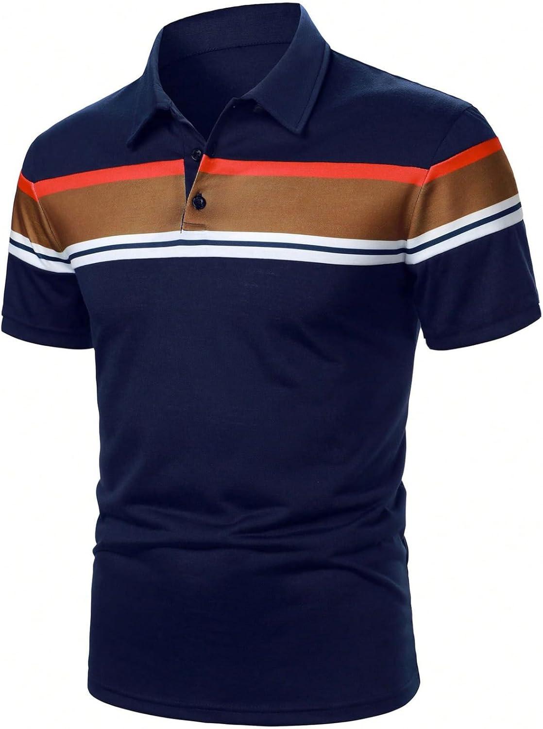 SOLY HUX Men’s Golf Shirts Color Block Top Short Sleeve Collared T-Shirt Classic Tops(Dark Blue)