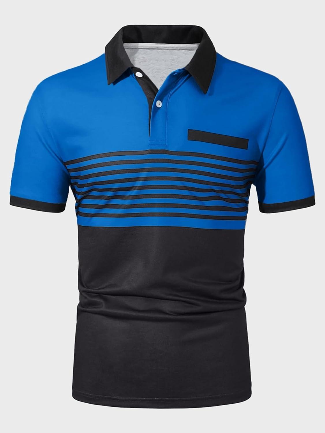 SOLY HUX Men’s Golf Shirts Short Sleeve Striped Collared T Shirt Casual Work Shirts(Black and Blue)