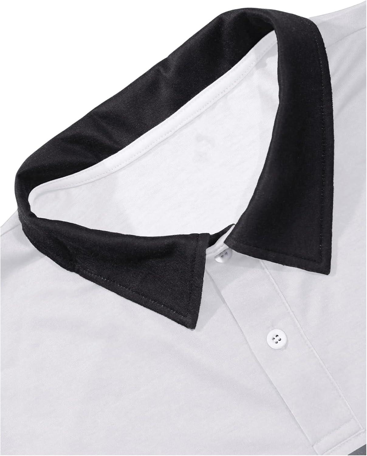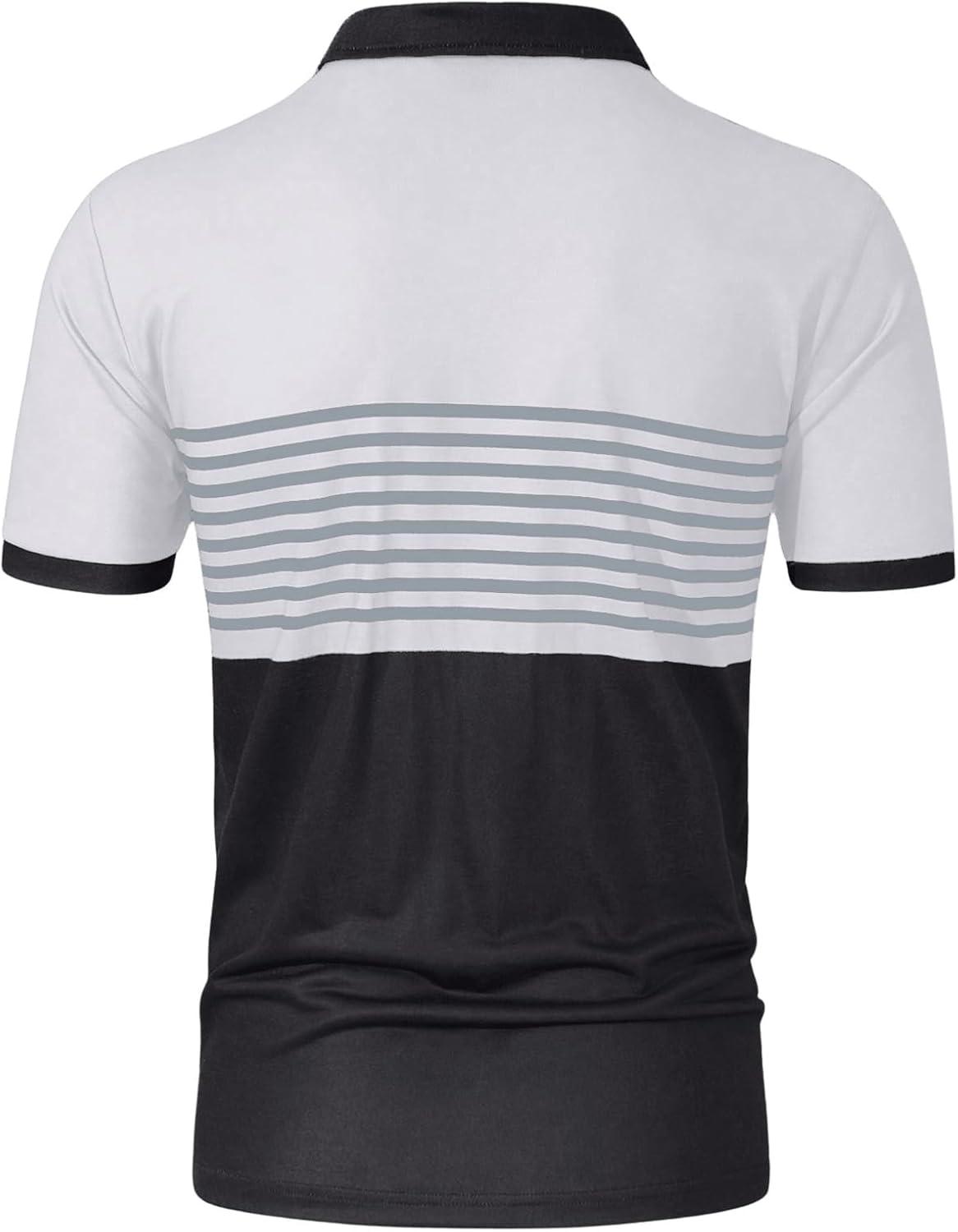 SOLY HUX Men’s Golf Shirts Short Sleeve Striped Collared T Shirt Casual Work Shirts(Black Striped)