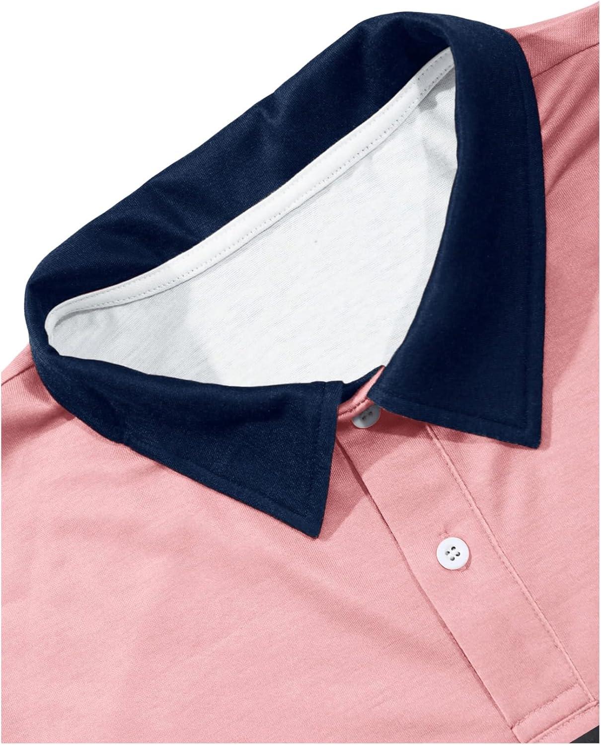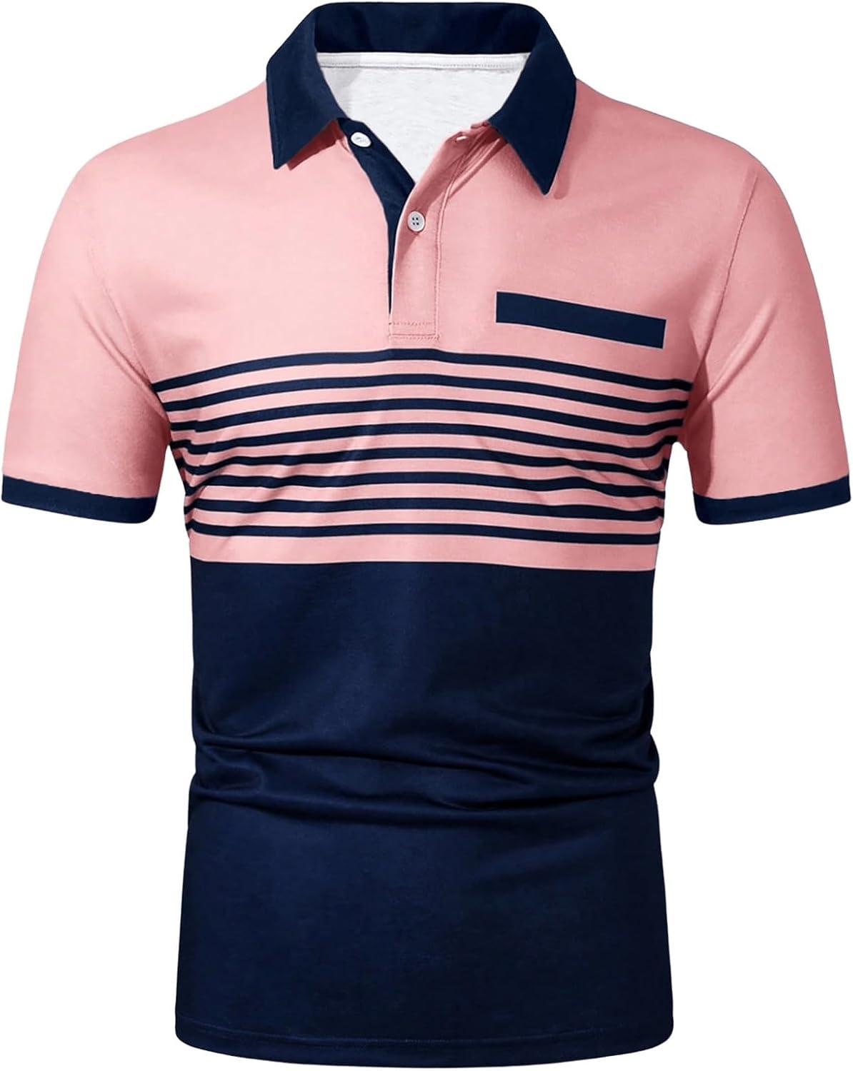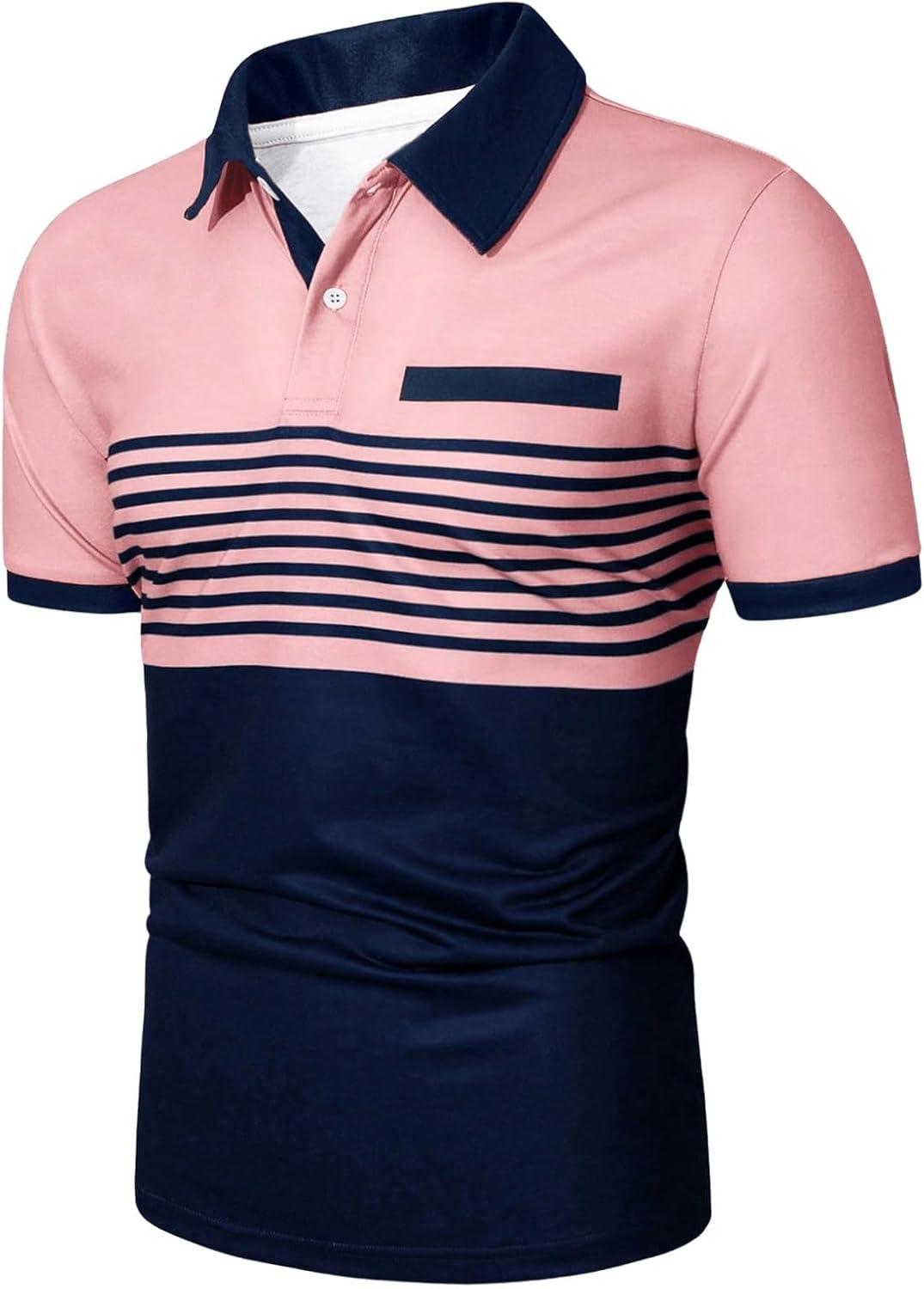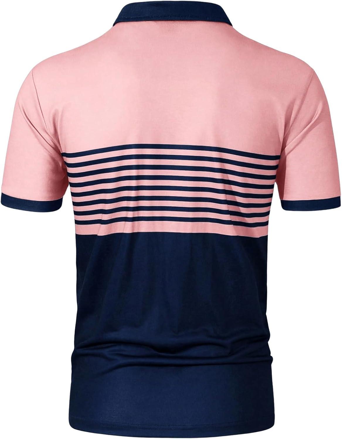 SOLY HUX Men’s Golf Shirts Short Sleeve Striped Collared T Shirt Casual Work Shirts(Blue and Pink)