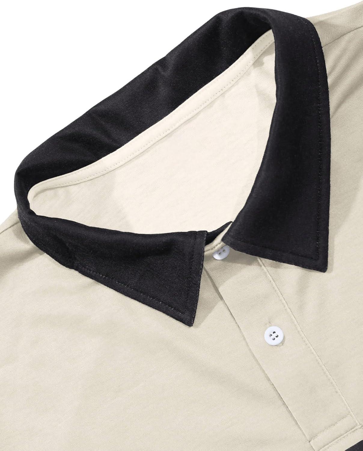 SOLY HUX Men’s Golf Shirts Short Sleeve Striped Collared T Shirt Casual Work Shirts(Khaki and Black)