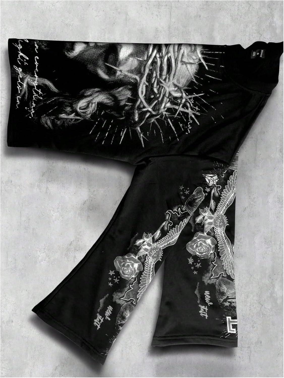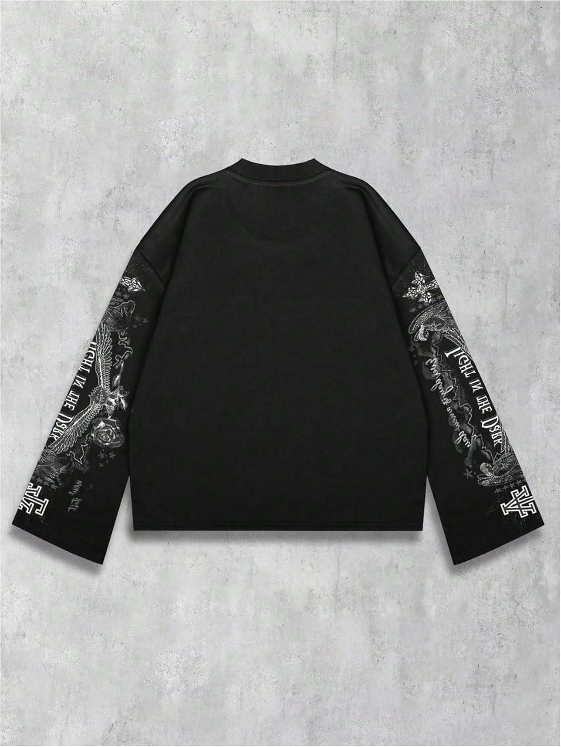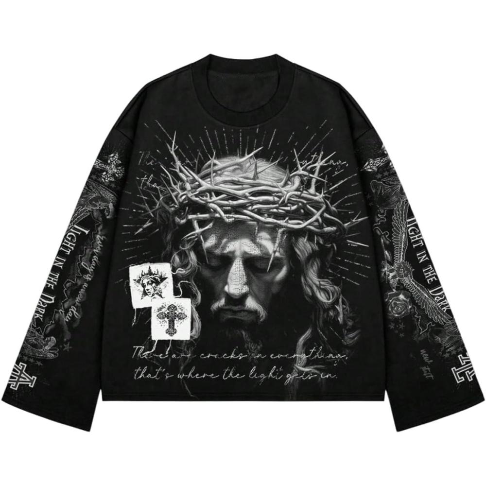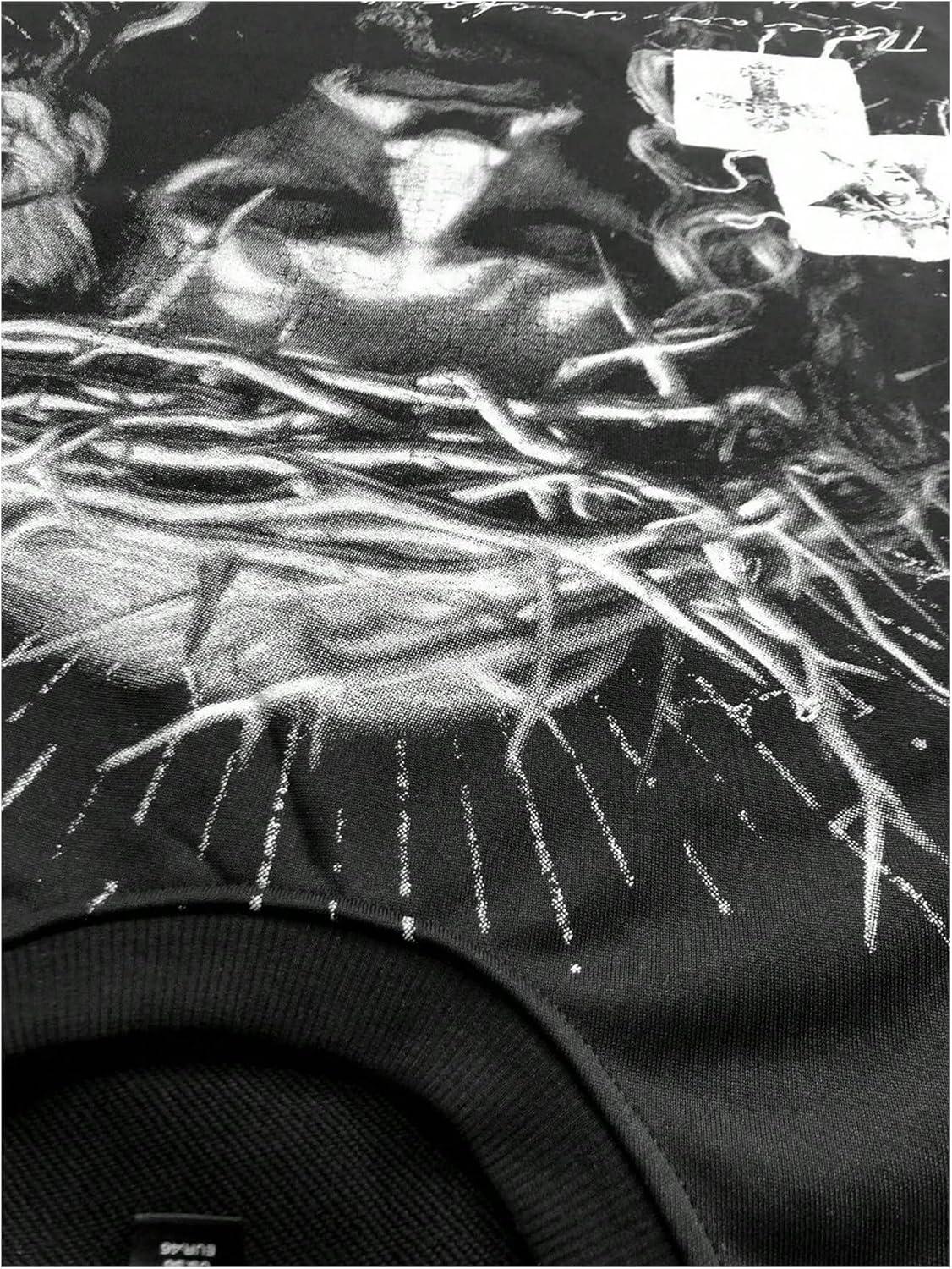 SOLY HUX Men’s Goth Graphic Tees Grunge Jesus Long Sleeve Shirts Crew Neck Hip Hop Tops Streetwear(Black Grey Graphic)