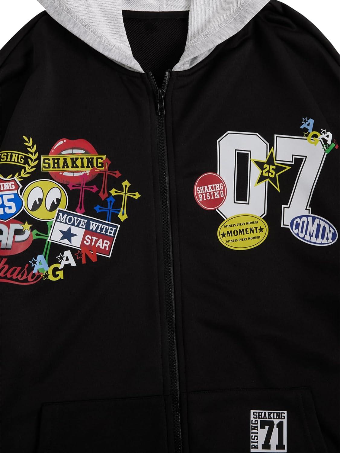 SOLY HUX Men’s Graphic Oversized Hoodies Y2k Zip Up Long Sleeve Hooded Sweatshirt Jacket Streetwear(Black Grey)