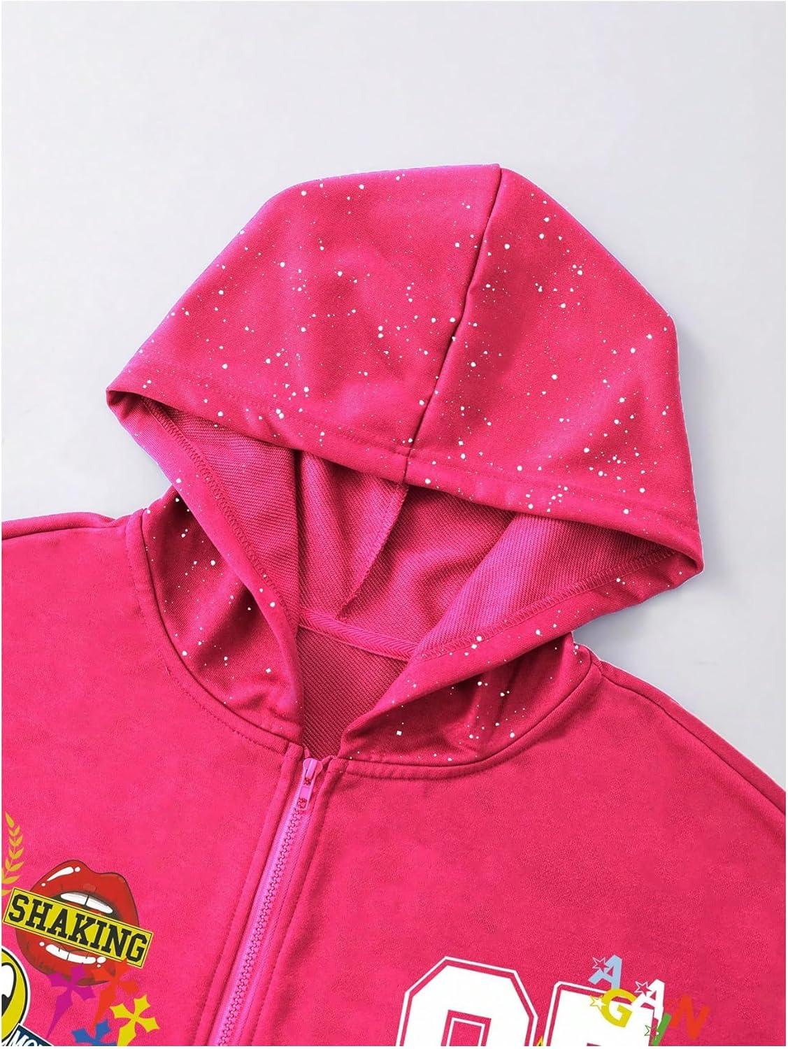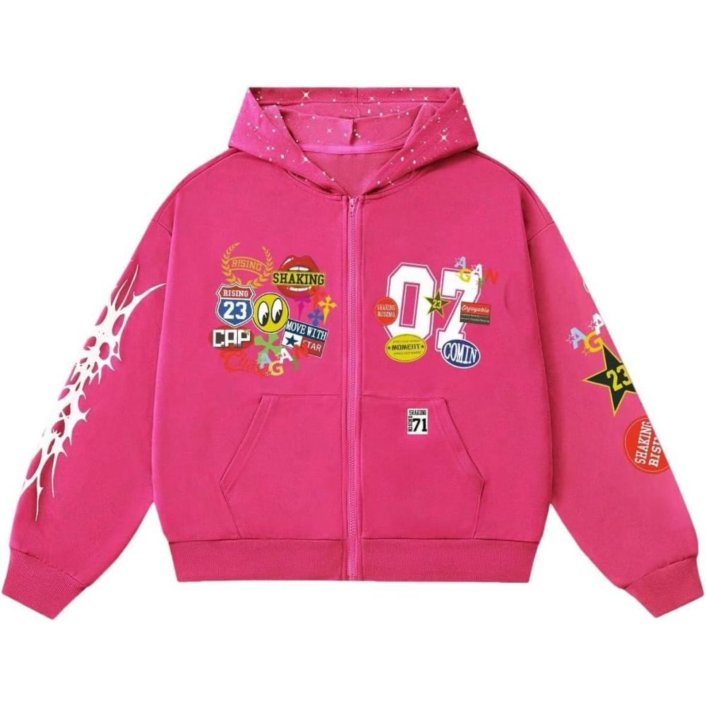 SOLY HUX Men’s Graphic Oversized Hoodies Y2k Zip Up Long Sleeve Hooded Sweatshirt Jacket Streetwear(Hot Pink)