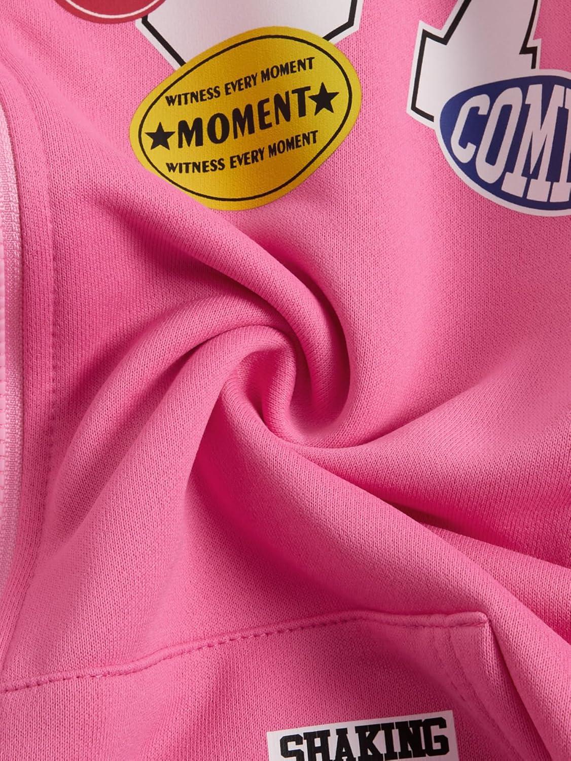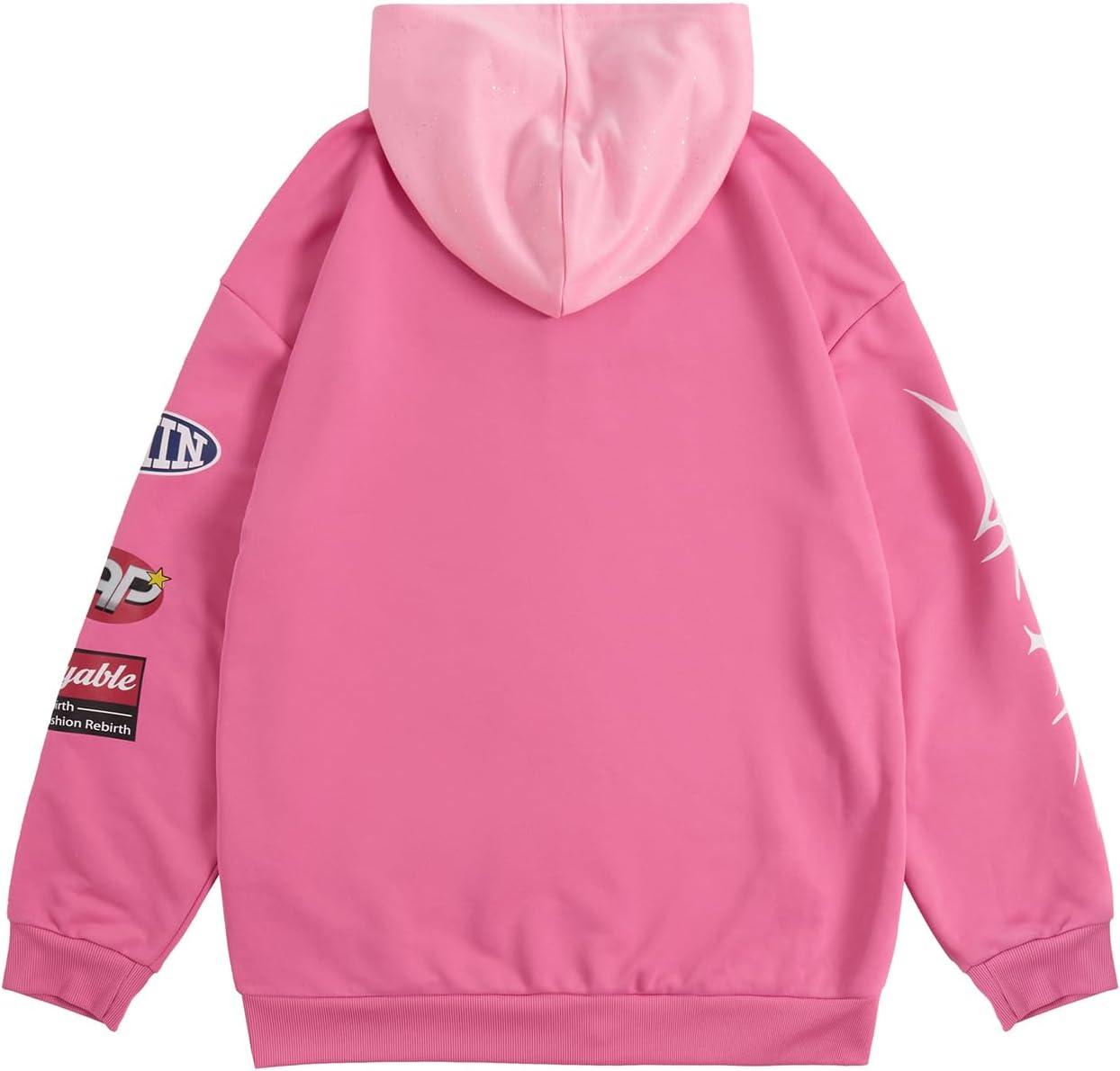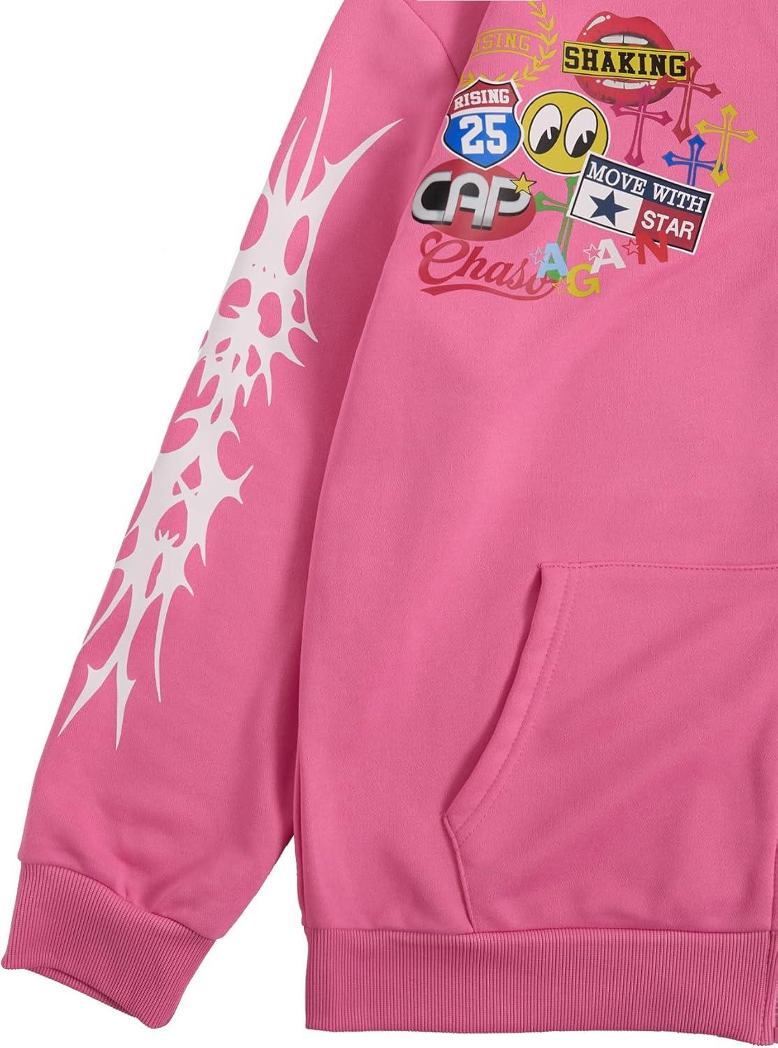 SOLY HUX Men’s Graphic Oversized Hoodies Y2k Zip Up Long Sleeve Hooded Sweatshirt Jacket Streetwear(Pink Graphic)