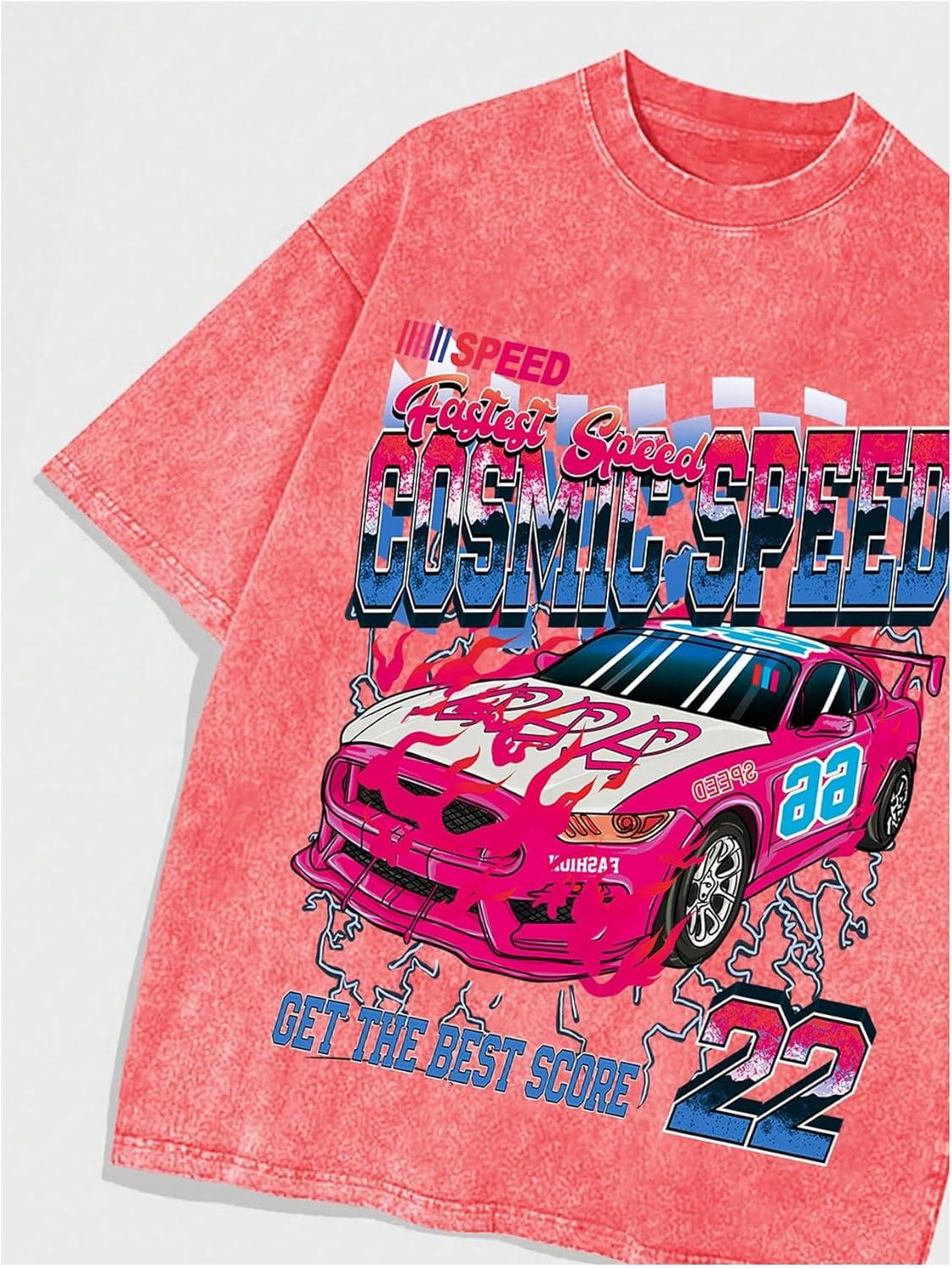 SOLY HUX Men’s Graphic Print T-Shirt Vintage Drop Shoulder Short Sleeve Casual Loose Tees Summer Outfits(Red Graphic)