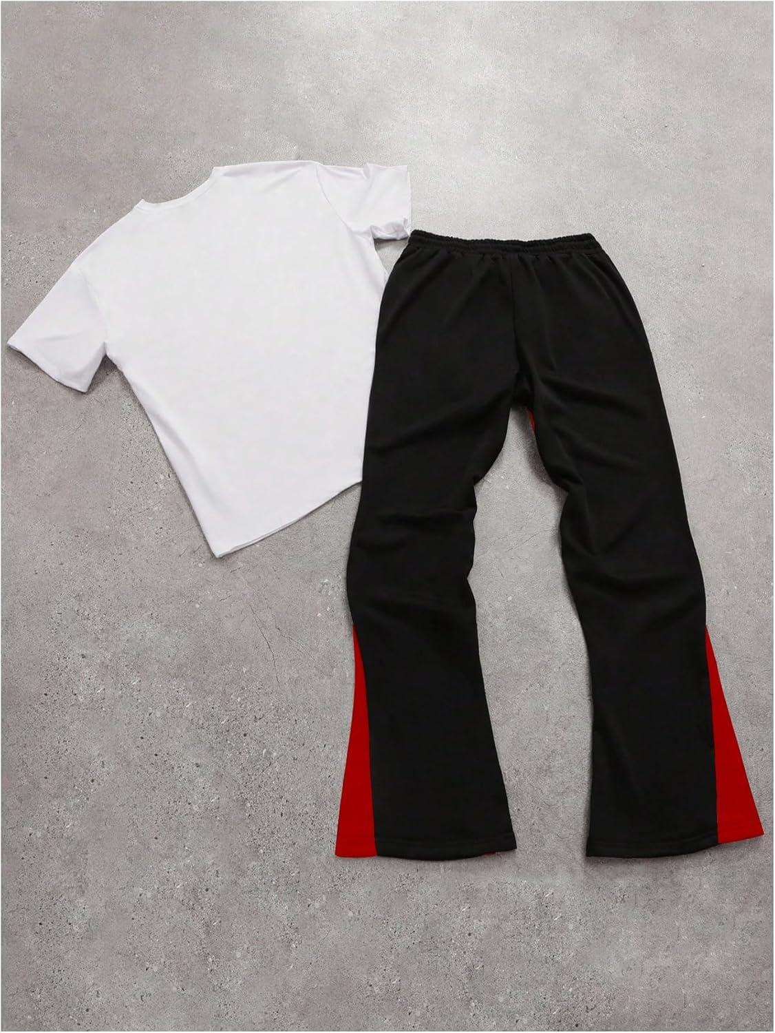 SOLY HUX Men’s Graphic Summer Outfits Y2k Grunge Short Sleeve T Shirt Pants Set Hip Hop Streetwear 2 Piece(White Black Multi)