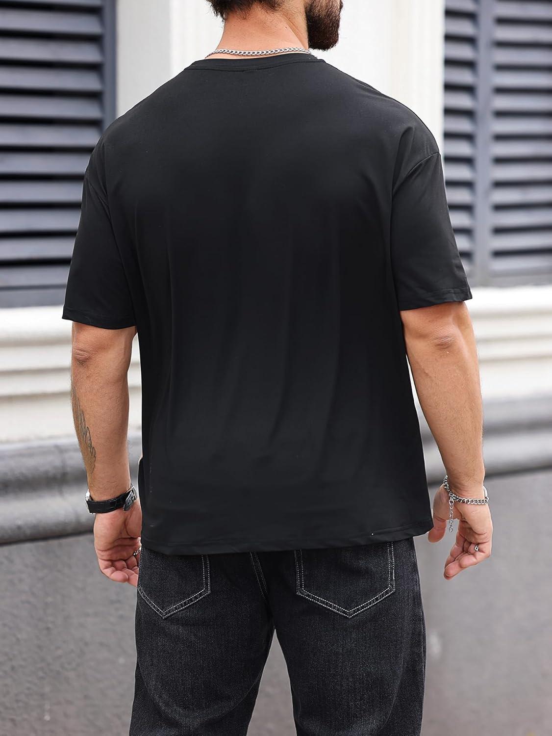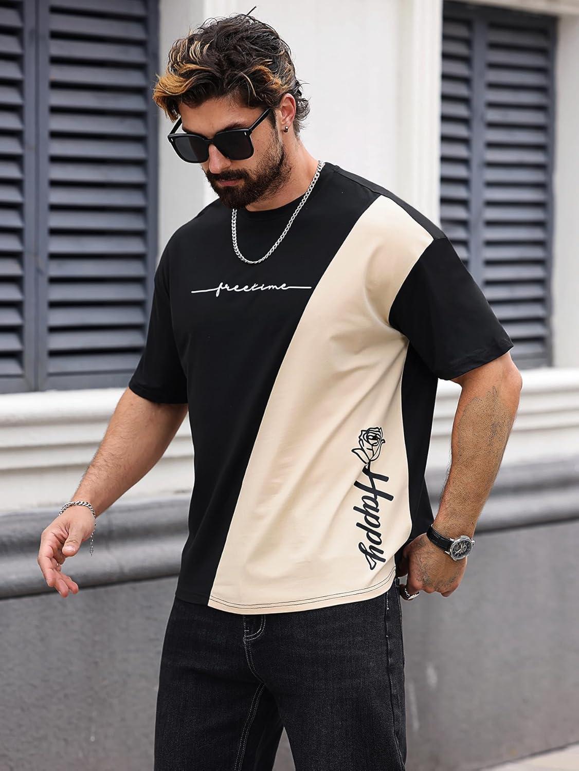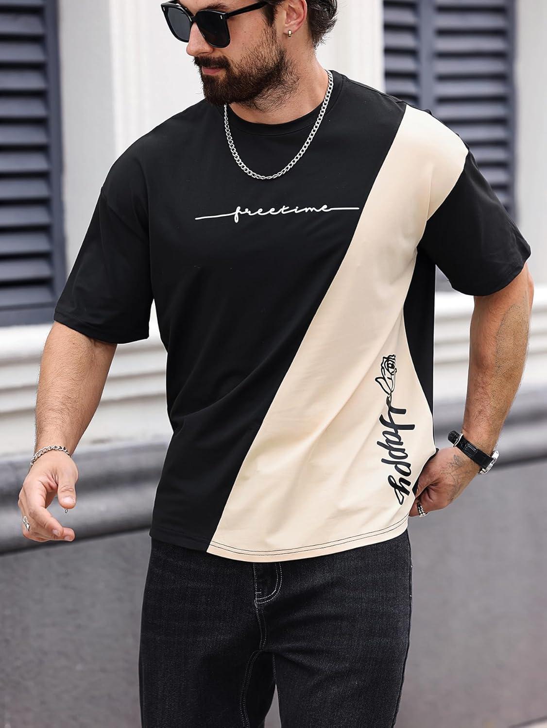 SOLY HUX Men’s Graphic Tee Tops Vintage Letter Print Short Sleeve Crewneck Casual Summer T Shirts(Black and Beige)
