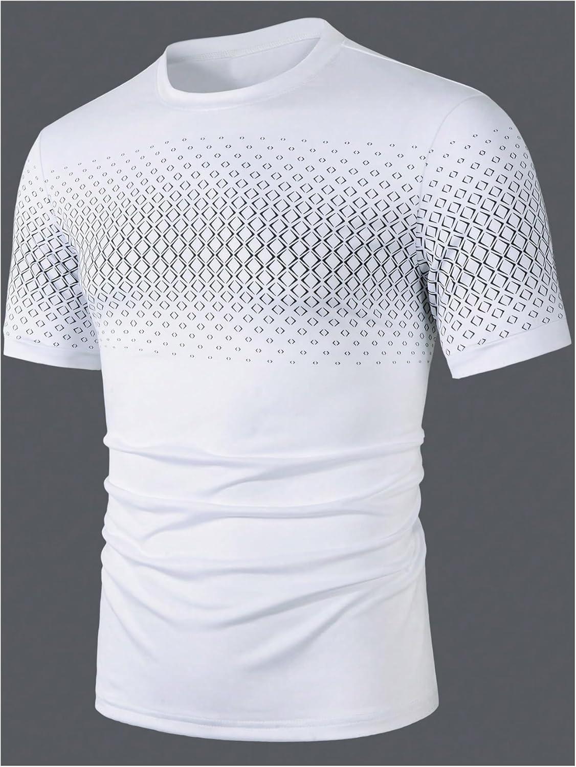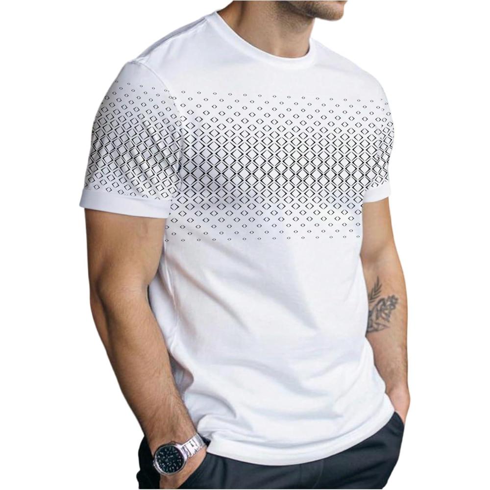 SOLY HUX Men’s Graphic Tees Casual Crew Neck Short Sleeve T Shirts Summer Tops(White Geometric)