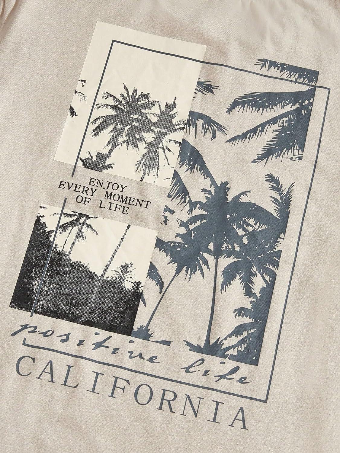 SOLY HUX Men’s Graphic Tees Letter Print Casual Short Sleeve T Shirts Summer Tops Vintage Tees(Tropical Beige)