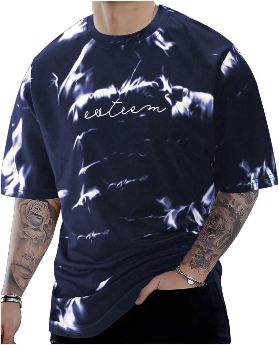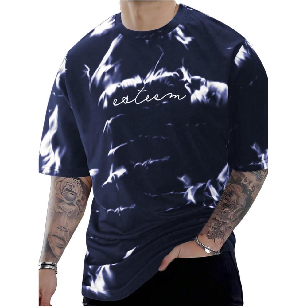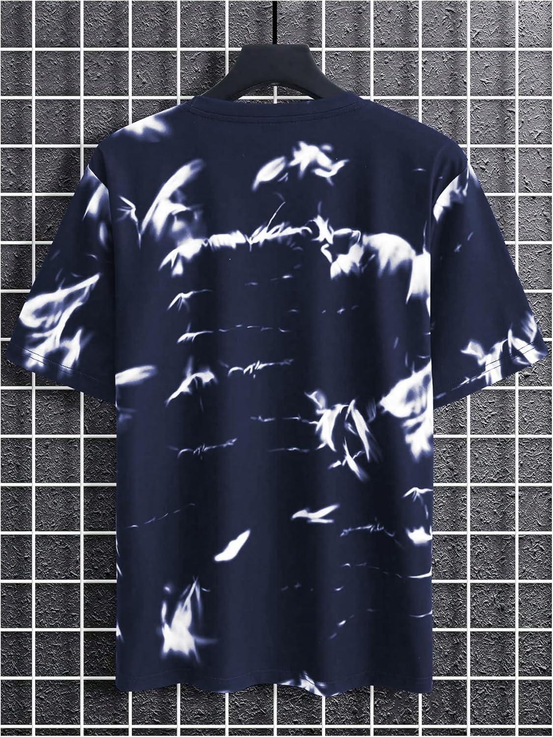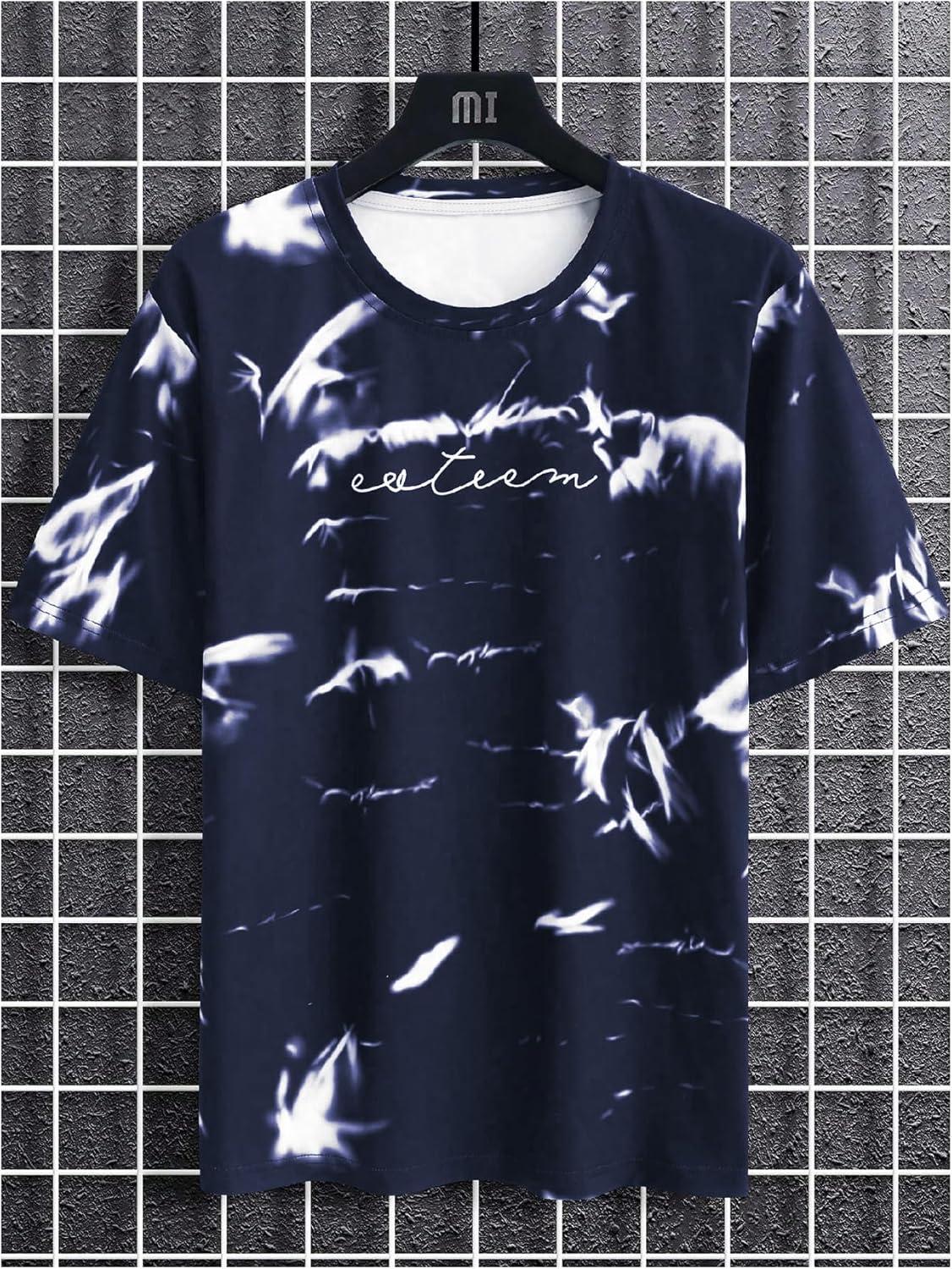 SOLY HUX Men’s Graphic Tie Dye T Shirt Letter Print Crew Neck Short Sleeve Casual Summer Tee Tops(Dark Blue Letter)