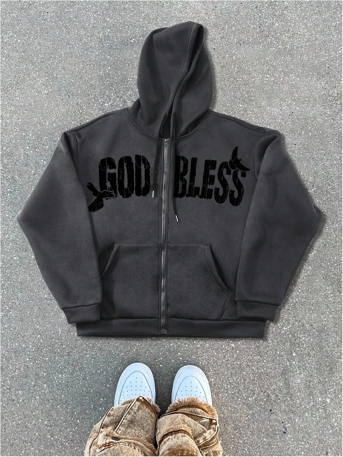 SOLY HUX Men’s Graphic Zip Up Hoodie Sweatshirt Y2k Vintage Long Sleeve Hooded Casual Jacket Streetwear(Dark Grey Letter)