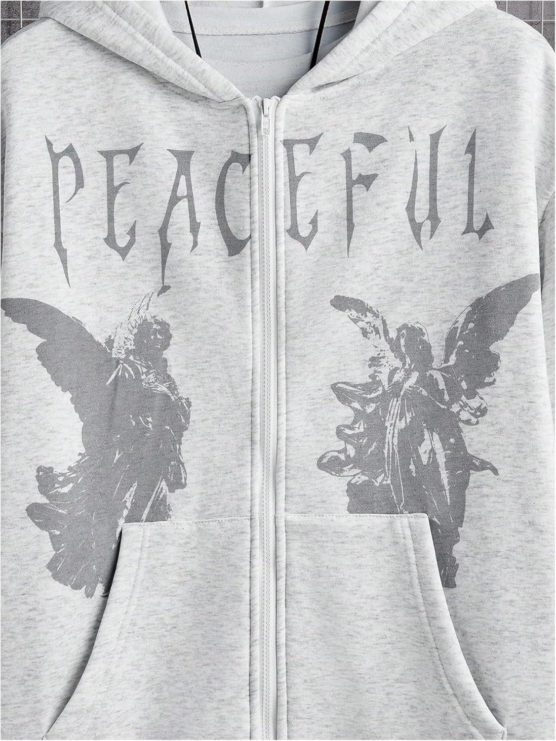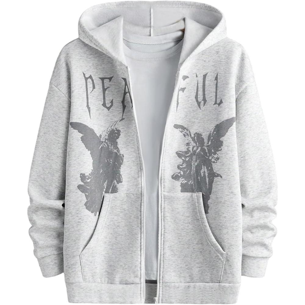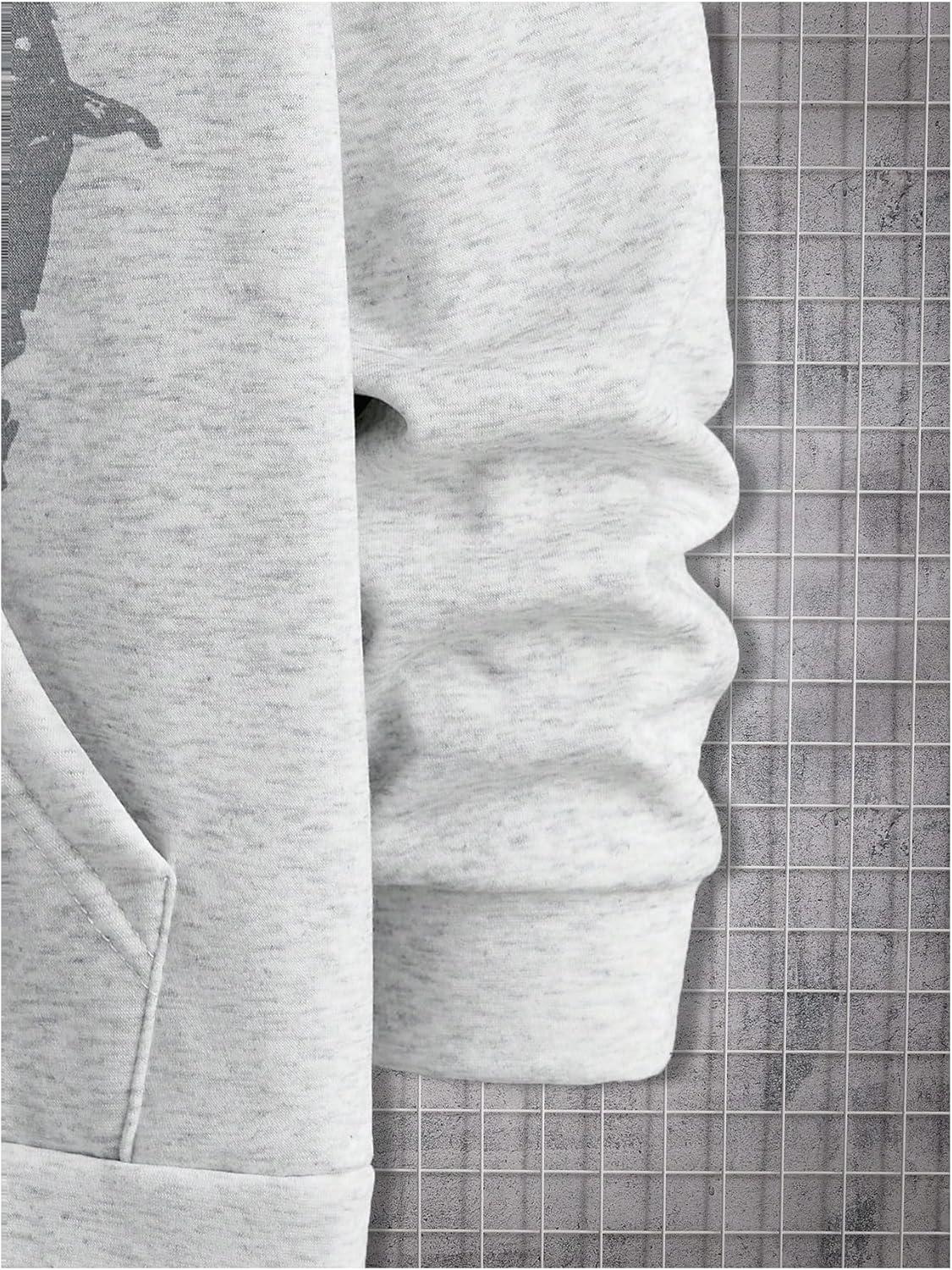 SOLY HUX Men’s Graphic Zip Up Hoodies Streetwear Jacket Letter Print Long Sleeve Sweatshirt with Pocket(Light Grey Figure)