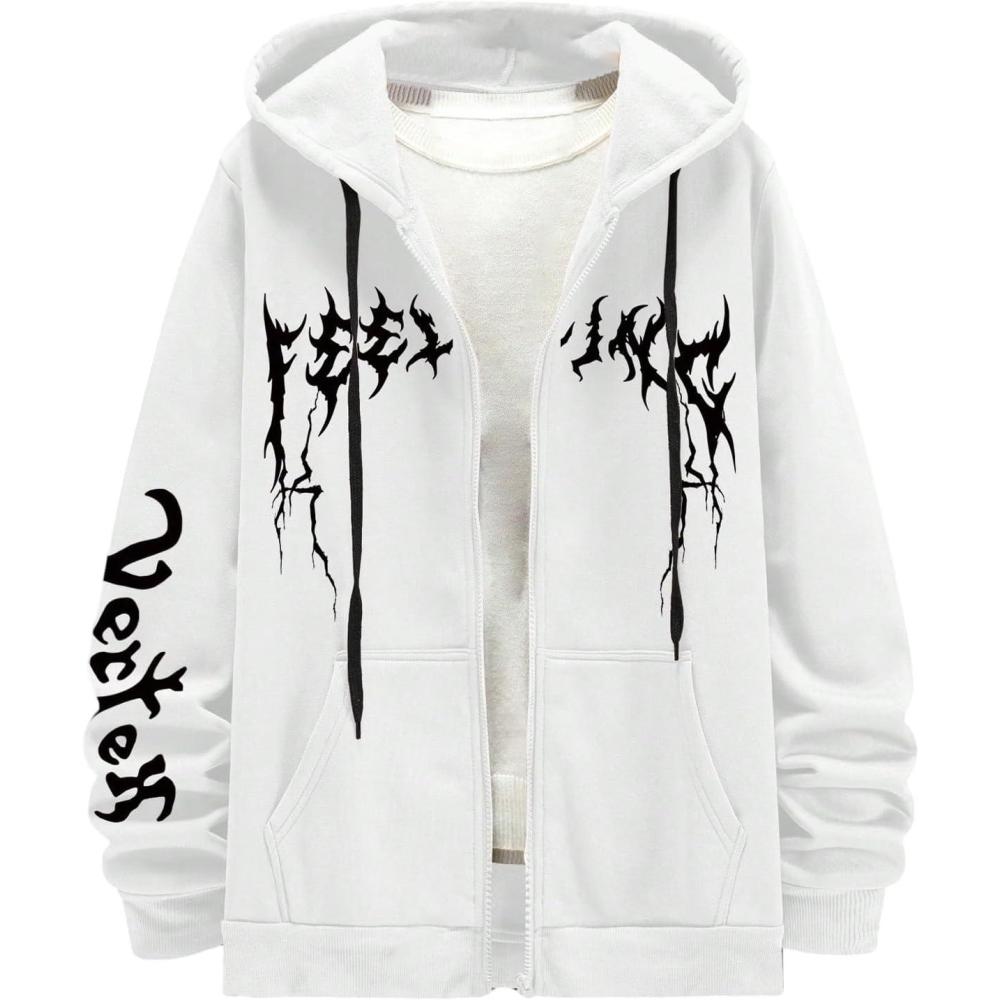 SOLY HUX Men’s Graphic Zip Up Hoodies Sweatshirt Drawstring Long Sleeve Casual Streetwear Jacket(White Graphic)
