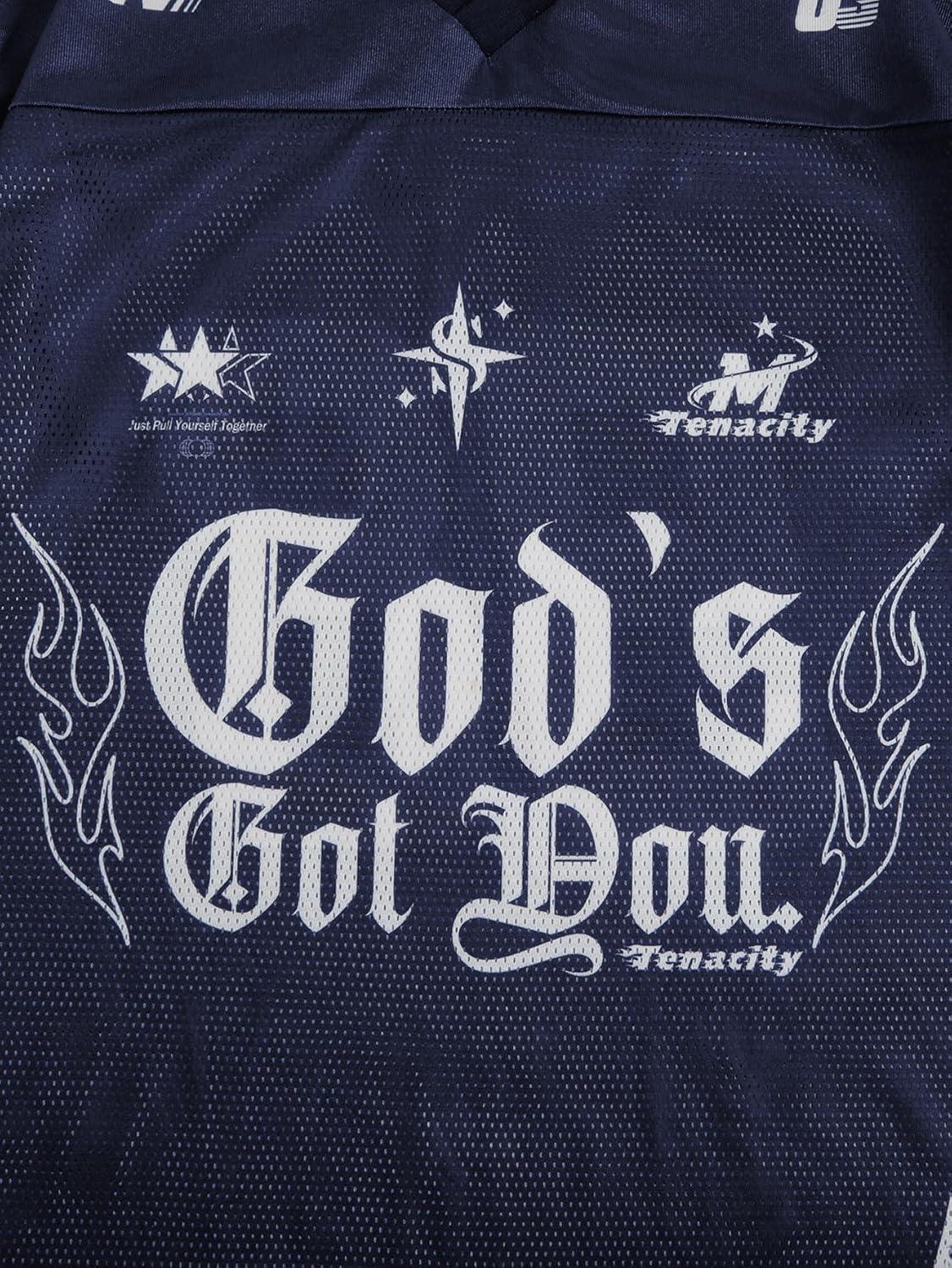 SOLY HUX Men’s Jersey Shirts Mesh Graphic Tees V Neck Drop Shoulder Short Sleeve Loose Streetwear Tops(Royal Blue Letter)