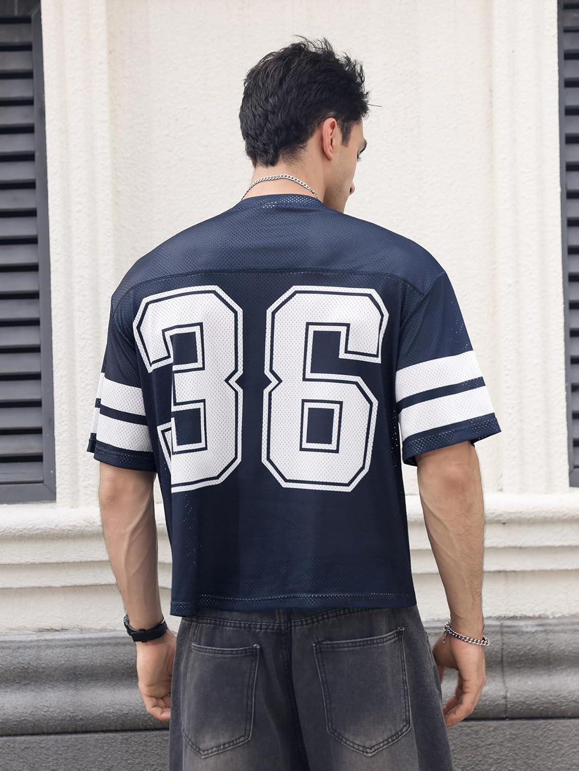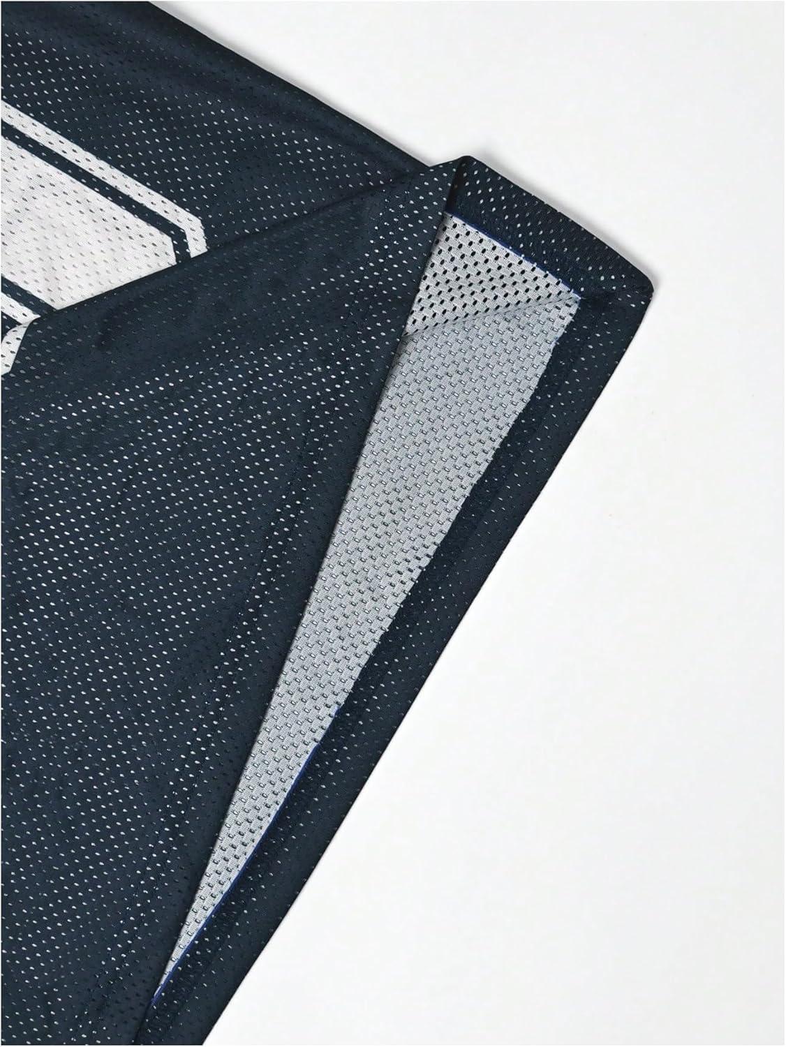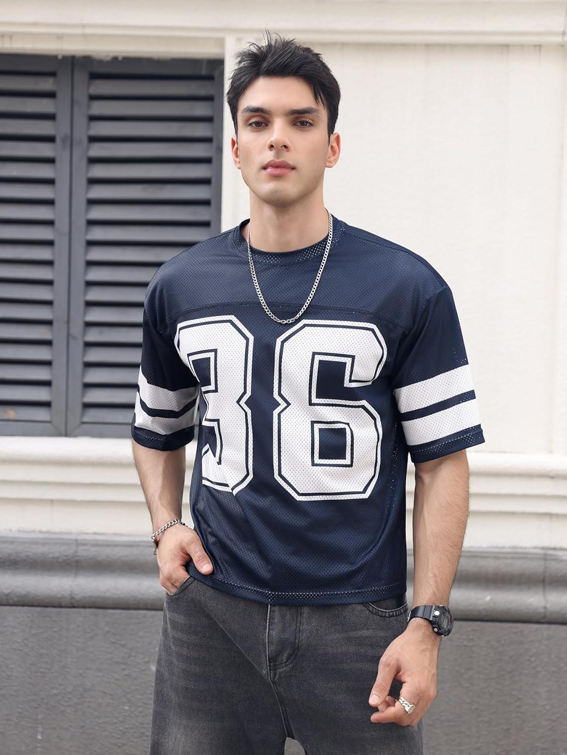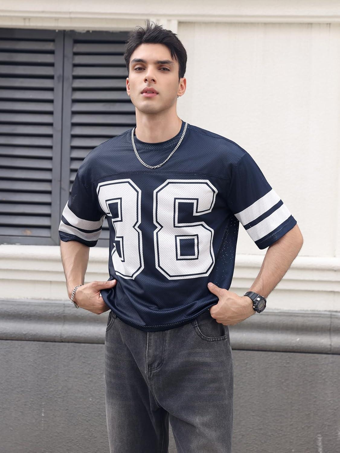 SOLY HUX Men’s Jersey Shirts Mesh Number Graphic Crew Neck Short Sleeve Streetwear Tee Loose Tops(Dark Blue Letter)