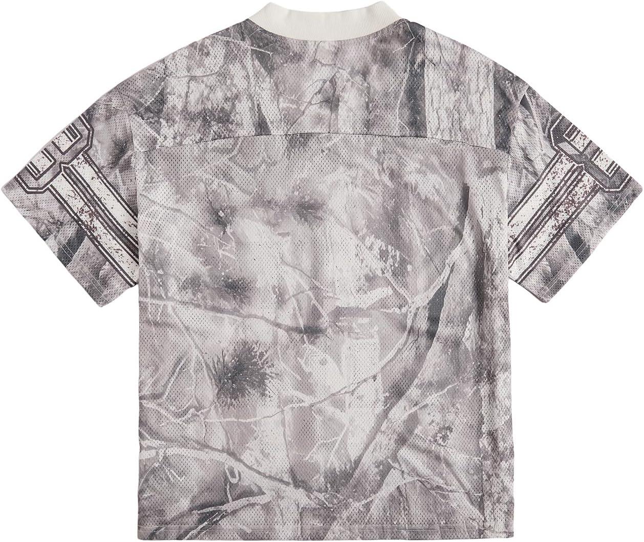 SOLY HUX Mens Jersey Y2k Baggy Shirts Graphic Tees Oversized V Neck Tshirts Summer Tops(Grey Camo)