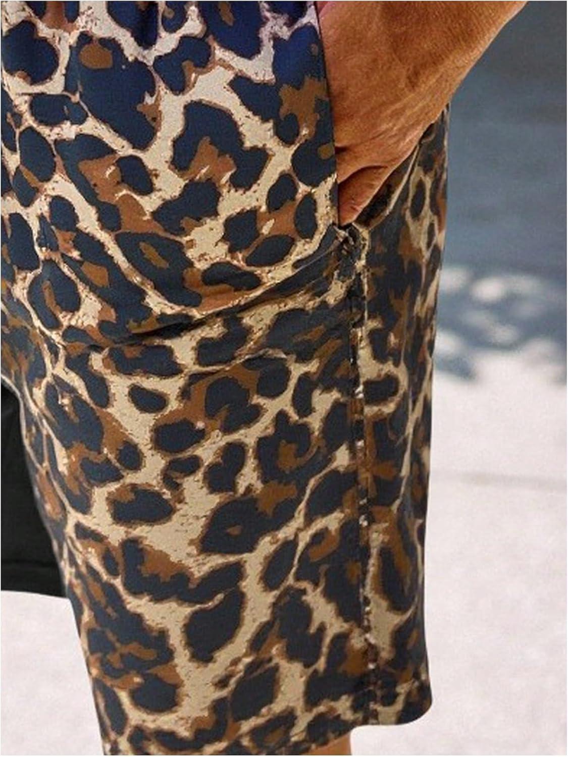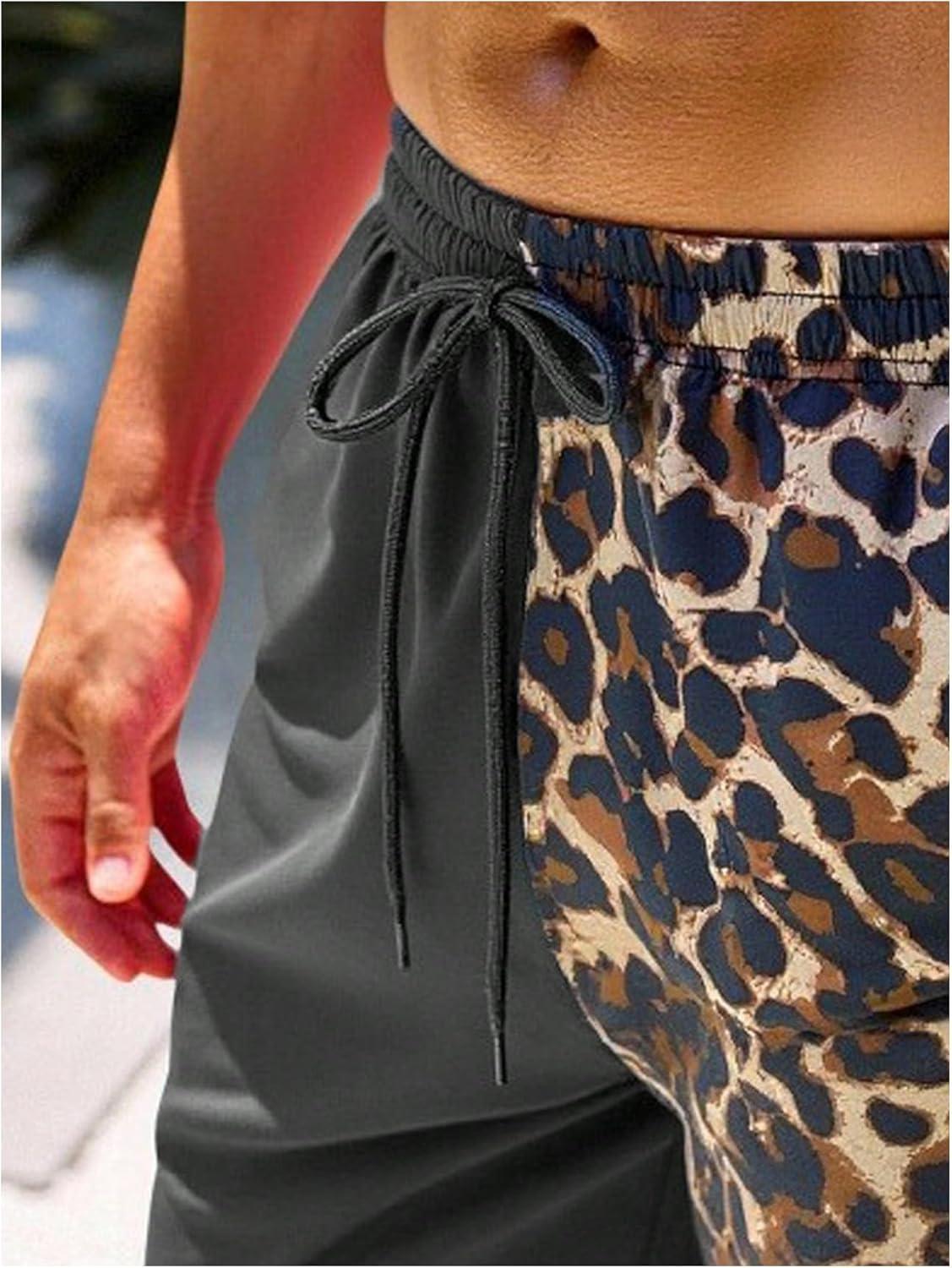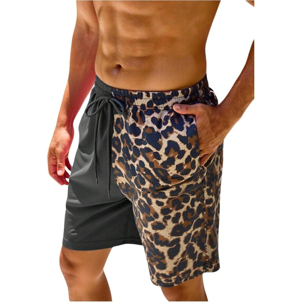 SOLY HUX Men’s Leopard Swim Trunks Cheetah Print Drawstring Waist Bathing Suit Beach Board Shorts(Multicoloured Leopard)