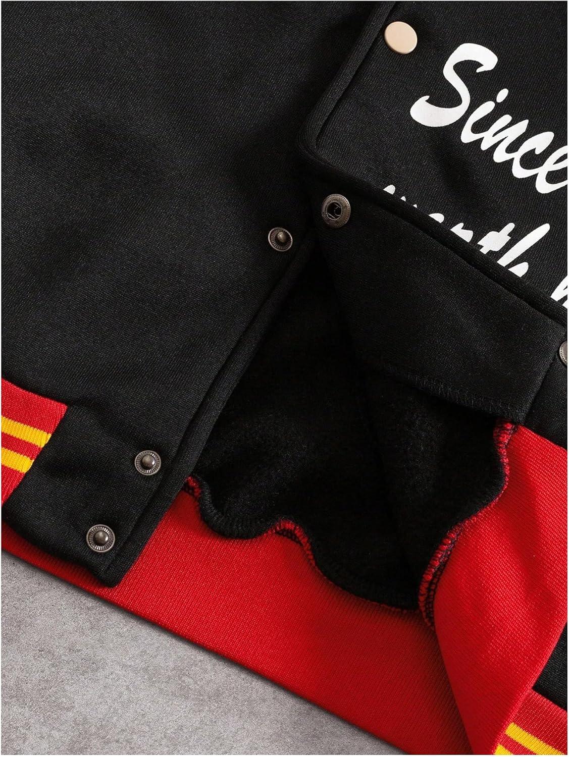 SOLY HUX Men’s Letter Graphic Color Block Varsity Jacket Long Sleeve Y2k Streetwear Baseball Jacket(Black Graphic)