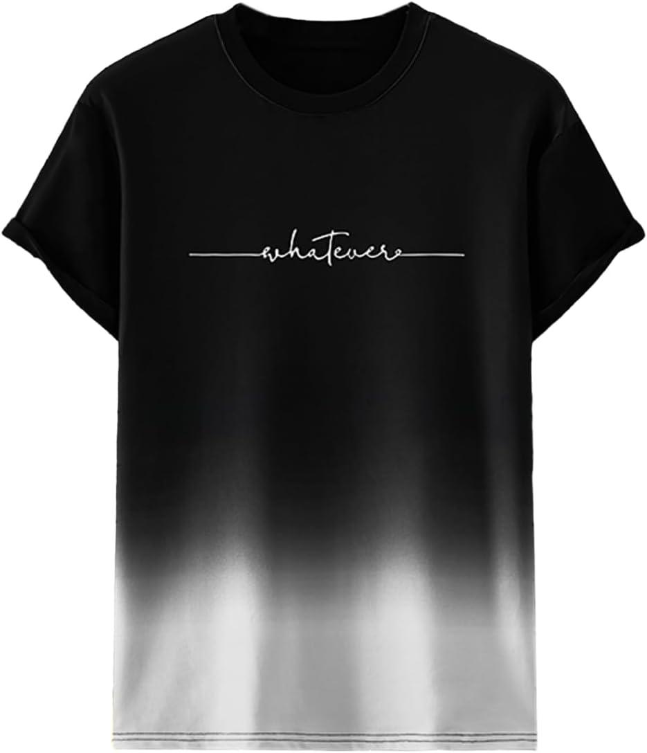 SOLY HUX Men’s Letter Graphic Tee Short Sleeve T Shirts Ombre Summer Tops Streetwear Black and White Medium
