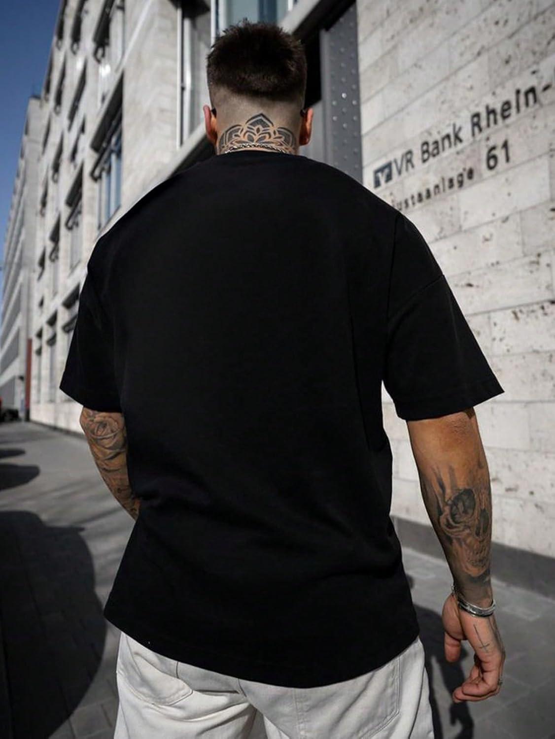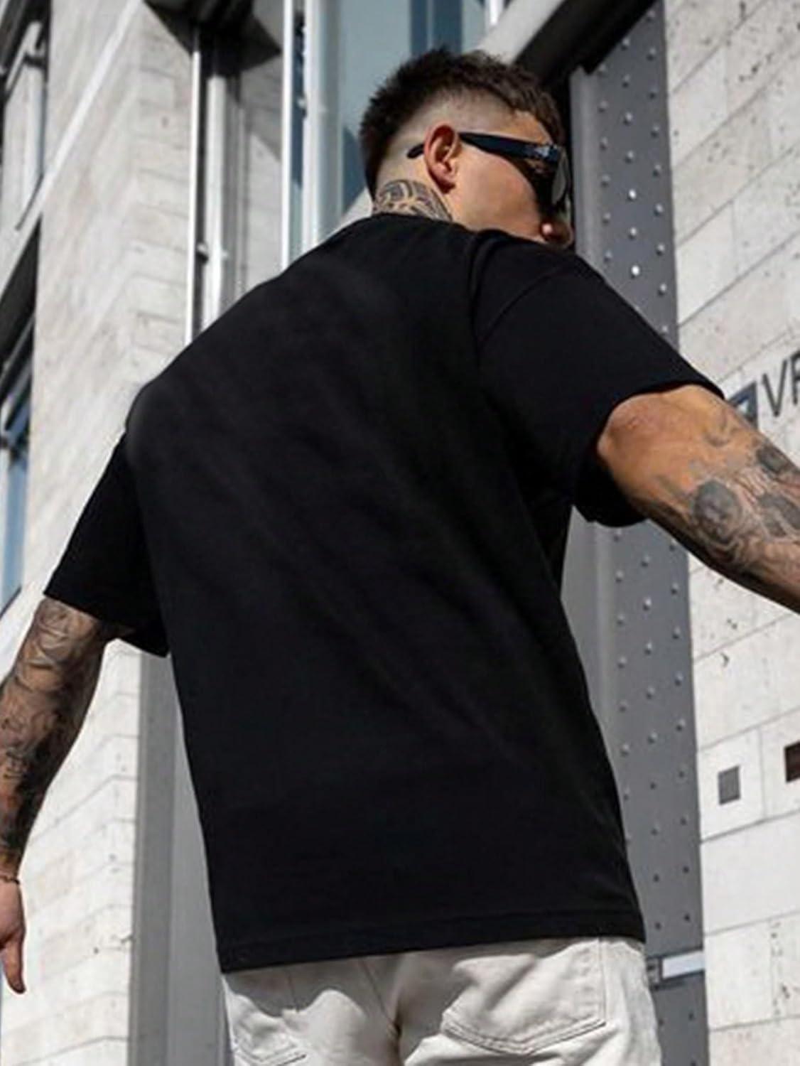 SOLY HUX Men’s Letter Graphic Tees T Shirts Round Neck Short Sleeve Summer Tops(Black Letter)