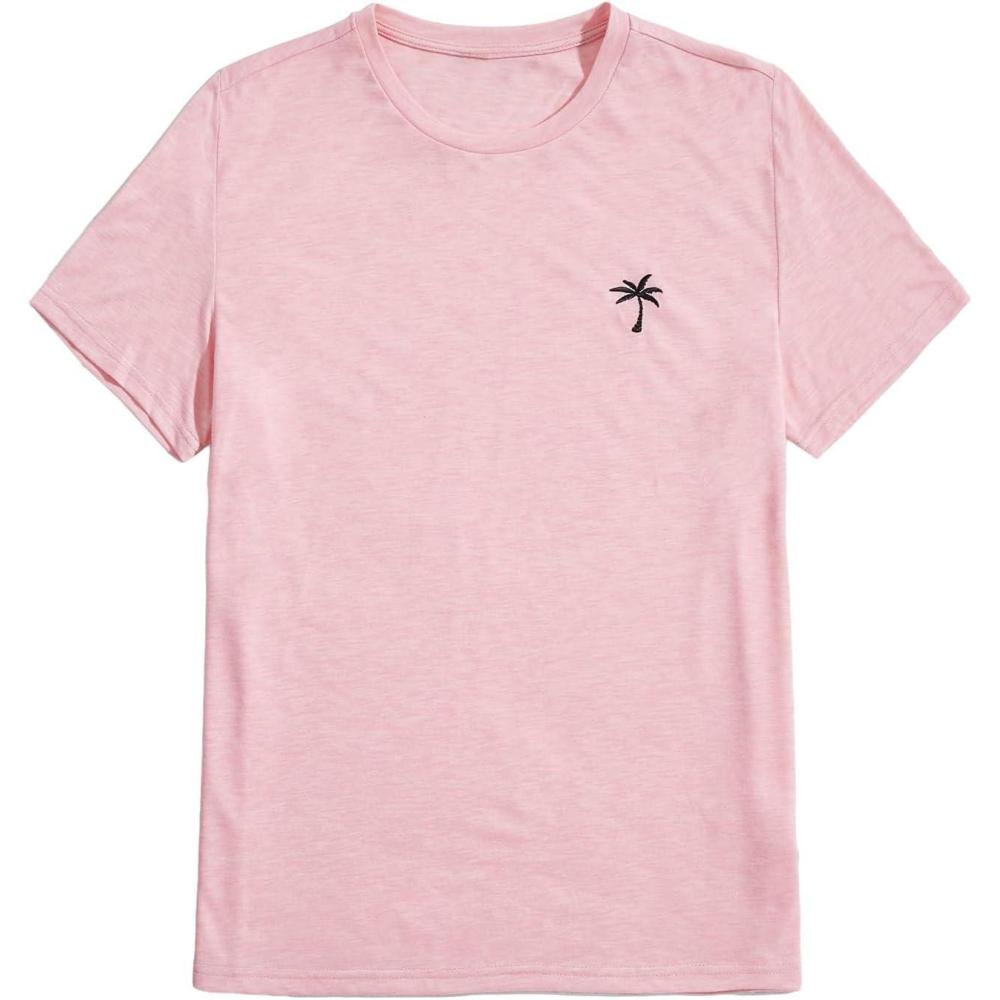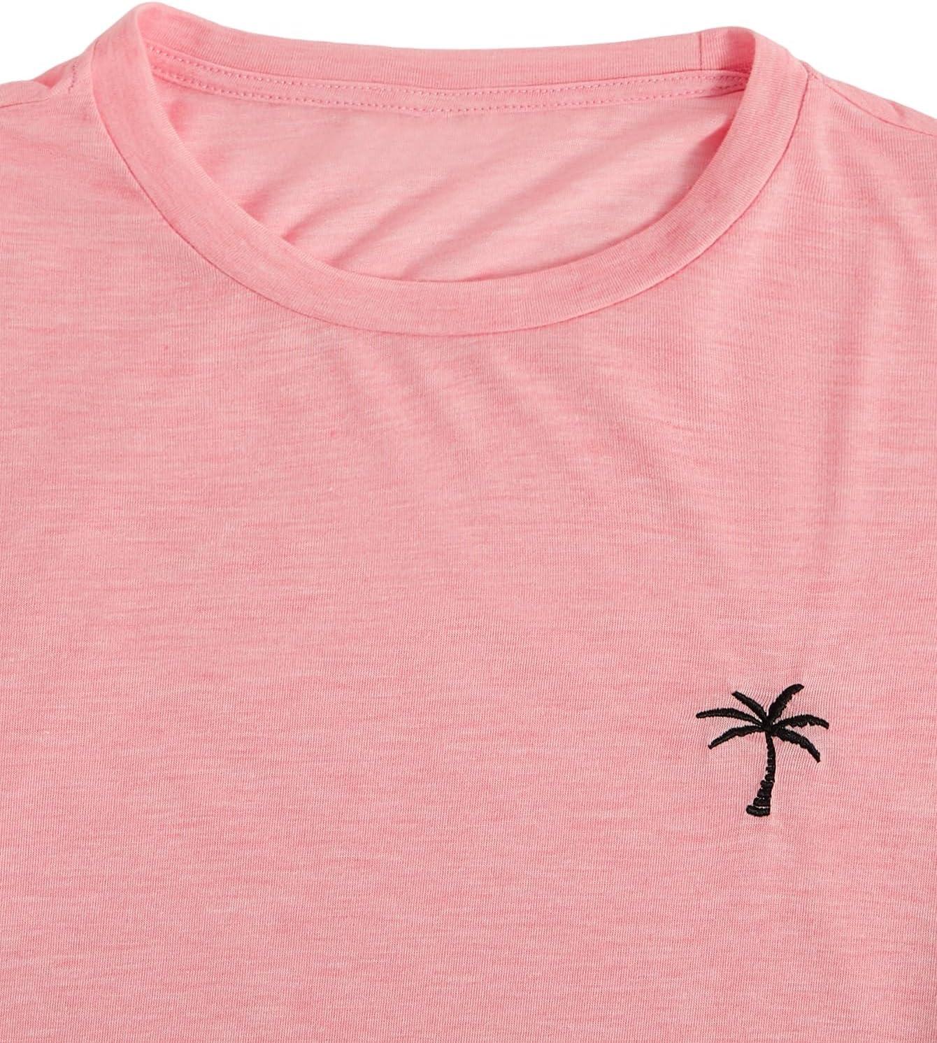 SOLY HUX Men’s Letter Graphic Tees T Shirts Round Neck Short Sleeve Summer Tops(Light Pink Tropical)