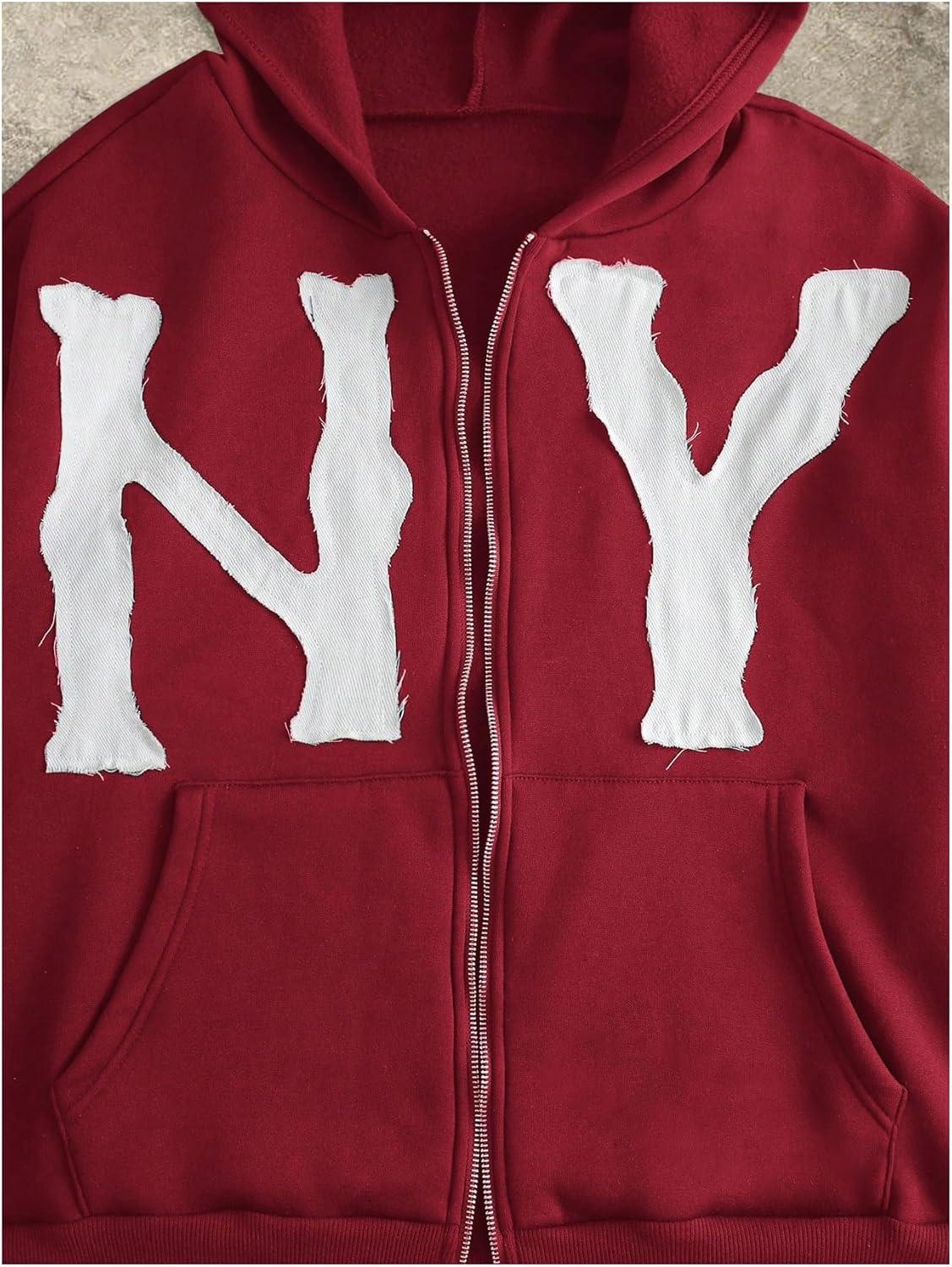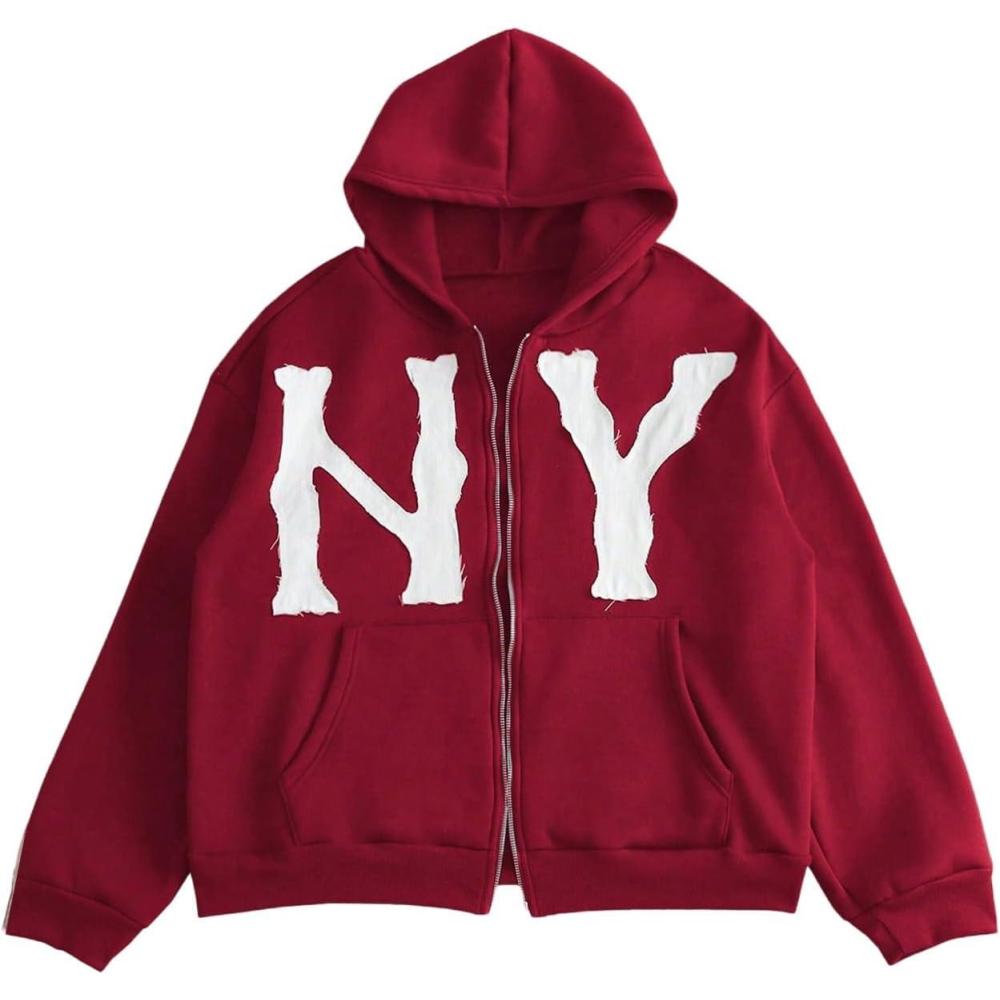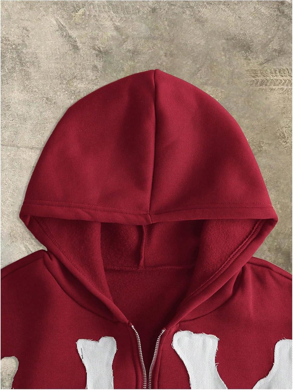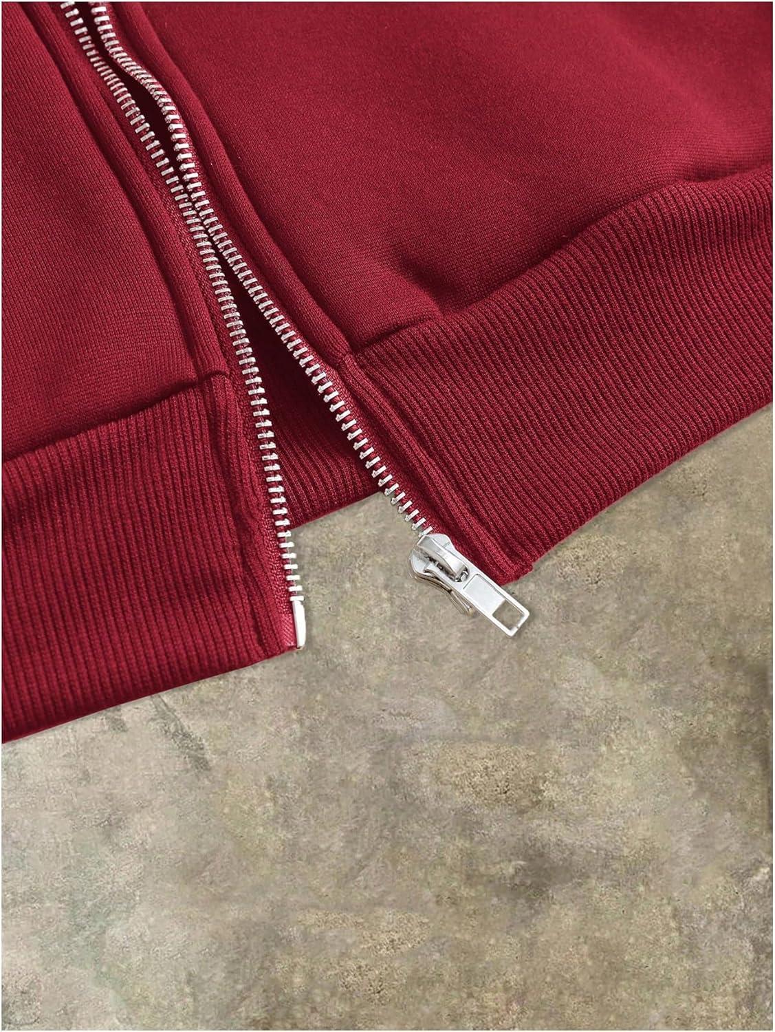 SOLY HUX Men’s Letter Graphic Zip Up Hoodie Sweatshirt Long Sleeve Drop Shoulder Casual Jacket with Pocket(Burgundy Letter)