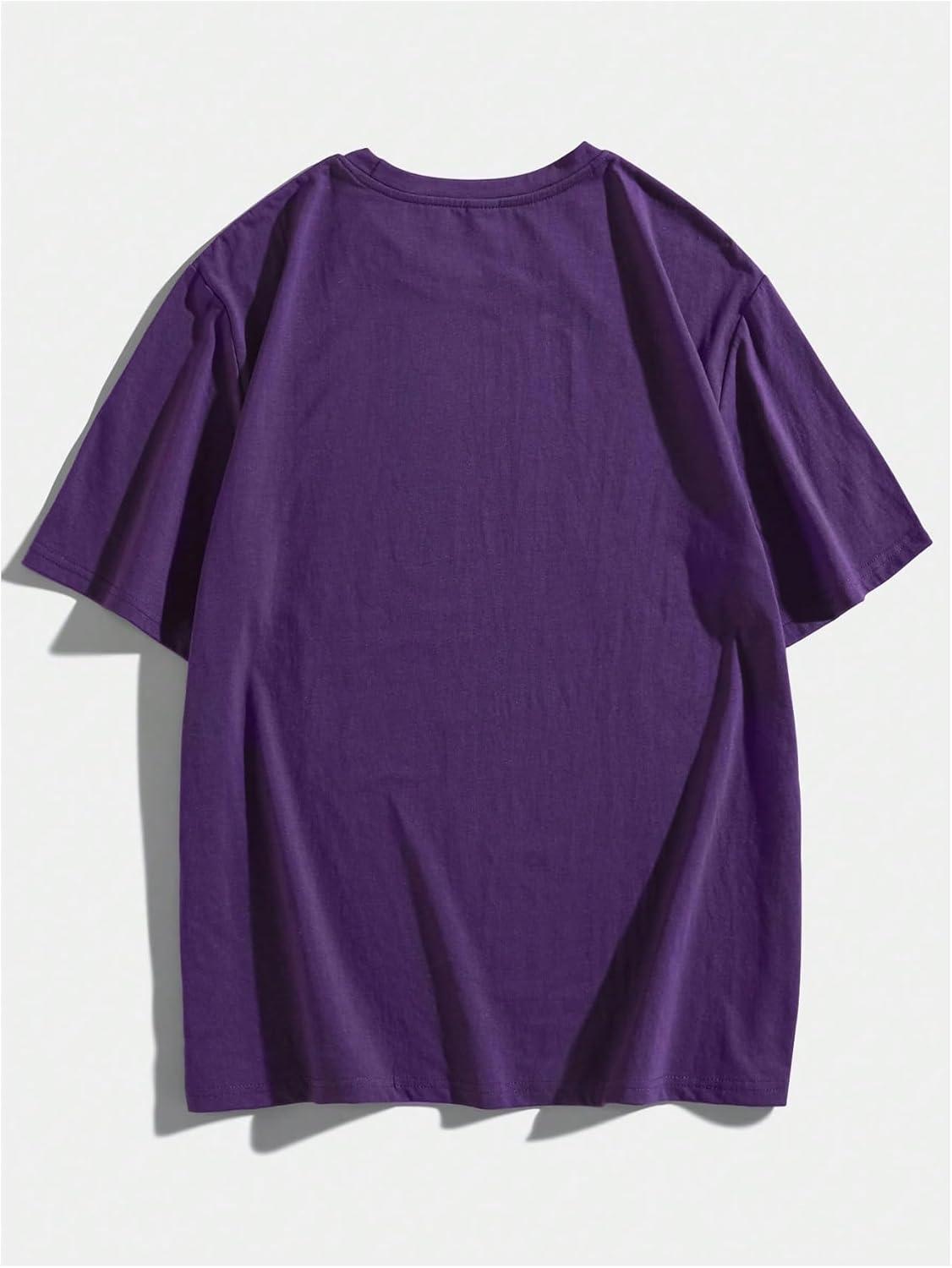 SOLY HUX Men’s Letter Print Graphic T Shirt Short Sleeve Round Neck Summer Tee Tops(Violet Purple Graphic Printed)