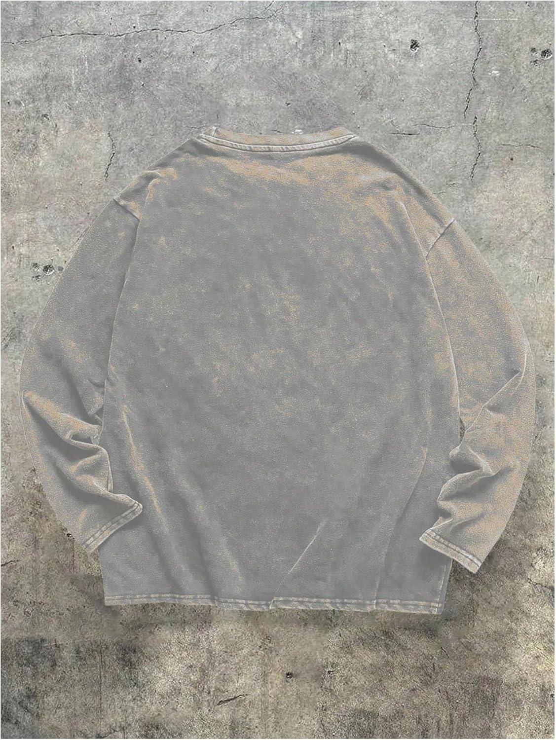 SOLY HUX Men’s Long Sleeve Basic T Shirts Crew Neck Vintage Baggy Tee Tops Fall Clothes(Light Grey)