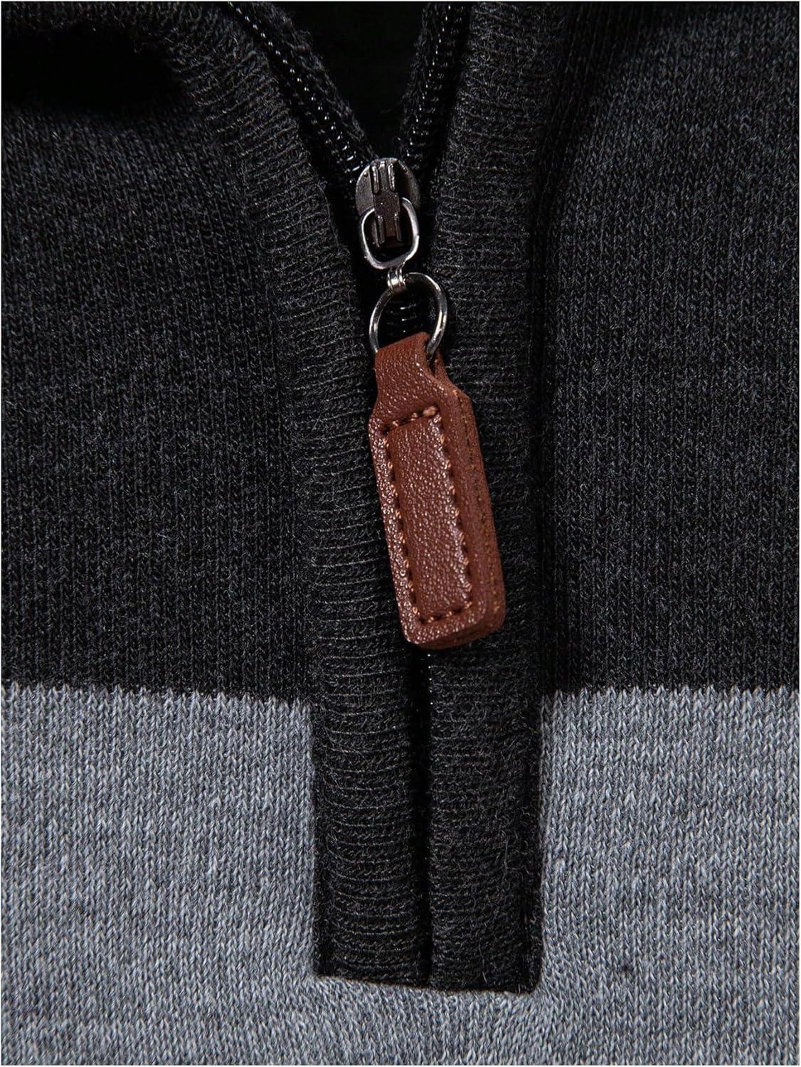 image:imageSOLY HUX Mens Long Sleeve Sweater Color Block Striped Quarter Zip Pullover Fall Knit TopsGrey Blue