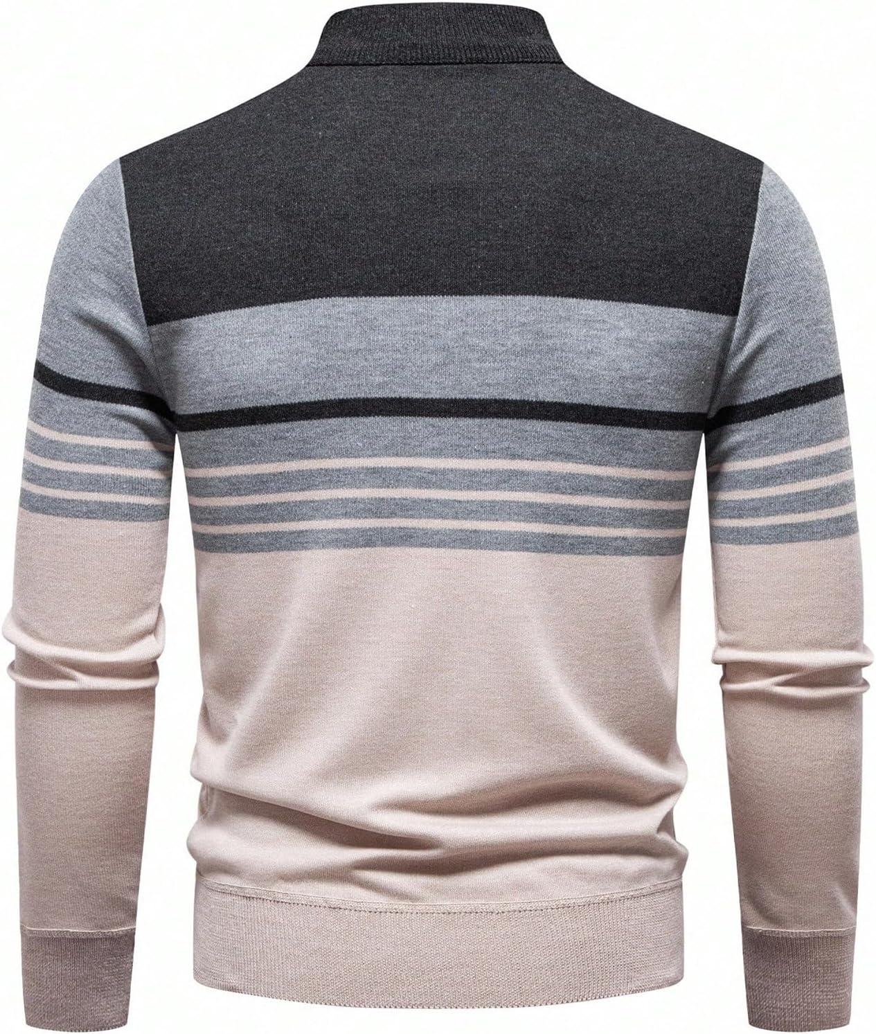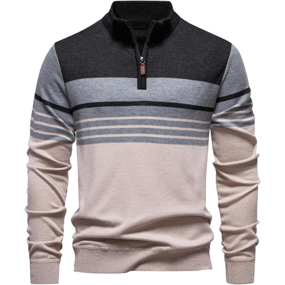 SOLY HUX Men’s Long Sleeve Sweater Color Block Striped Quarter Zip Pullover Fall Knit Tops(Apricot Grey Multi)