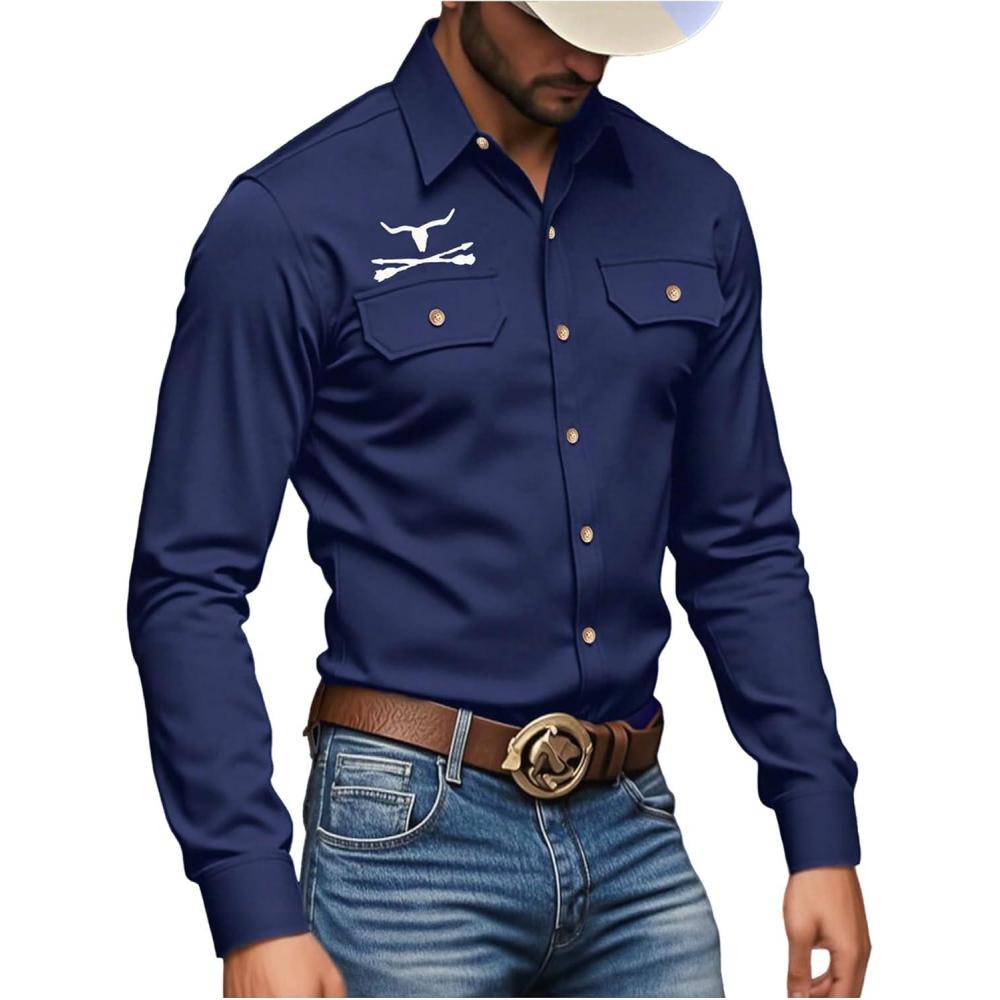 SOLY HUX Men’s Long Sleeve Western Shirts Button Down Collared Shirt Top Cowboy Outfits(Dark Blue)
