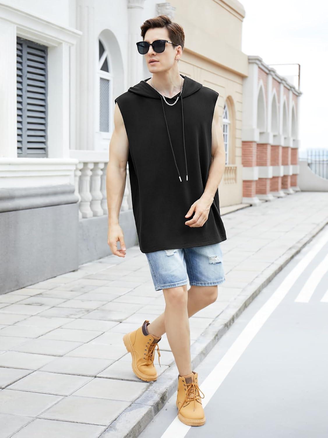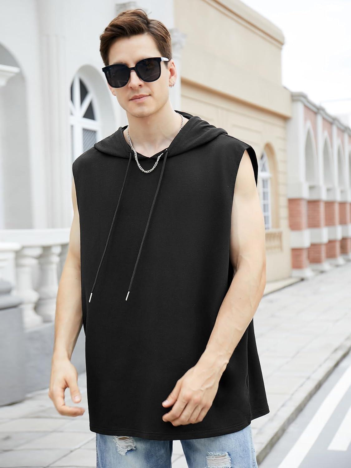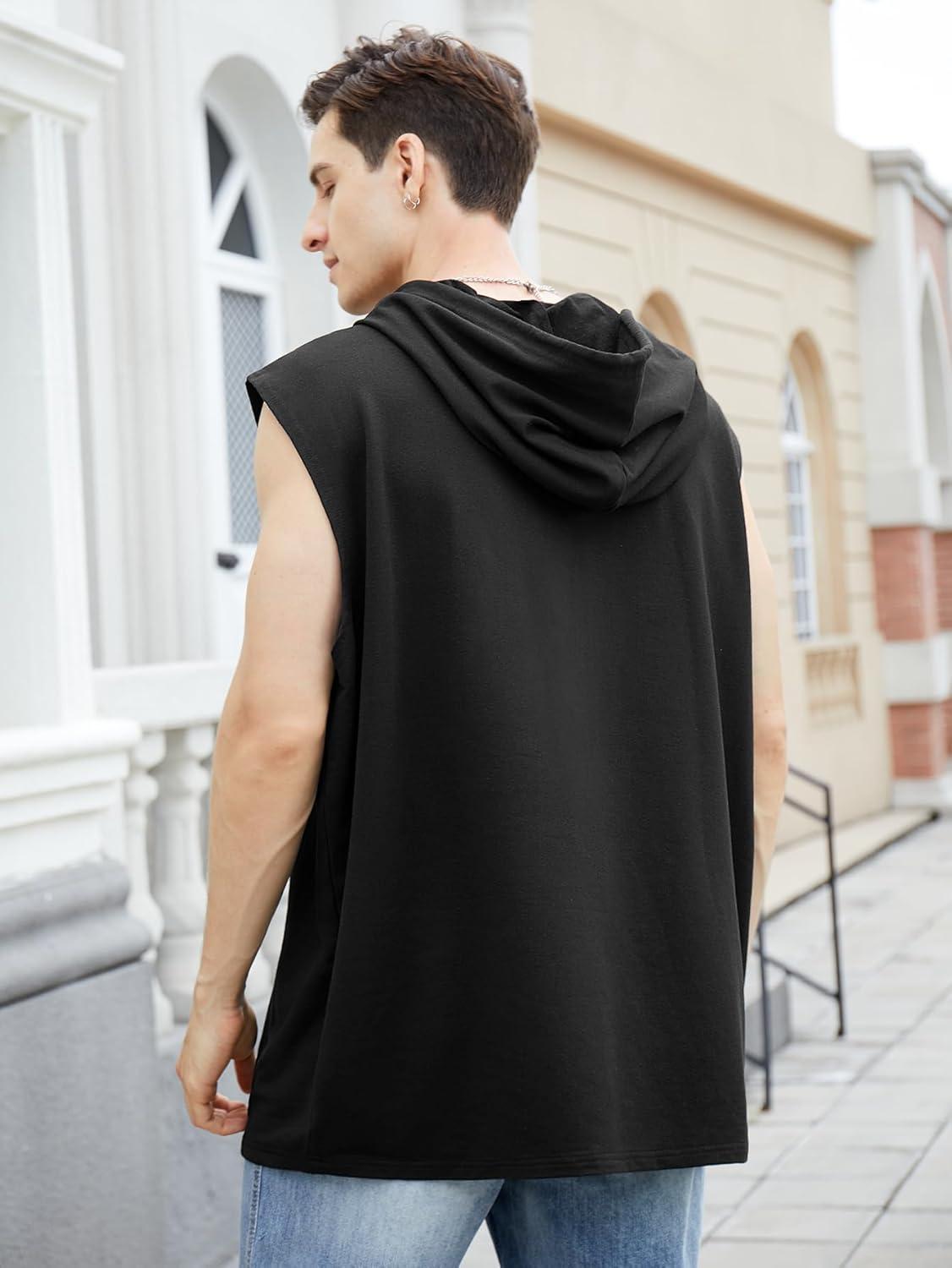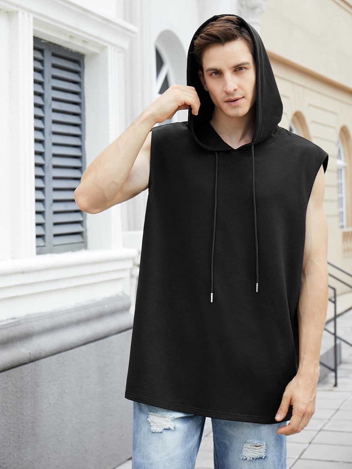 SOLY HUX Men’s Plus Size Sleeveless Hoodies Workout Gym Hooded Tank Tops Muscle Shirts Bodybuilding Cut Off T Shirt(Black)