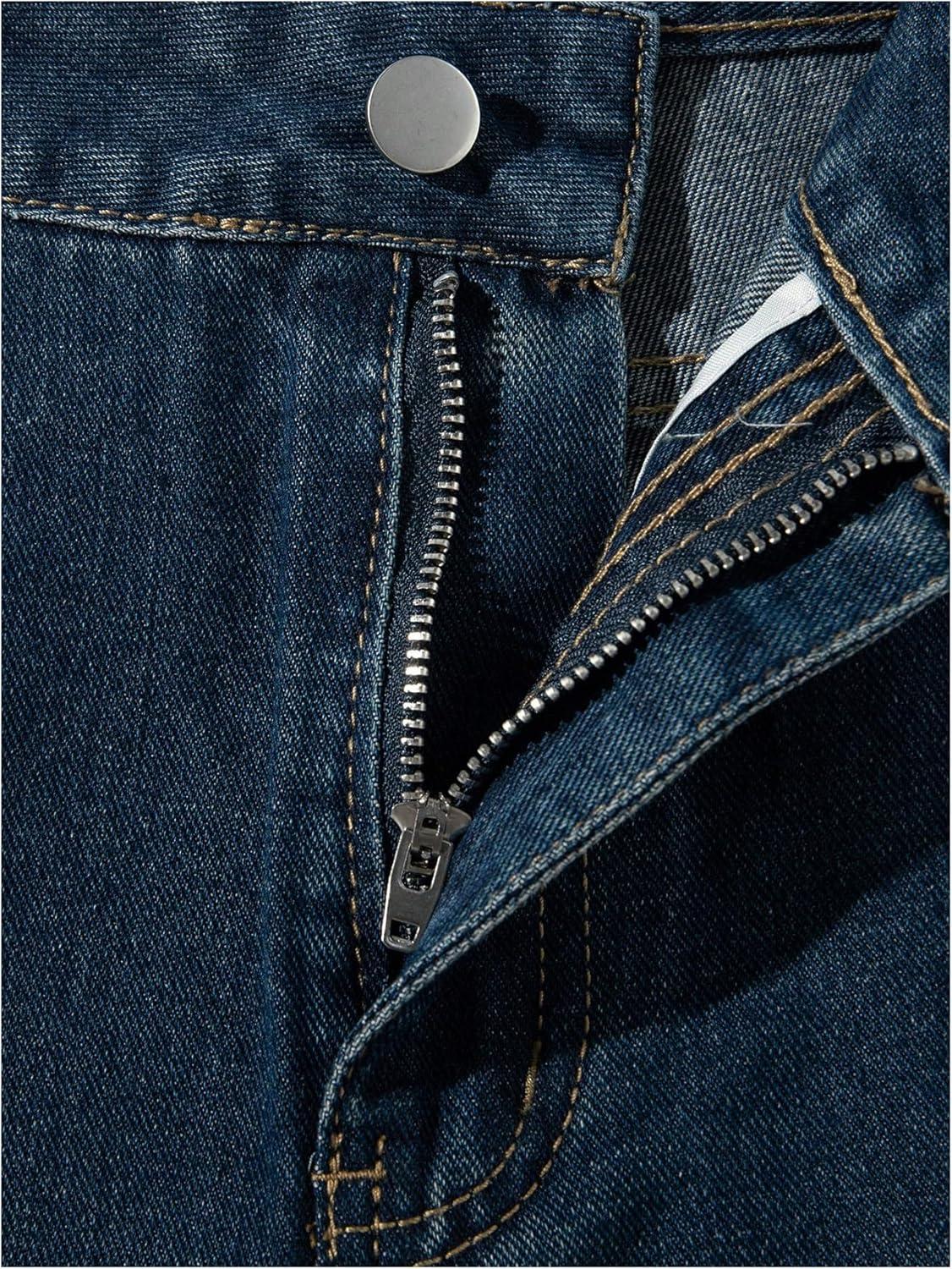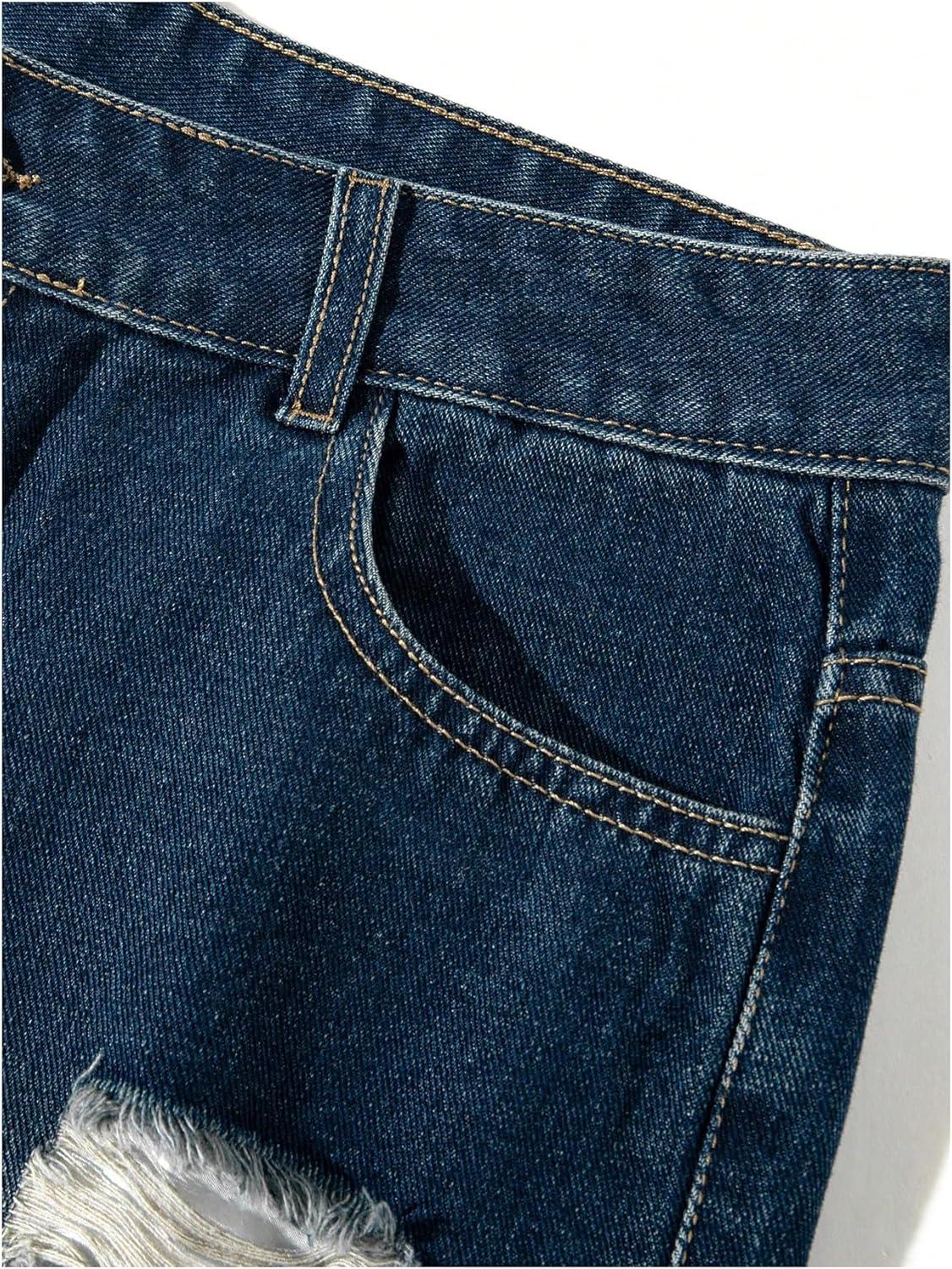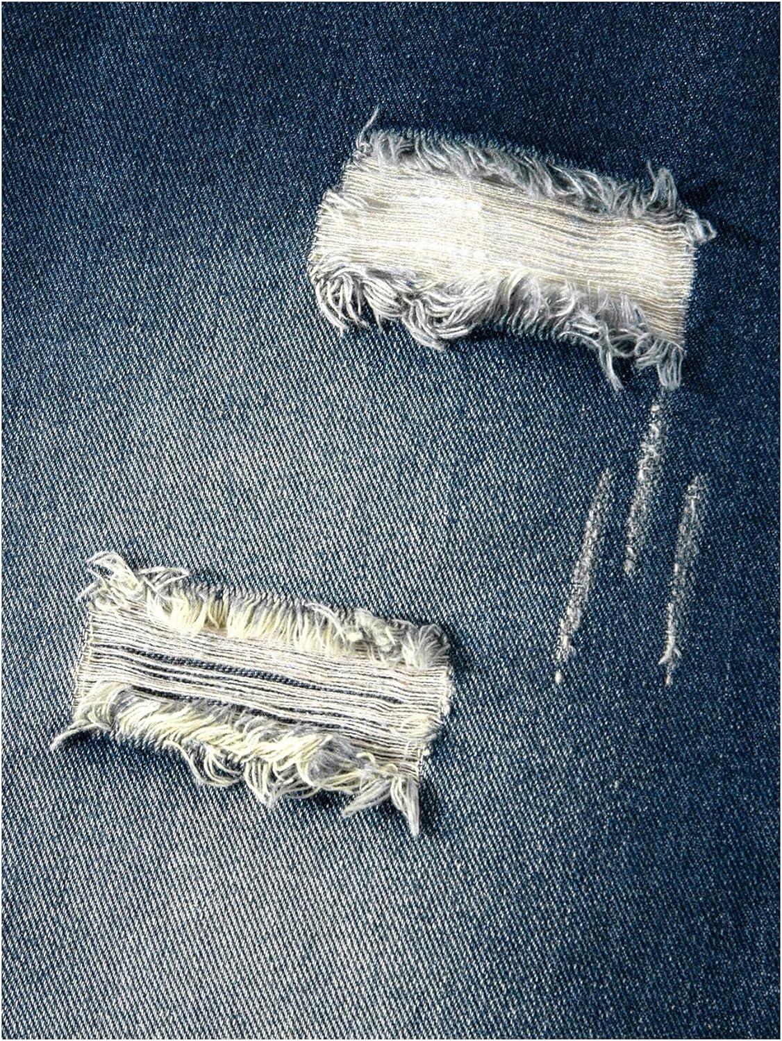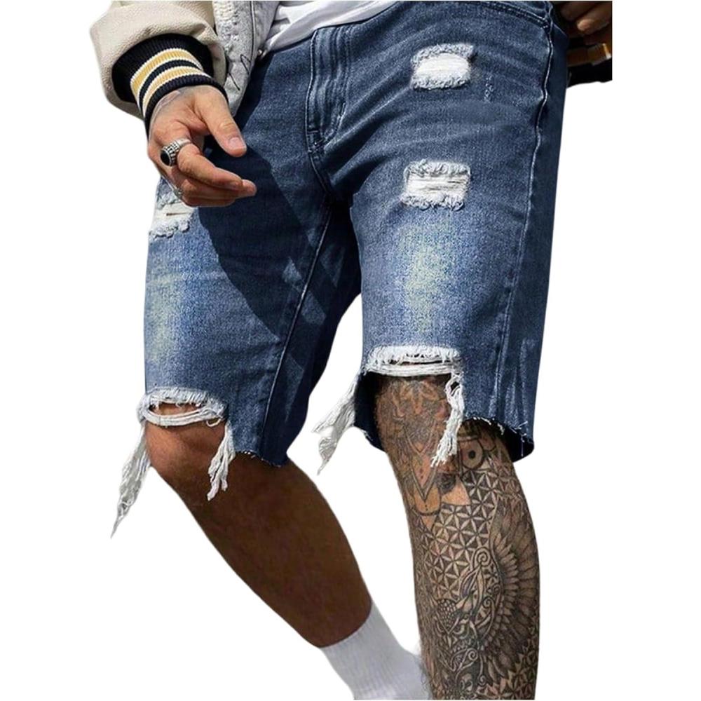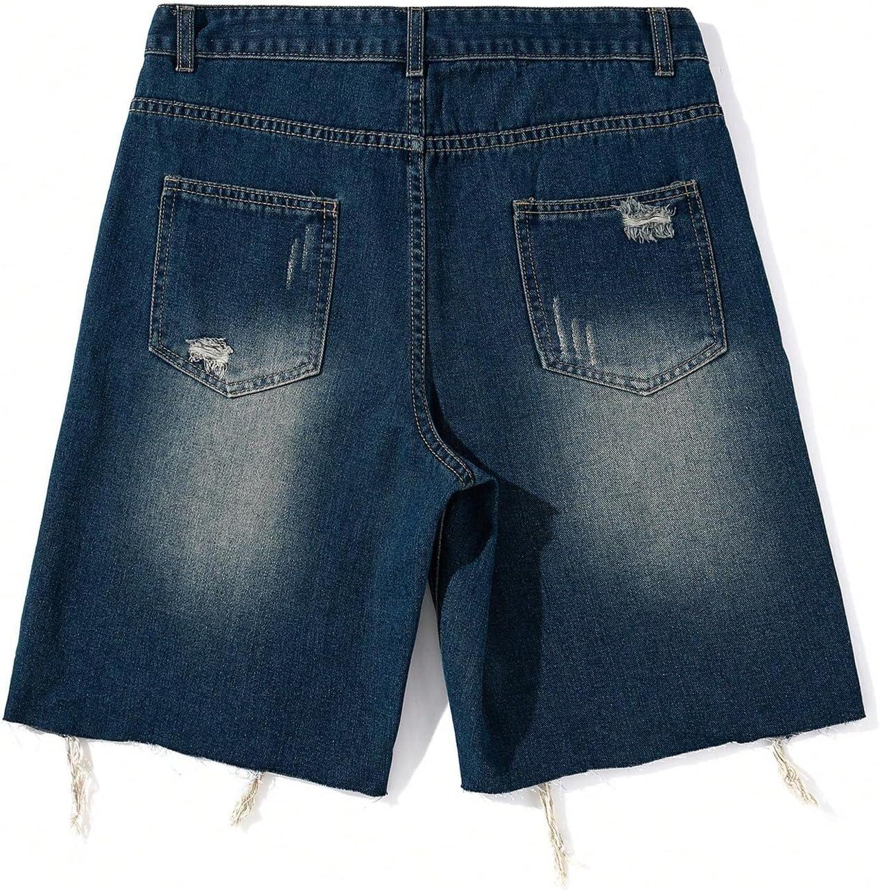 SOLY HUX Men’s Ripped Jean Shorts Streetwear Distressed Straight Leg Summer Denim Shorts(Dark Wash)